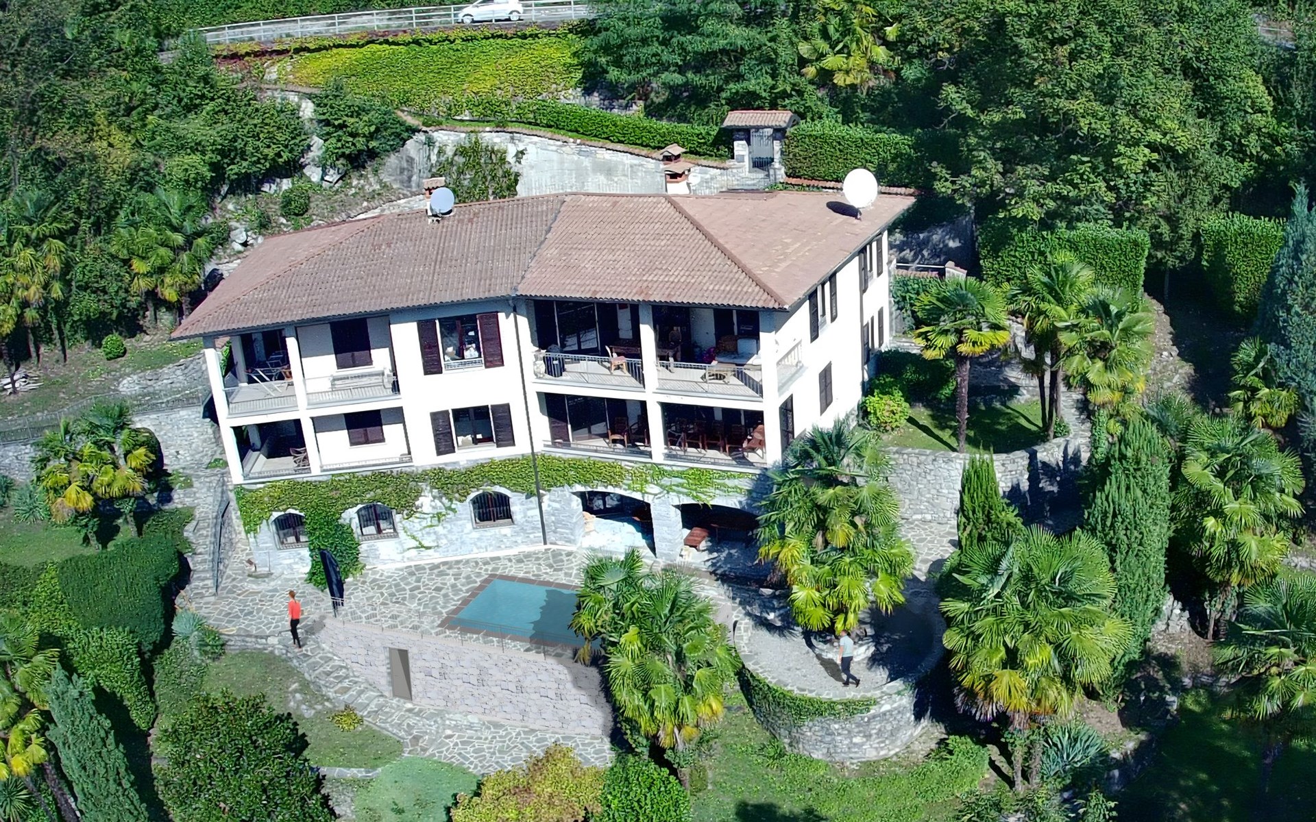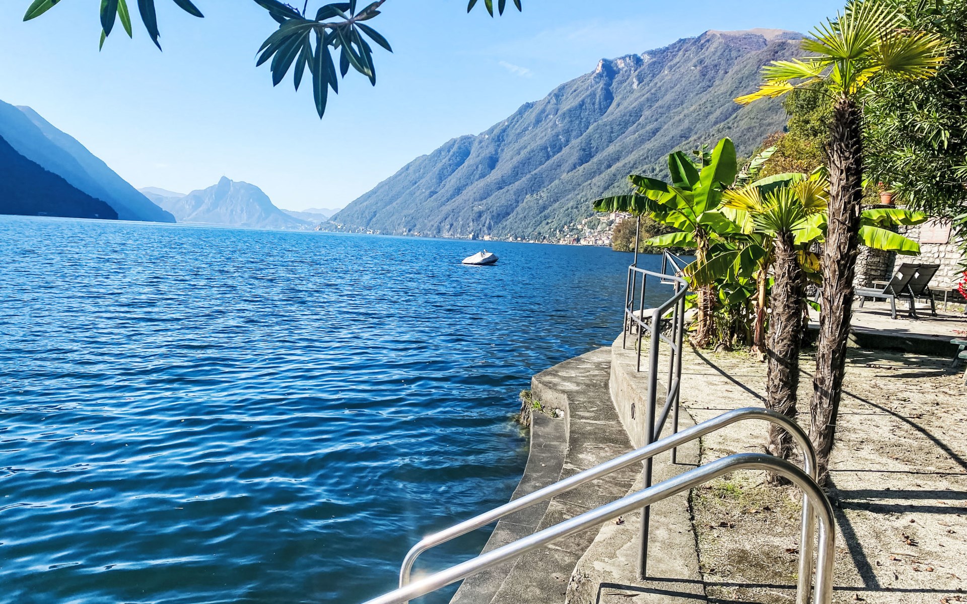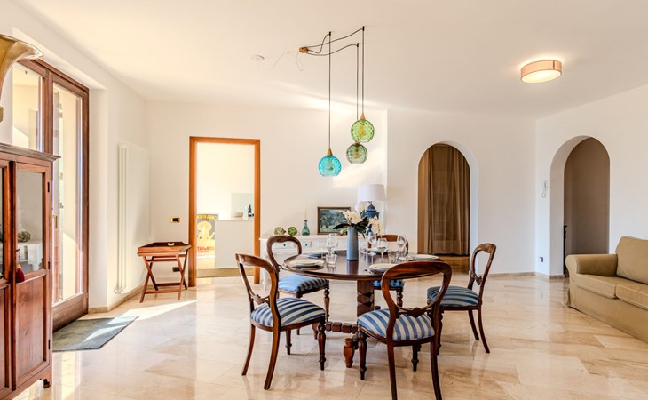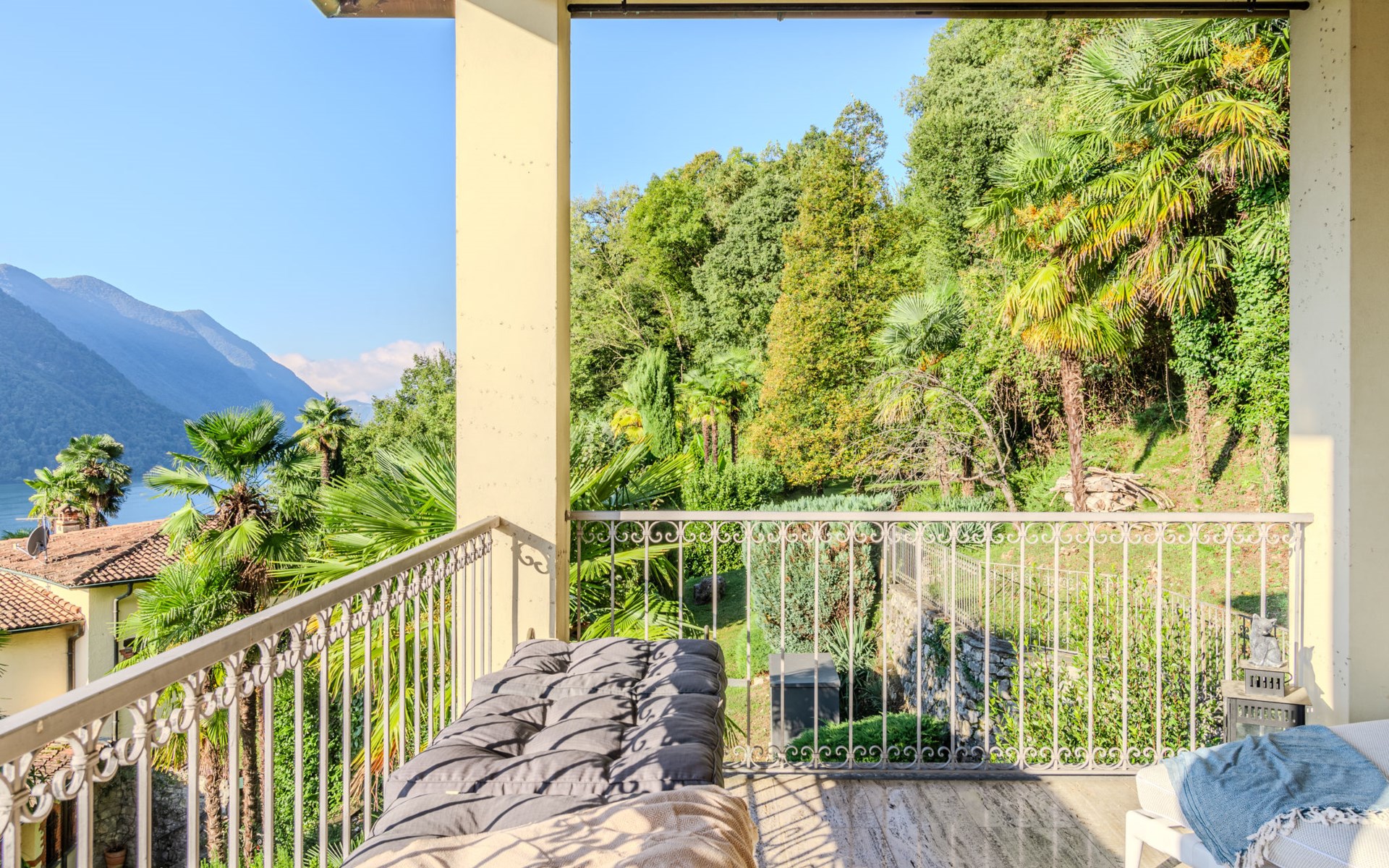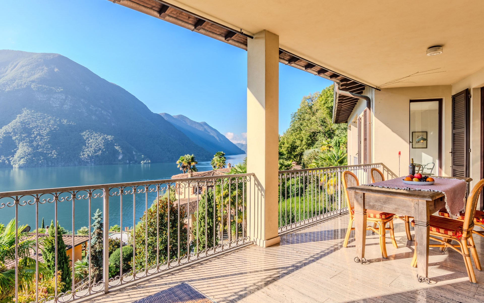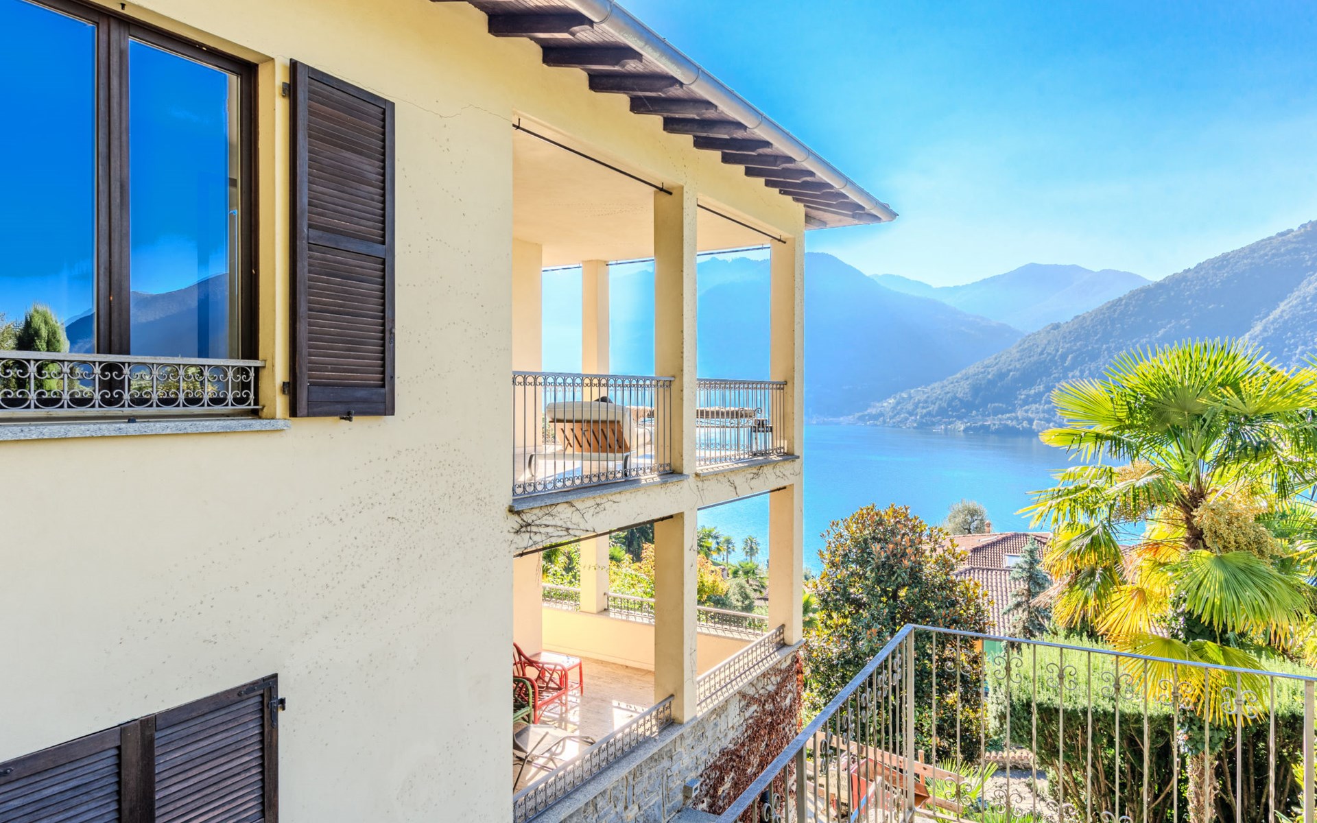 Large, cosy, luxurious villa "Miralago", 3 storeys. In the district of Loggio 1 km from the centre of San Mamete, 7 km from the centre of Porlezza, 12 km from the centre of Lugano, in an elevated position on a slope, residential area (villas), 300 m from the lake, 300 m from the beach, road to cross. Private: property 3'000 m2 (fenced), large terraced garden (fenced) with lawn and trees, swimming pool angular (8 x 3 m, depth 140 cm, seasonal availability: 01.Apr. - 30.Oct.) with salt-electrolysis pool-cleaning system. Outdoor shower, terrace. In the house: table tennis, playroom, washing machine, drying room, heating available only from 15.Oct. - 30.Apr.. Motor access to the grounds. Steep footpath (20 steps) to the house. Parking (for 3 cars) at 50 m single garage at 50 m. Grocery 2 km, supermarket 7 km, restaurant 500 m, bar 2 km, bakery 2 km, café 2 km, bus stop "C12 Menaggio-Porlezza-Lugano" 1.2 km, railway station "Lugano" 13 km, grass beach "Porlezza" 7 km, outdoor swimming pool 7 km, indoor swimming pool 7 km, swimming bay 300 m. Marina 2 km, golf course (18 hole) 17 km, surf school 7 km. Nearby attractions: Villa Fogazzaro Roi, Cascate di Begna, Grotte di Rescia, Lugano, Menaggio, Balcone D'Italia-Sighignola. Well-known lakes can easily be reached: Lago di Como. Hiking paths: Val Rezzo, Madonna del Cep-Passo San Lucio, Breglia-Rifugio Menaggio. Please note: car recommended, no lift. Suitable for families. The owner does not accept any youth groups.