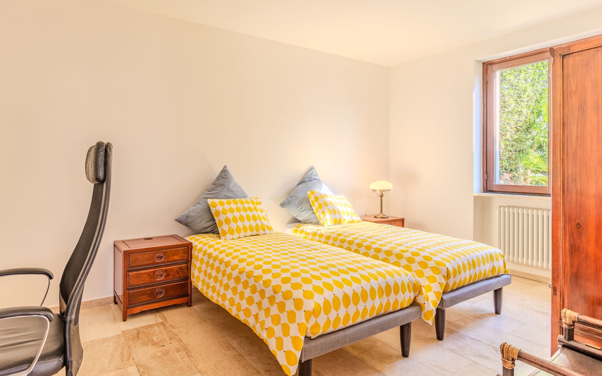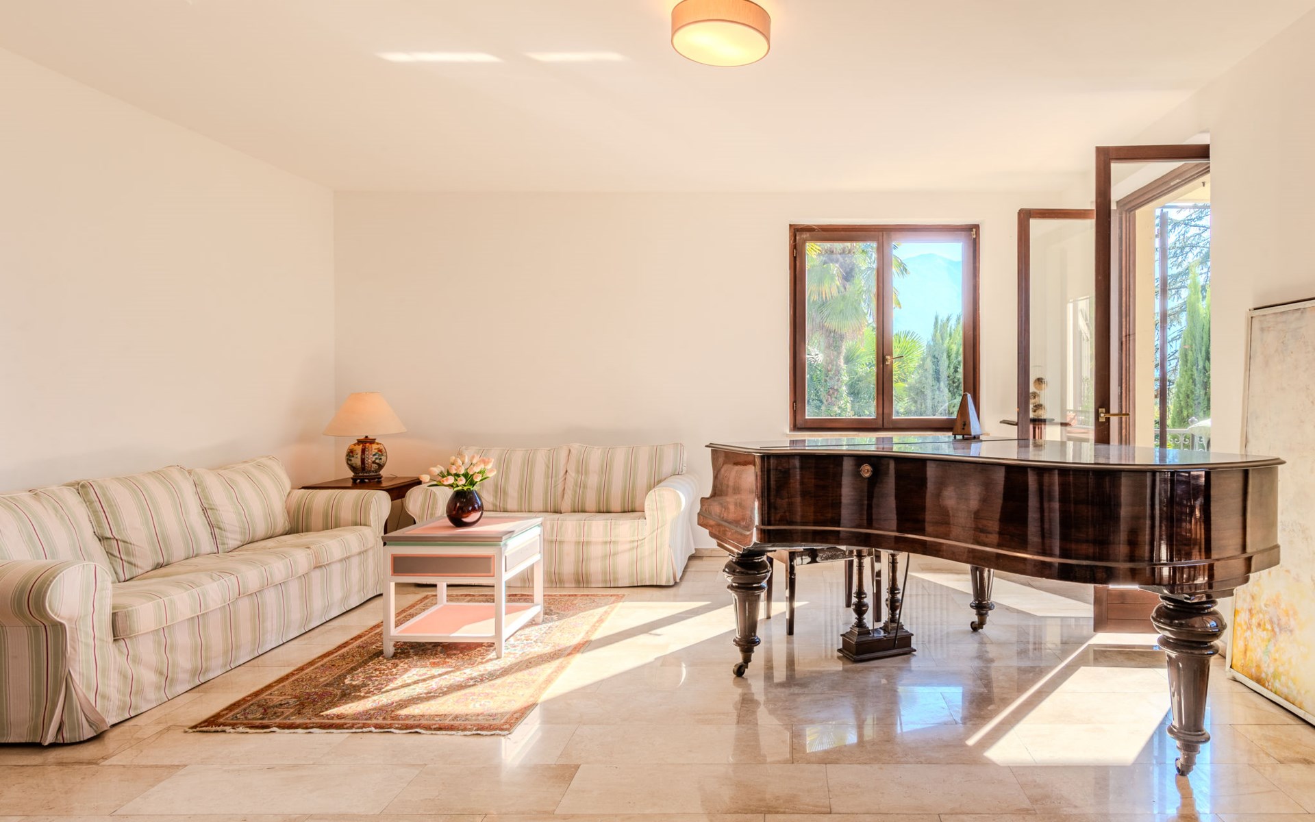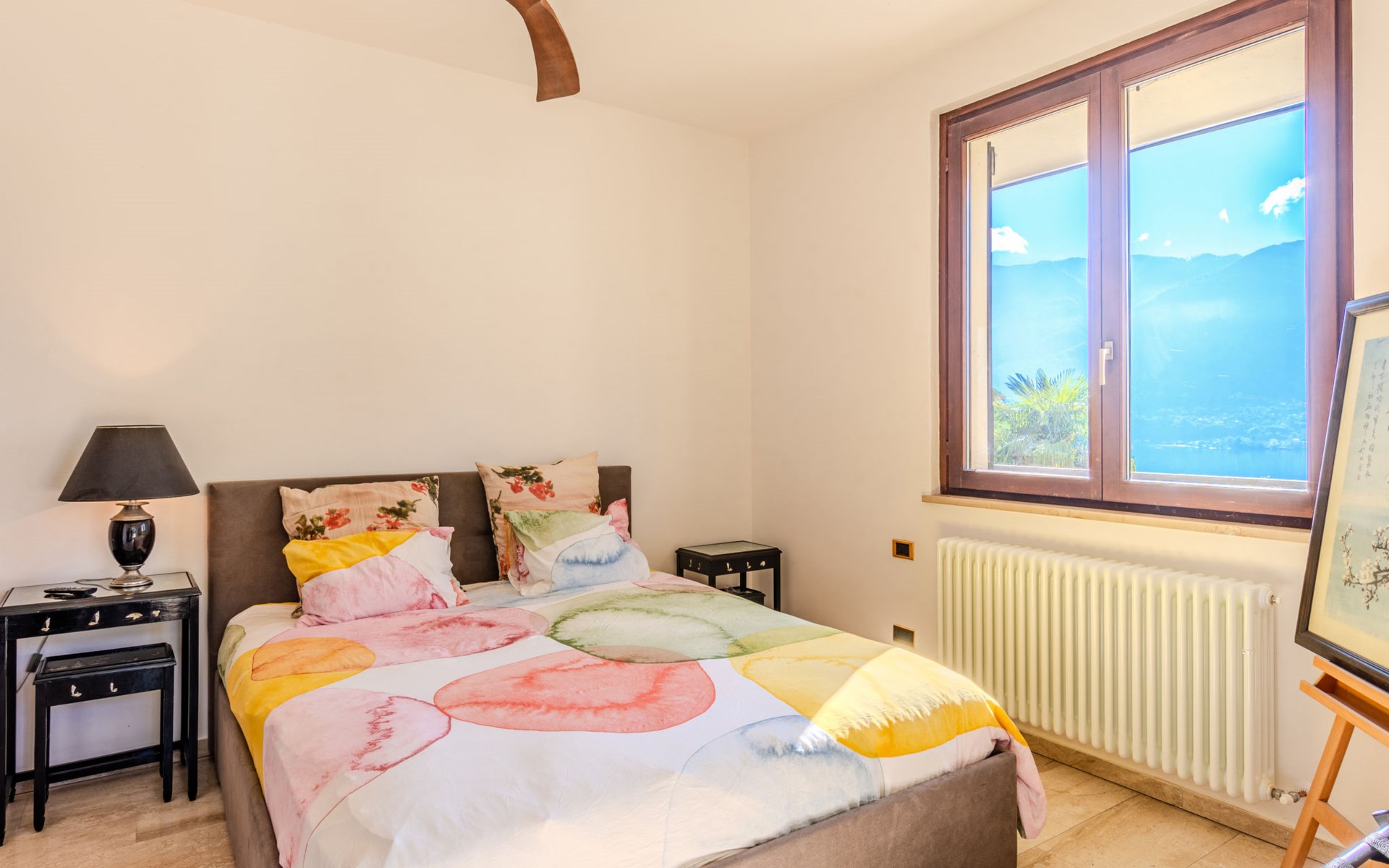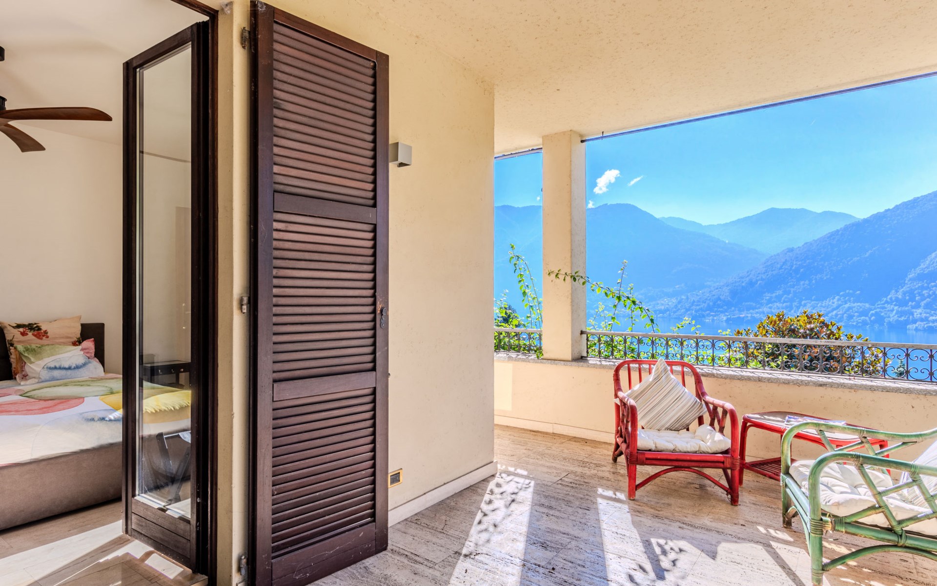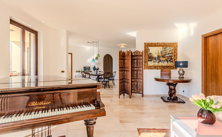 Large, cosy, luxurious villa "Miralago", 3 storeys. In the district of Loggio 1 km from the centre of San Mamete, 7 km from the centre of Porlezza, 12 km from the centre of Lugano, in an elevated position on a slope, residential area (villas), 300 m from the lake, 300 m from the beach, road to cross. Private: property 3'000 m2 (fenced), large terraced garden (fenced) with lawn and trees, swimming pool angular (8 x 3 m, depth 140 cm, seasonal availability: 01.Apr. - 30.Oct.) with salt-electrolysis pool-cleaning system. Outdoor shower, terrace. In the house: table tennis, playroom, washing machine, drying room, heating available only from 15.Oct. - 30.Apr.. Motor access to the grounds. Steep footpath (20 steps) to the house. Parking (for 3 cars) at 50 m single garage at 50 m. Grocery 2 km, supermarket 7 km, restaurant 500 m, bar 2 km, bakery 2 km, café 2 km, bus stop "C12 Menaggio-Porlezza-Lugano" 1.2 km, railway station "Lugano" 13 km, grass beach "Porlezza" 7 km, outdoor swimming pool 7 km, indoor swimming pool 7 km, swimming bay 300 m. Marina 2 km, golf course (18 hole) 17 km, surf school 7 km. Nearby attractions: Villa Fogazzaro Roi, Cascate di Begna, Grotte di Rescia, Lugano, Menaggio, Balcone D'Italia-Sighignola. Well-known lakes can easily be reached: Lago di Como. Hiking paths: Val Rezzo, Madonna del Cep-Passo San Lucio, Breglia-Rifugio Menaggio. Please note: car recommended, no lift. Suitable for families. The owner does not accept any youth groups.