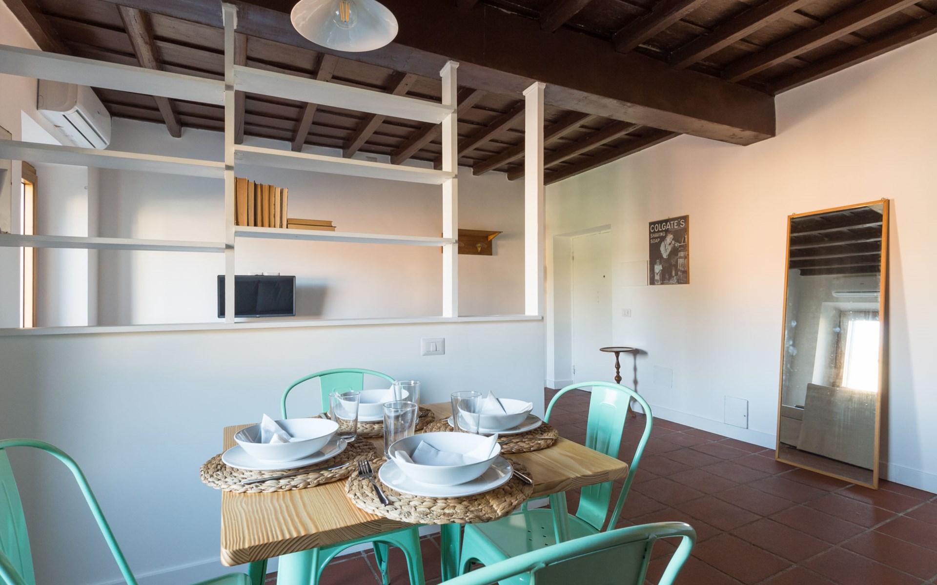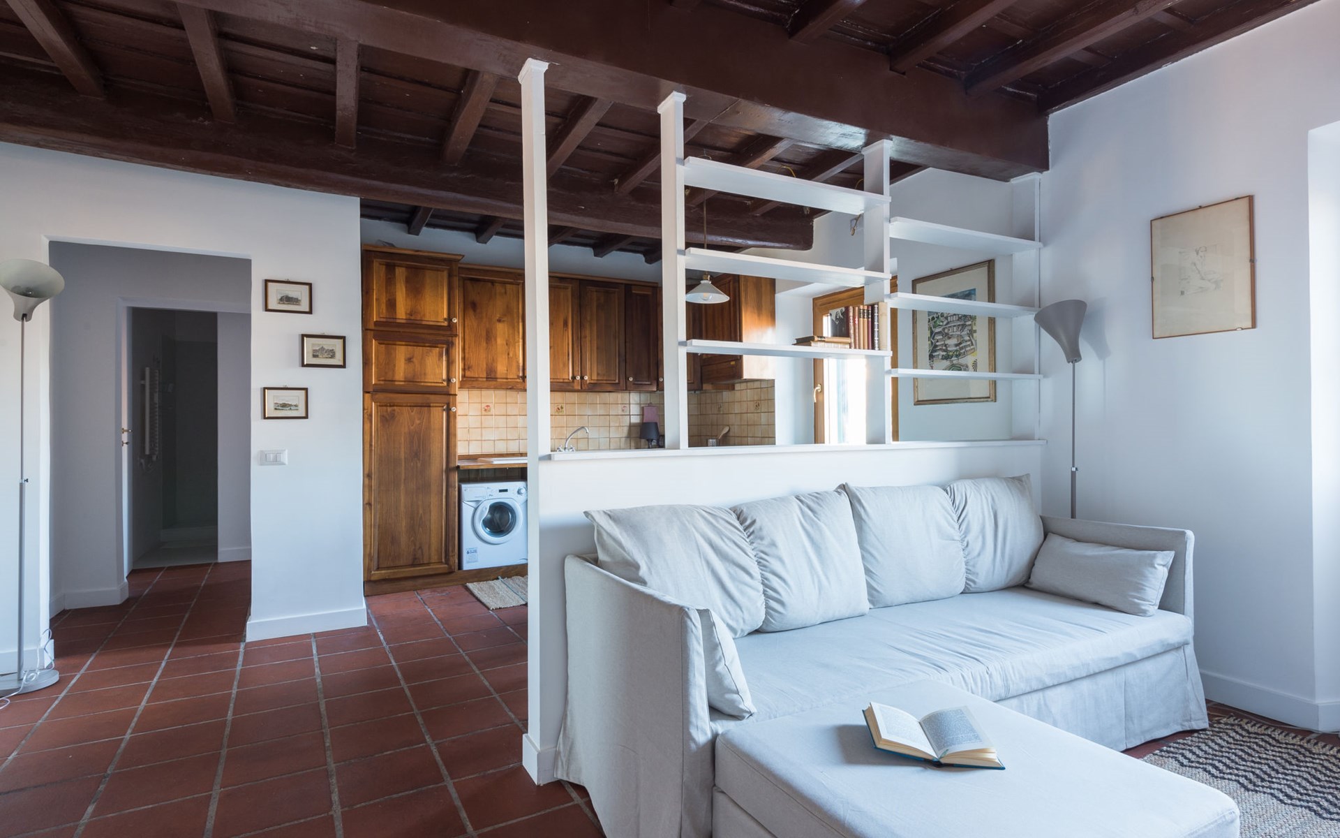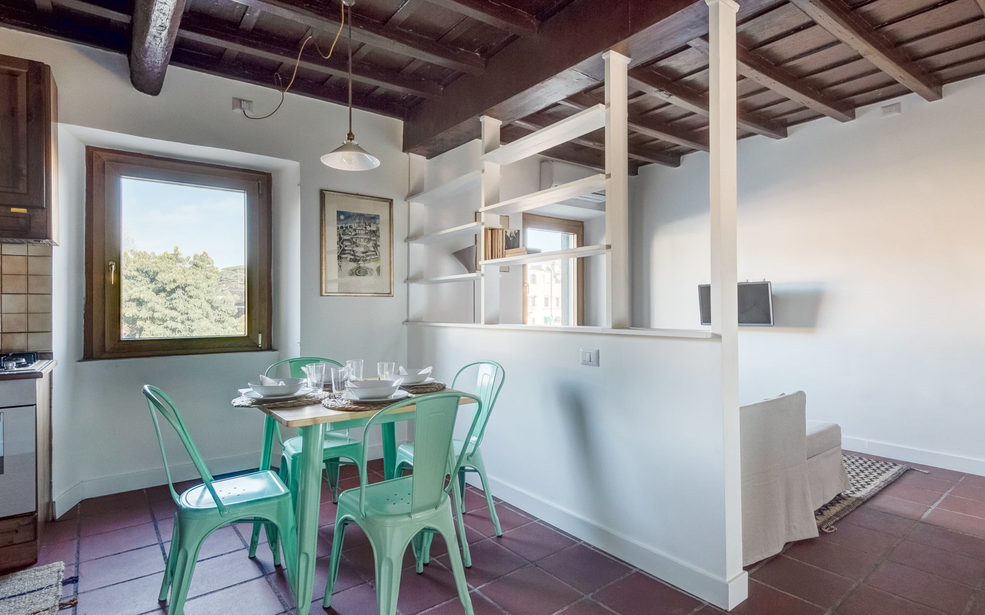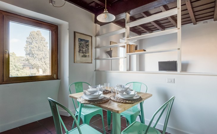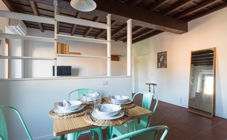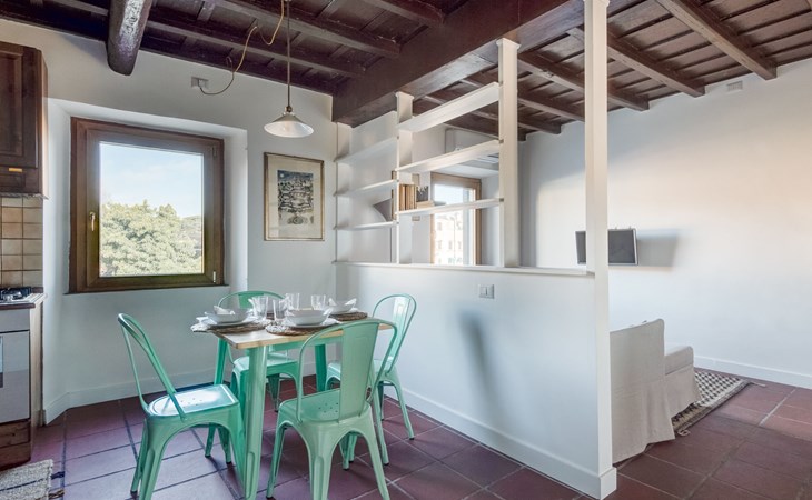 Old residence, 4 storeys. In the centre of Roma, excellent location: right in the centre but still quiet, in the heart of the city. Public parking on the road extra. Grocery 200 m, restaurant 160 m, bar 150 m, bus stop "Largo Gianicolense" 140 m, railway station "Termini" 5 km. Nearby attractions: Pantheon, Piazza Navona, Campo dei Fiori, San Pietro, Fontana di Trevi, Colosseo. Please note: no lift.