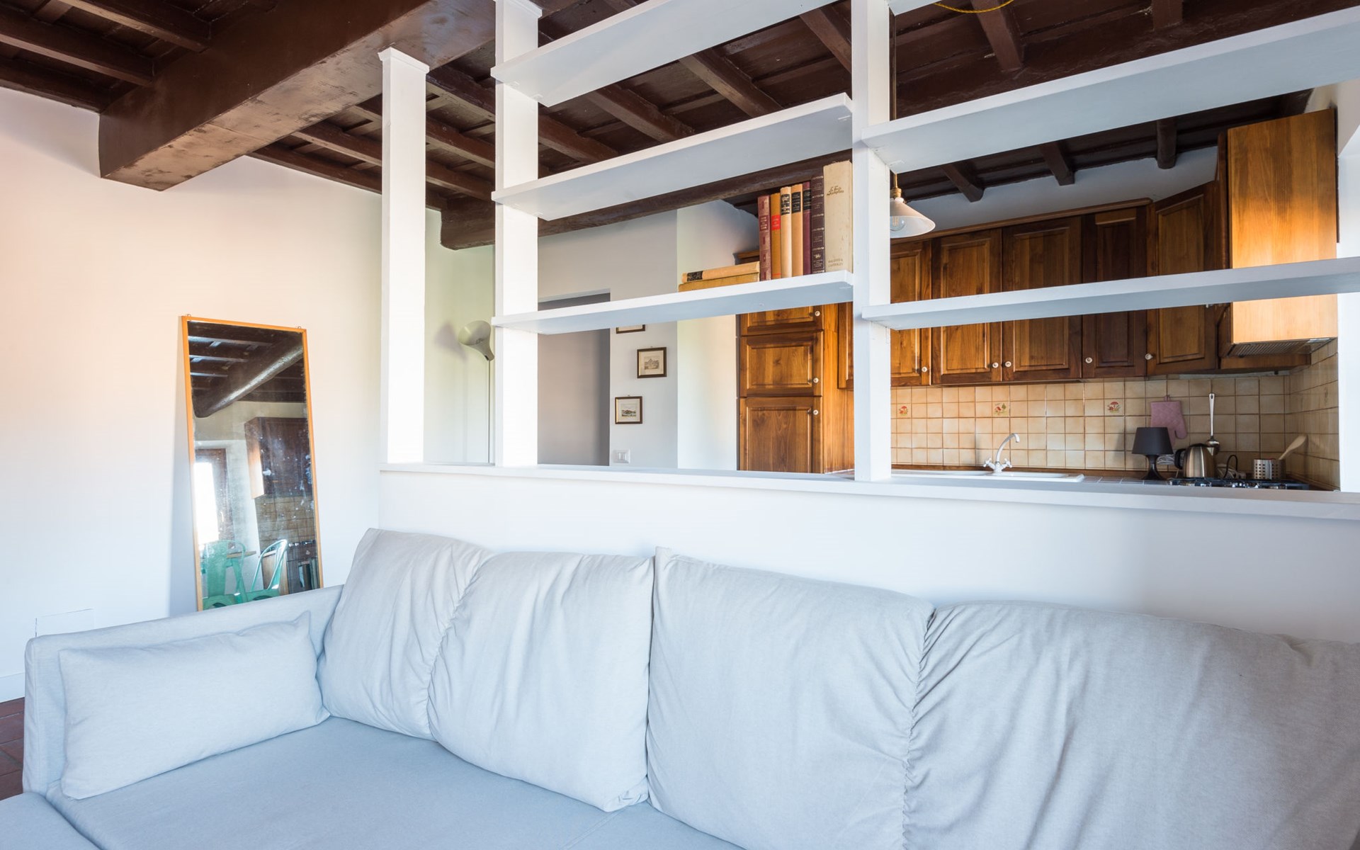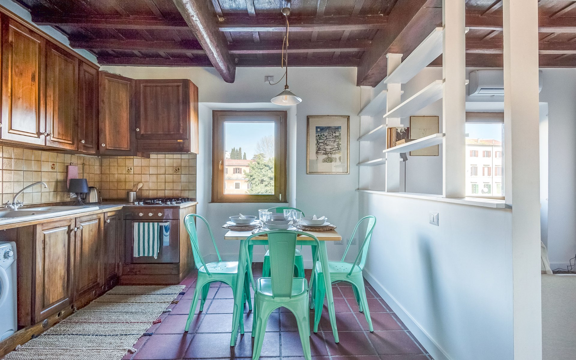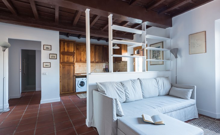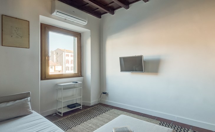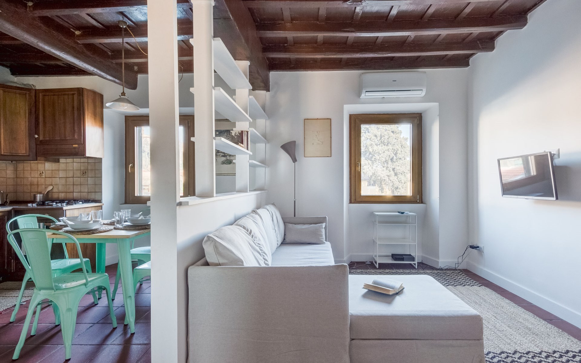 Old residence, 4 storeys. In the centre of Roma, excellent location: right in the centre but still quiet, in the heart of the city. Public parking on the road extra. Grocery 200 m, restaurant 160 m, bar 150 m, bus stop "Largo Gianicolense" 140 m, railway station "Termini" 5 km. Nearby attractions: Pantheon, Piazza Navona, Campo dei Fiori, San Pietro, Fontana di Trevi, Colosseo. Please note: no lift.