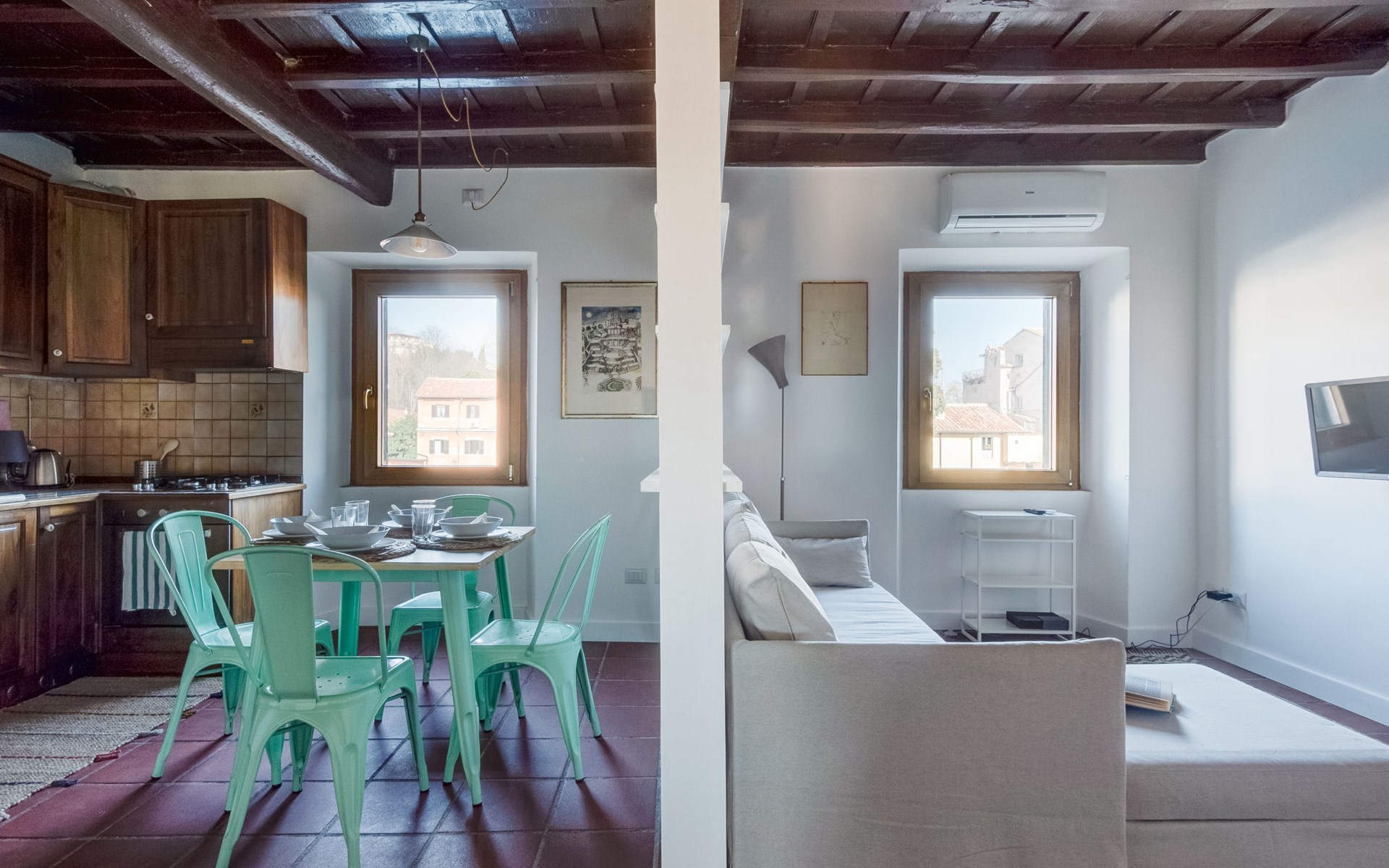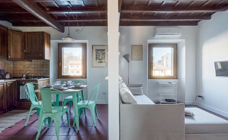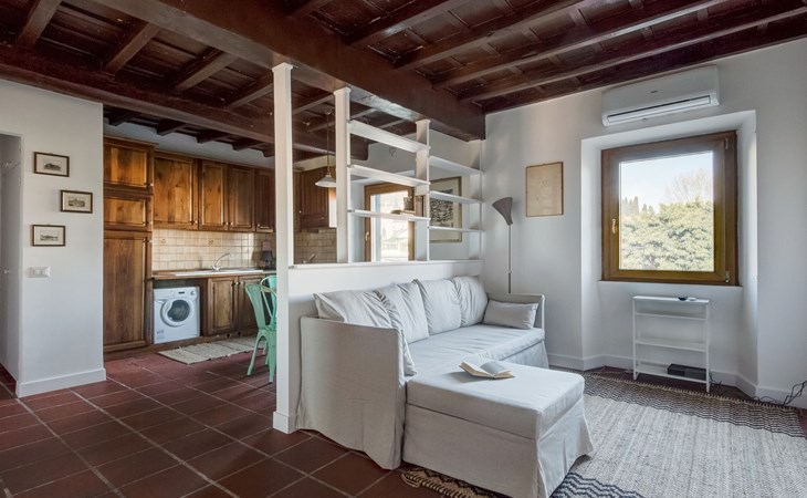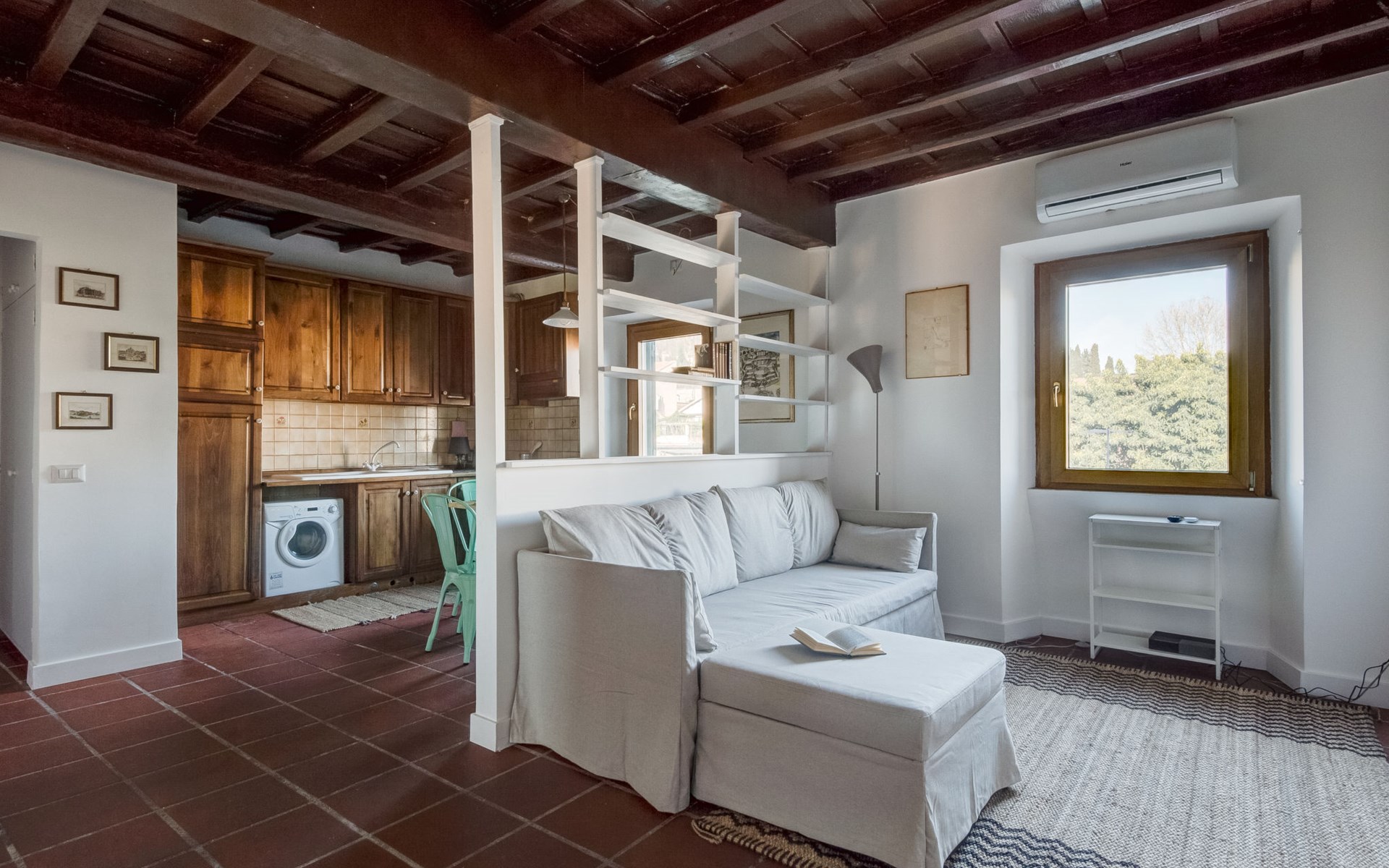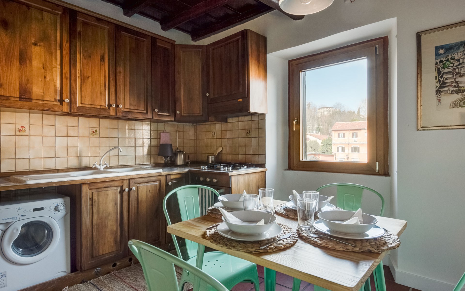 Old residence, 4 storeys. In the centre of Roma, excellent location: right in the centre but still quiet, in the heart of the city. Public parking on the road extra. Grocery 200 m, restaurant 160 m, bar 150 m, bus stop "Largo Gianicolense" 140 m, railway station "Termini" 5 km. Nearby attractions: Pantheon, Piazza Navona, Campo dei Fiori, San Pietro, Fontana di Trevi, Colosseo. Please note: no lift.