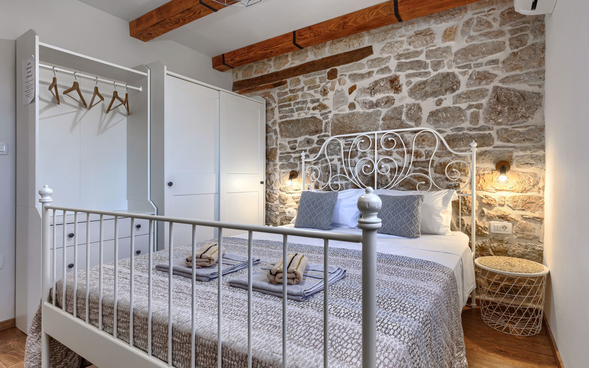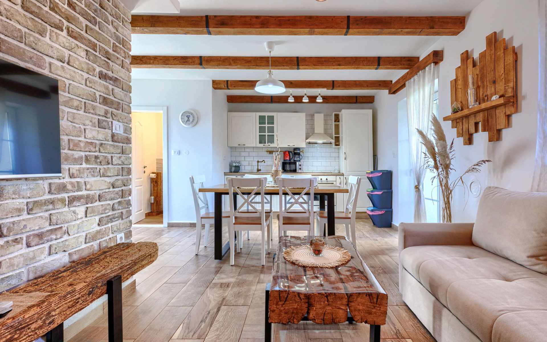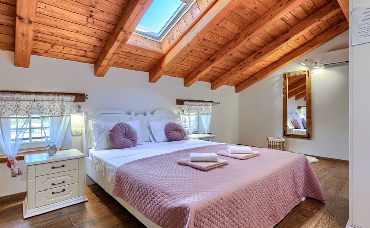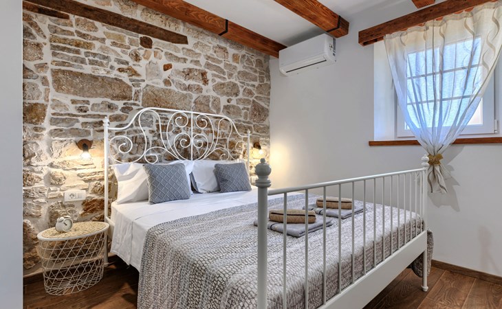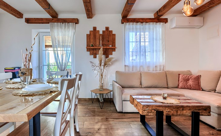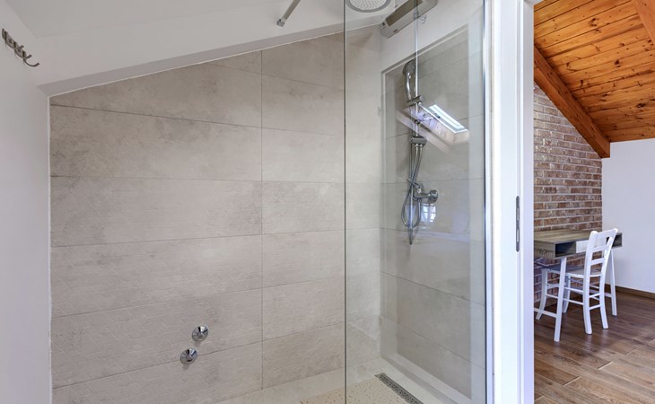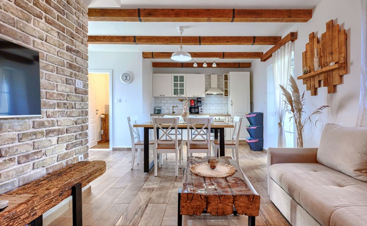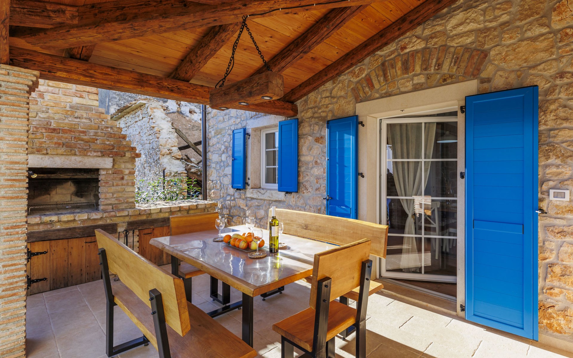 Vižinada 18 km from Poreč: Beautiful, cosy semi-detached house "Darel", 3 storeys in 2023. 2 km from the centre of Vižinada, 5 km from the centre of Višnjan, 10 km from the centre of Kaštelir, 15 km from the sea. Private: property 200 m2 (fenced) with wildlife garden. Outdoor shower, hot tub, terrace (15 m2), garden furniture, barbecue. In the house: internet access, washing machine. Parking (for 2 cars) at the house on the premises. Shop 2 km, restaurant 800 m, café 2 km, bus stop 2.3 km, pebble beach 15 km, rocky beach 15 km. Walking paths from the house, cycle lane 100 m. Nearby attractions: Winery 4 km, Aquapark 20 km. Please note: airfield 55 km from the property.