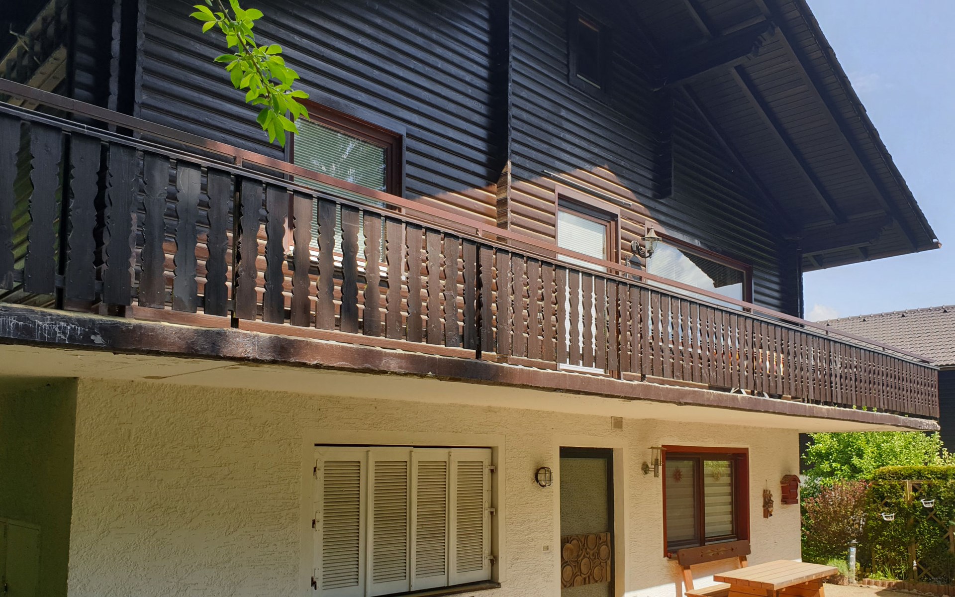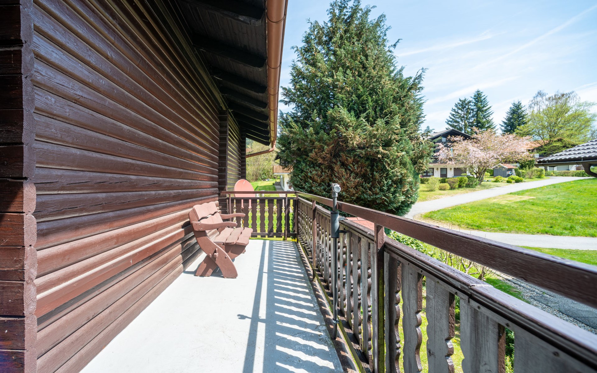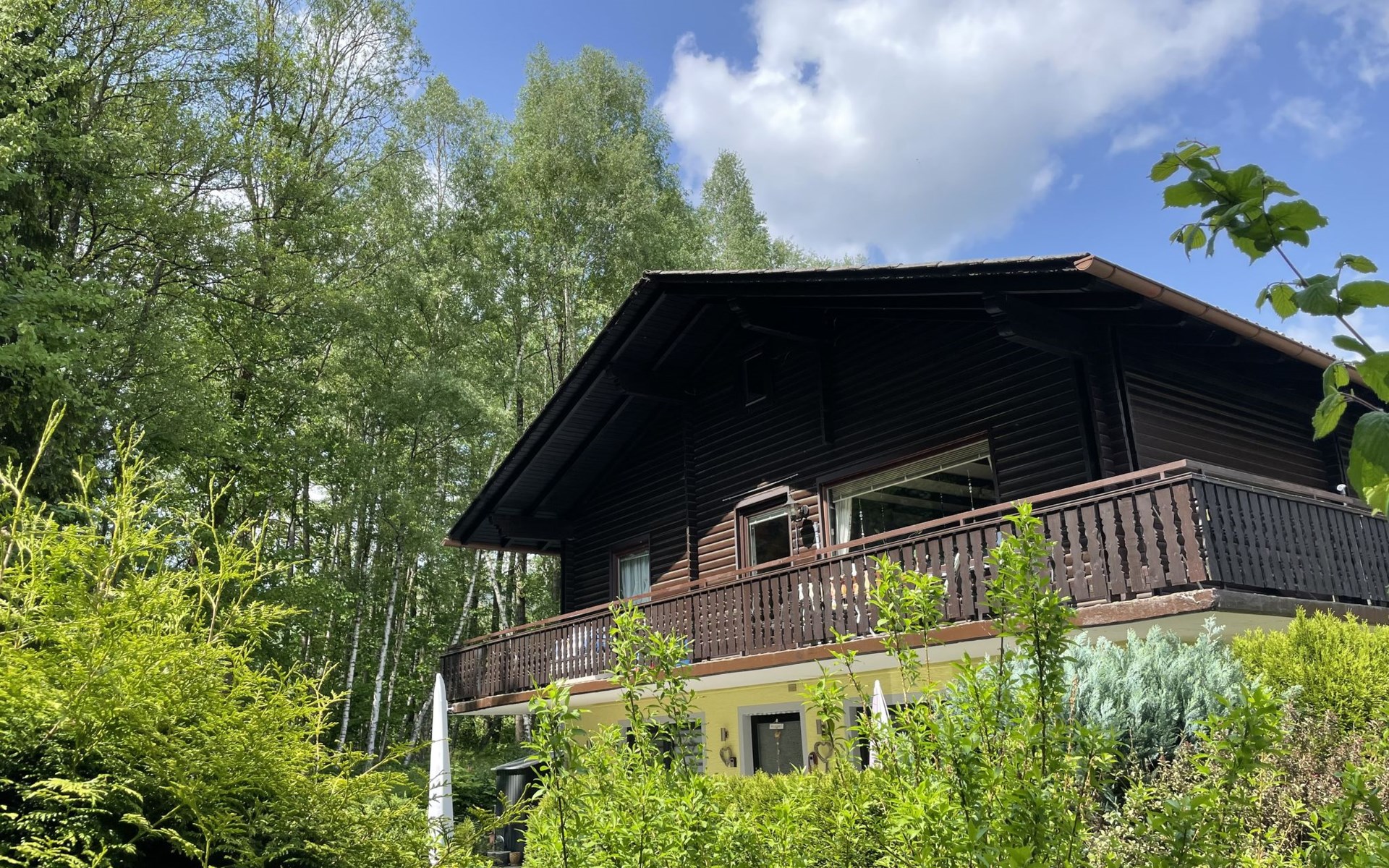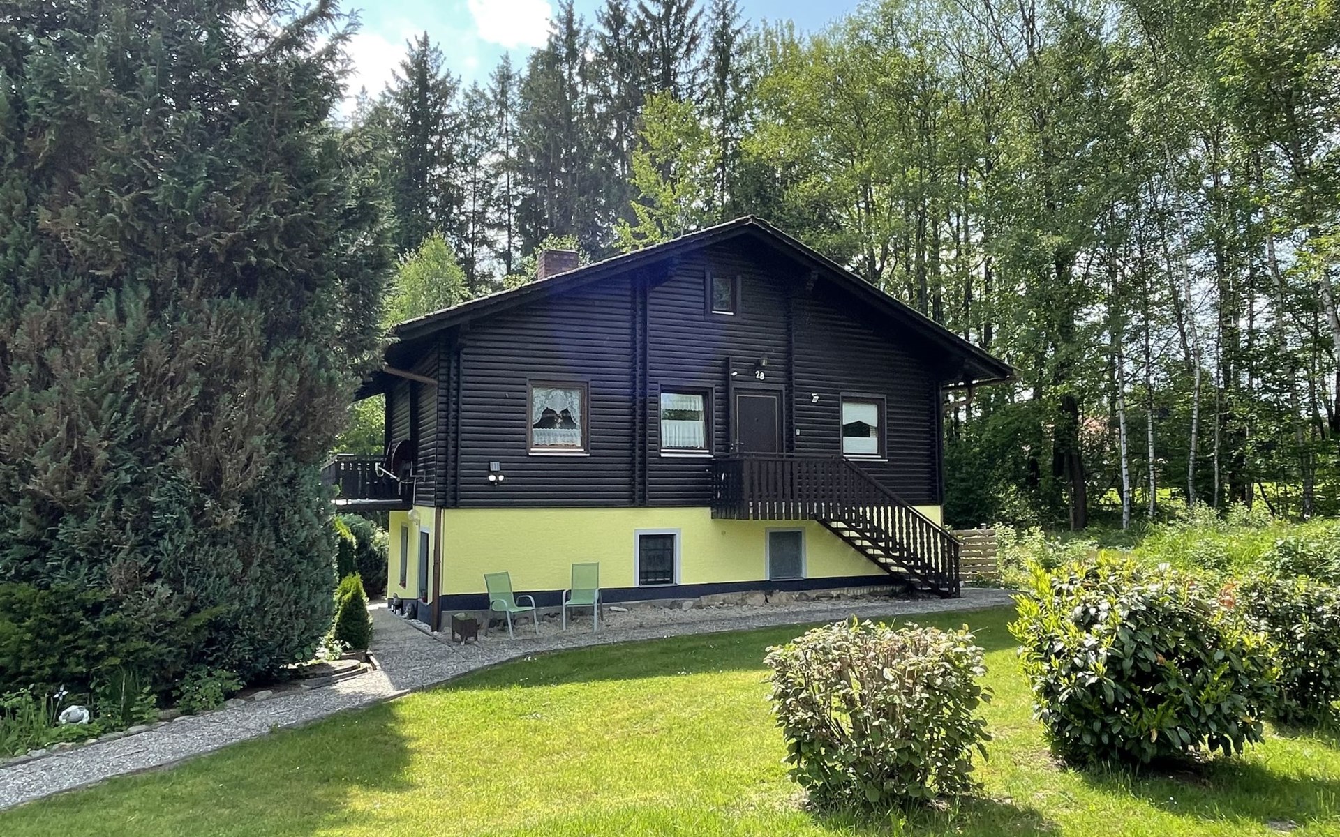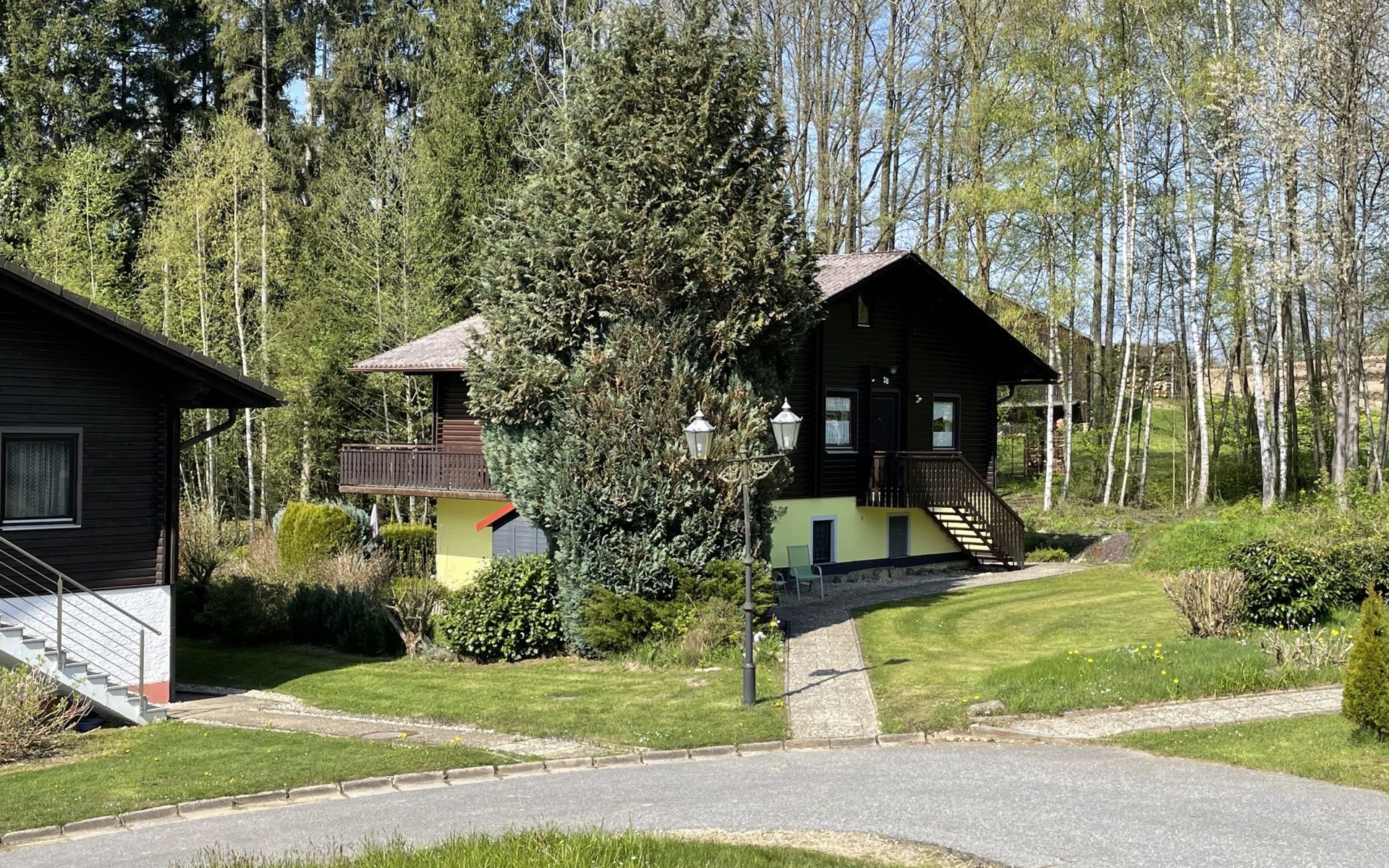 Child friendly holiday village "Am Hohen Bogen". In the district of Kummersdorf, outside the resort, 3 km from the centre of Arrach, on a slope, traffic calmed area, 300 m from the edge of the forest, 100 m from the lake, 9 km from the skiing area. For shared use: volleyball, children's playground (slide, swing, sandbox). In the complex: table tennis (extra). Central heating system. Parking at the house. Shop 3 km, grocery 3 km, supermarket 3 km, restaurant 3 km, bakery 3 km, railway station "Hohenwarth" 1.5 km, grass beach "Seepark Arrach" 5 km, outdoor swimming pool 10 km, thermal baths 10 km, bathing lake "Seepark Arrach" 5 km. Golf course (9 hole) 6 km, tennis 6 km, riding stable 800 m, chair lift 9 km, skisport facilities 9 km, slopes 9 km, ski rental 11 km, ski school 9 km, cross country ski track 11 km. Nearby attractions: Bayerwald-Tierpark Lohberg 15 km, Spielbank Bad Kötzting, Fun-Park Neukirchen, Tiergarten Straubing, Pullman-City. Well-known ski regions can easily be reached: Eck 6 km, Am Hohen Bogen 9 km, Arber 29 km. Hiking paths: Arberregion. Please note: car recommended. Groups of teenagers on request only. Boating, fishing 500 m. The holiday village consists of an apartment house and two-storey holiday houses with shared lawns and play areas. The distance from the individual houses to the natural swimming lake is 50 – 400 m.