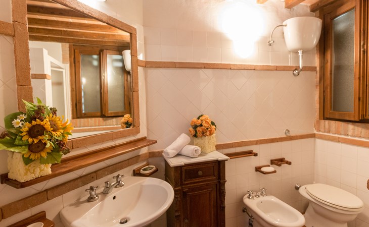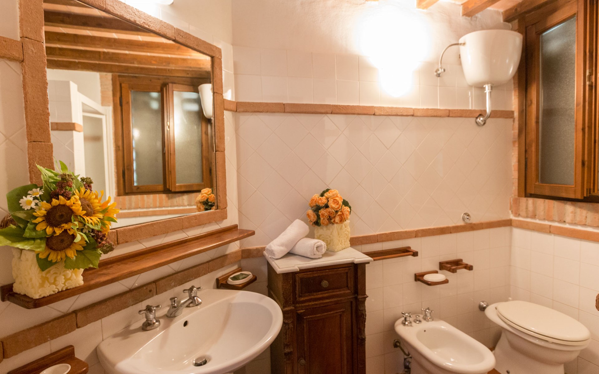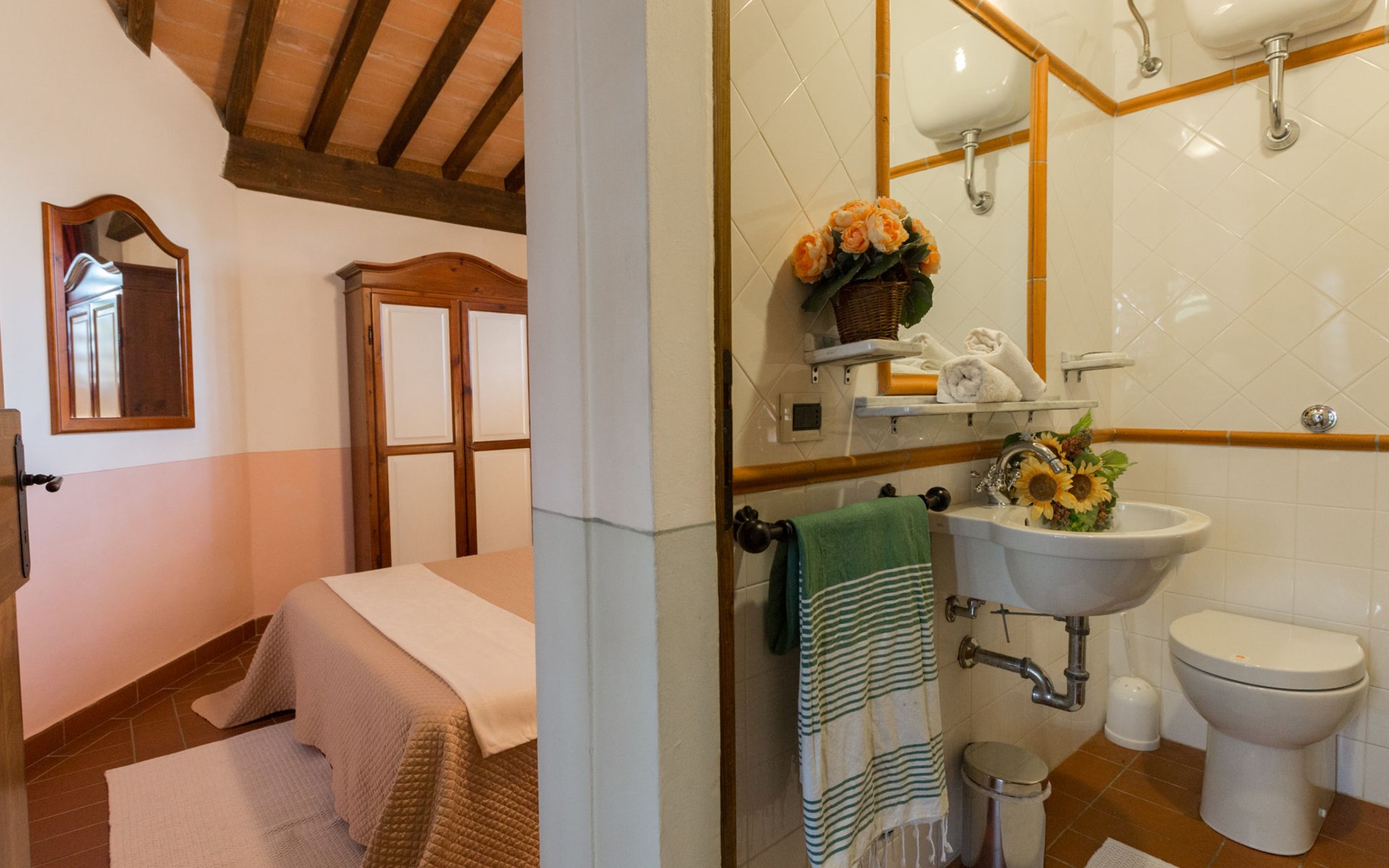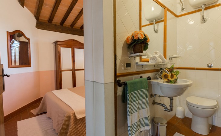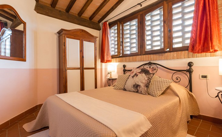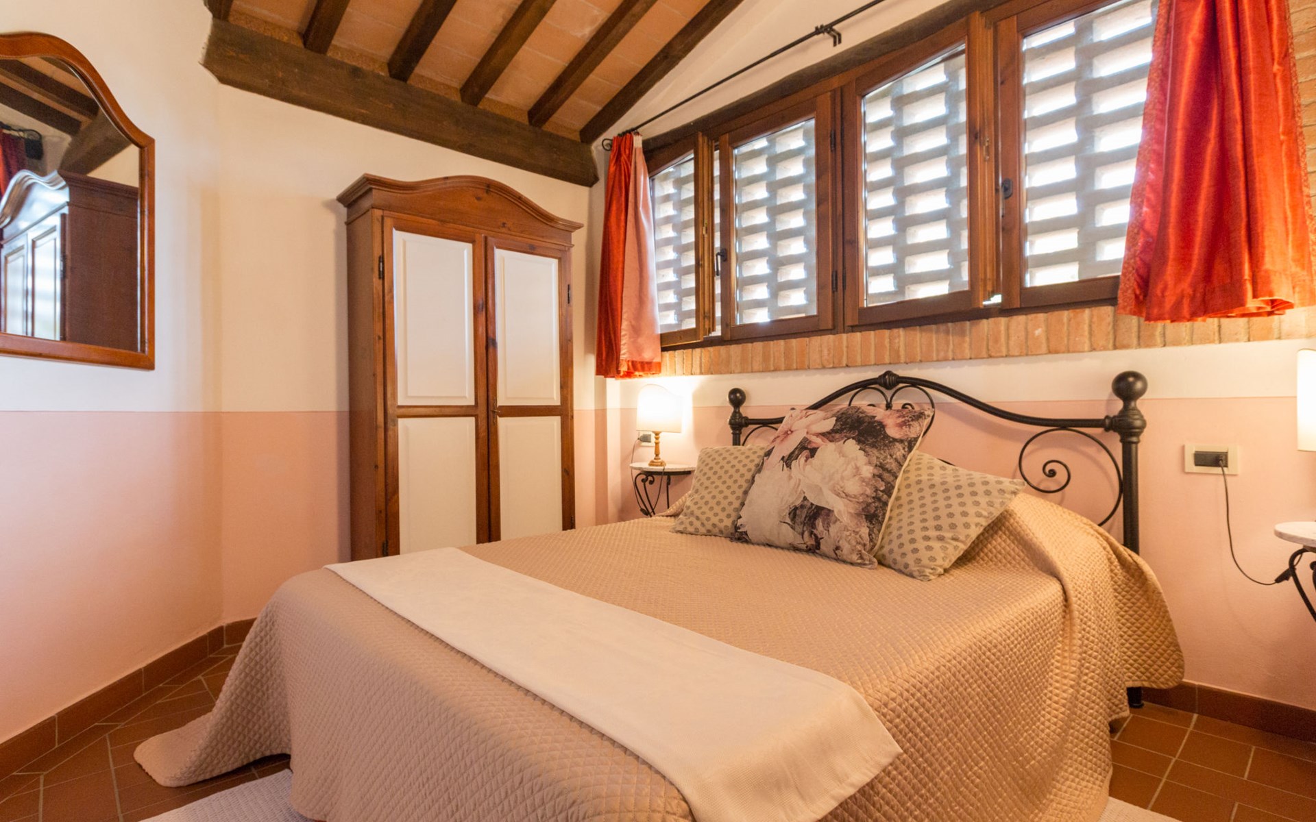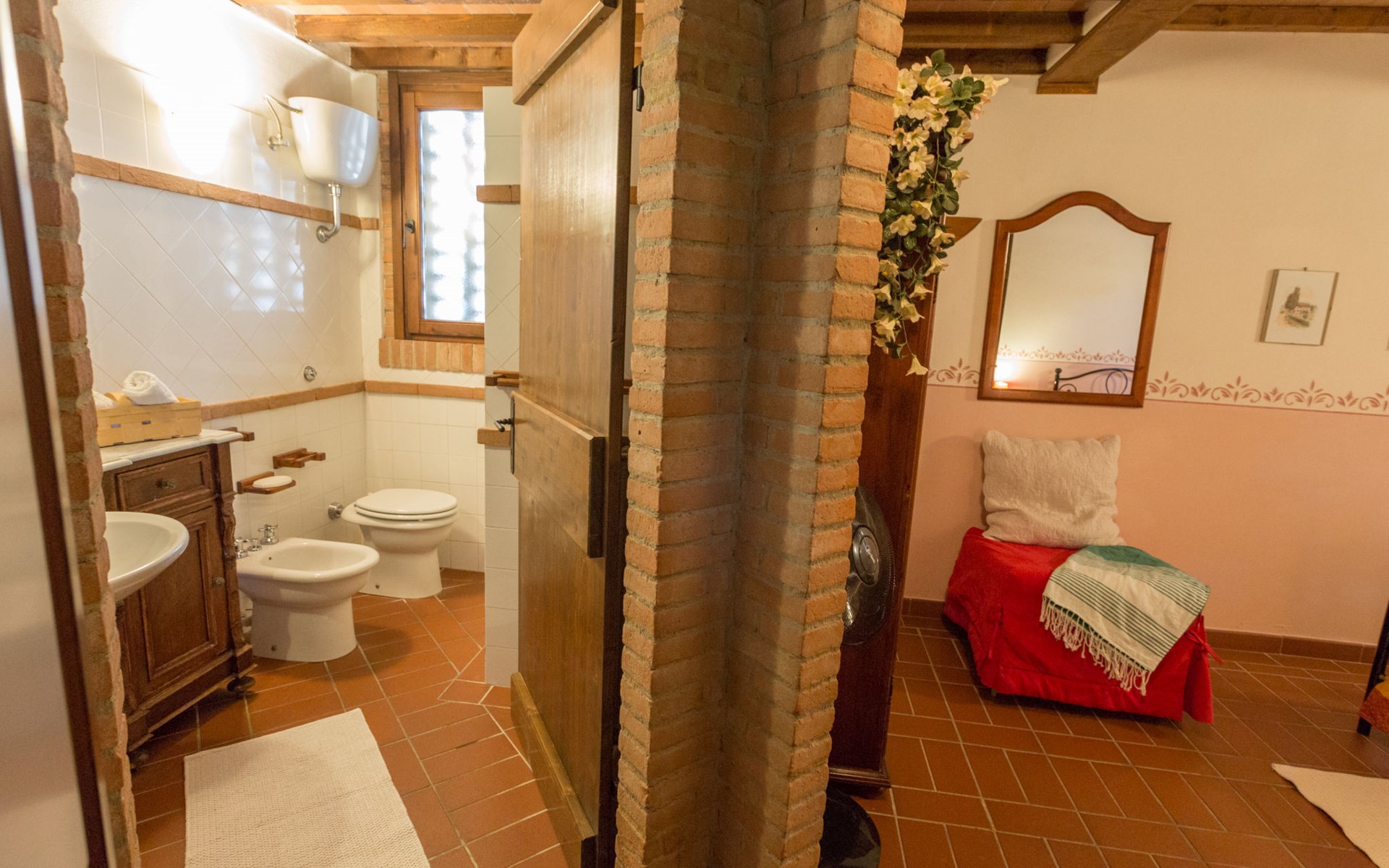 Large working farm. 8 apartments in the property. Property composed of main house and outbuilding 9.8 km from the centre of Peccioli, 24 km from the centre of Volterra, 35 km from the centre of San Gimignano, in a sunny position on top of a hill, 45 km from the sea. For shared use: garden (fenced), swimming pool (20 x 8 m, depth 140 - 300 cm, seasonal availability: 01.May. - 30.Oct.). Outdoor shower, table tennis, boccia, garden furniture, barbecue, children's playground, pool maintenance by the owner/gardener. In the house: lounge with TV, WiFi, central heating system, heating to be paid on the spot, heating available only from 01.Nov. - 07.Apr.. Breakfast possible (extra). Motor access to the house (800 m via unmade road). Parking on the premises. Grocery 3.8 km, supermarket 3.8 km, restaurant 500 m, bar 1 km, bus stop 1.5 km, sandy beach "Marina di Cecina, Vada, Tirrenia" 45 km, shingle beach "Castiglioncello" 60 km, thermal baths "Casciana Terme" 29 km. Golf course (18 hole) 13 km. Nearby attractions: Lajatico 21 km, Chianni 25 km, San Miniato 45 km, Pisa 55 km, Lucca 57 km, Bolgheri 62 km. Suitable for events.