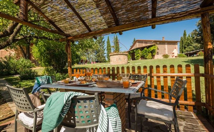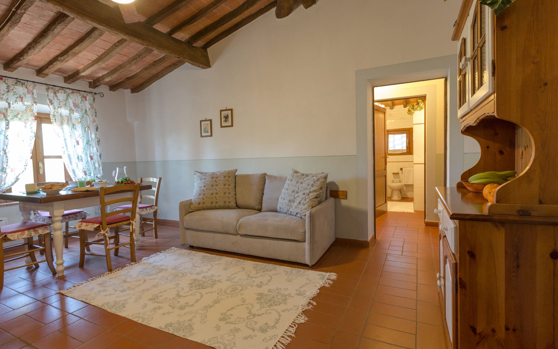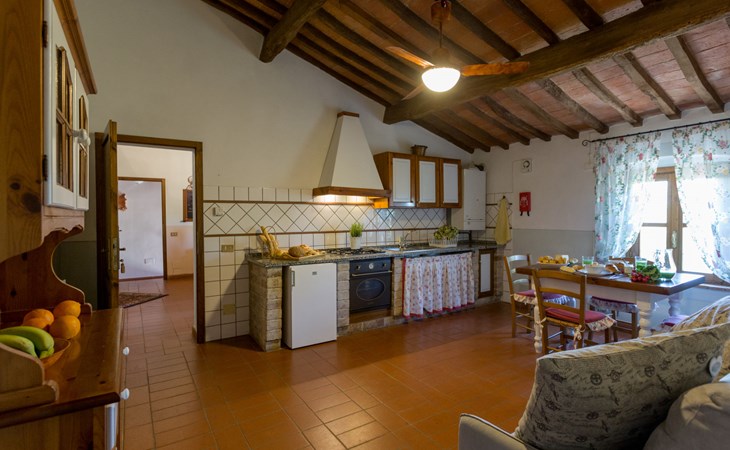 Large working farm. 8 apartments in the property. Property composed of main house and outbuilding 9.8 km from the centre of Peccioli, 24 km from the centre of Volterra, 35 km from the centre of San Gimignano, in a sunny position on top of a hill, 45 km from the sea. For shared use: garden (fenced), swimming pool (20 x 8 m, depth 140 - 300 cm, seasonal availability: 01.May. - 30.Oct.). Outdoor shower, table tennis, boccia, garden furniture, barbecue, children's playground, pool maintenance by the owner/gardener. In the house: lounge with TV, WiFi, central heating system, heating to be paid on the spot, heating available only from 01.Nov. - 07.Apr.. Breakfast possible (extra). Motor access to the house (800 m via unmade road). Parking on the premises. Grocery 3.8 km, supermarket 3.8 km, restaurant 500 m, bar 1 km, bus stop 1.5 km, sandy beach "Marina di Cecina, Vada, Tirrenia" 45 km, shingle beach "Castiglioncello" 60 km, thermal baths "Casciana Terme" 29 km. Golf course (18 hole) 13 km. Nearby attractions: Lajatico 21 km, Chianni 25 km, San Miniato 45 km, Pisa 55 km, Lucca 57 km, Bolgheri 62 km. Suitable for events.