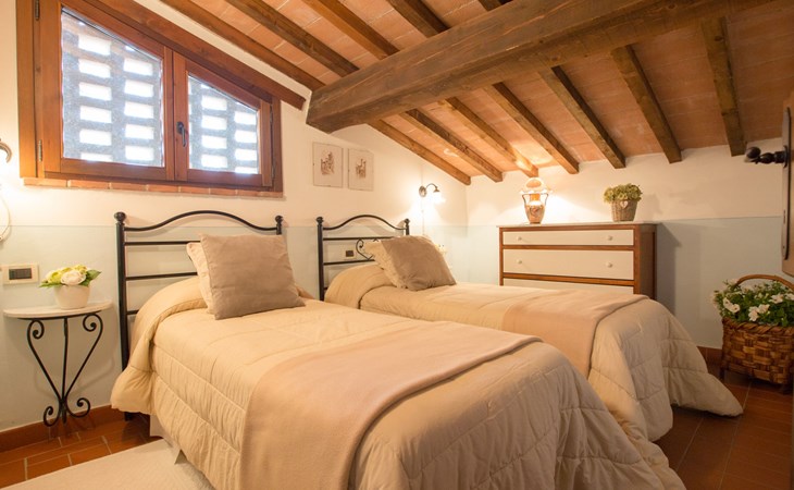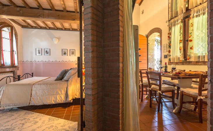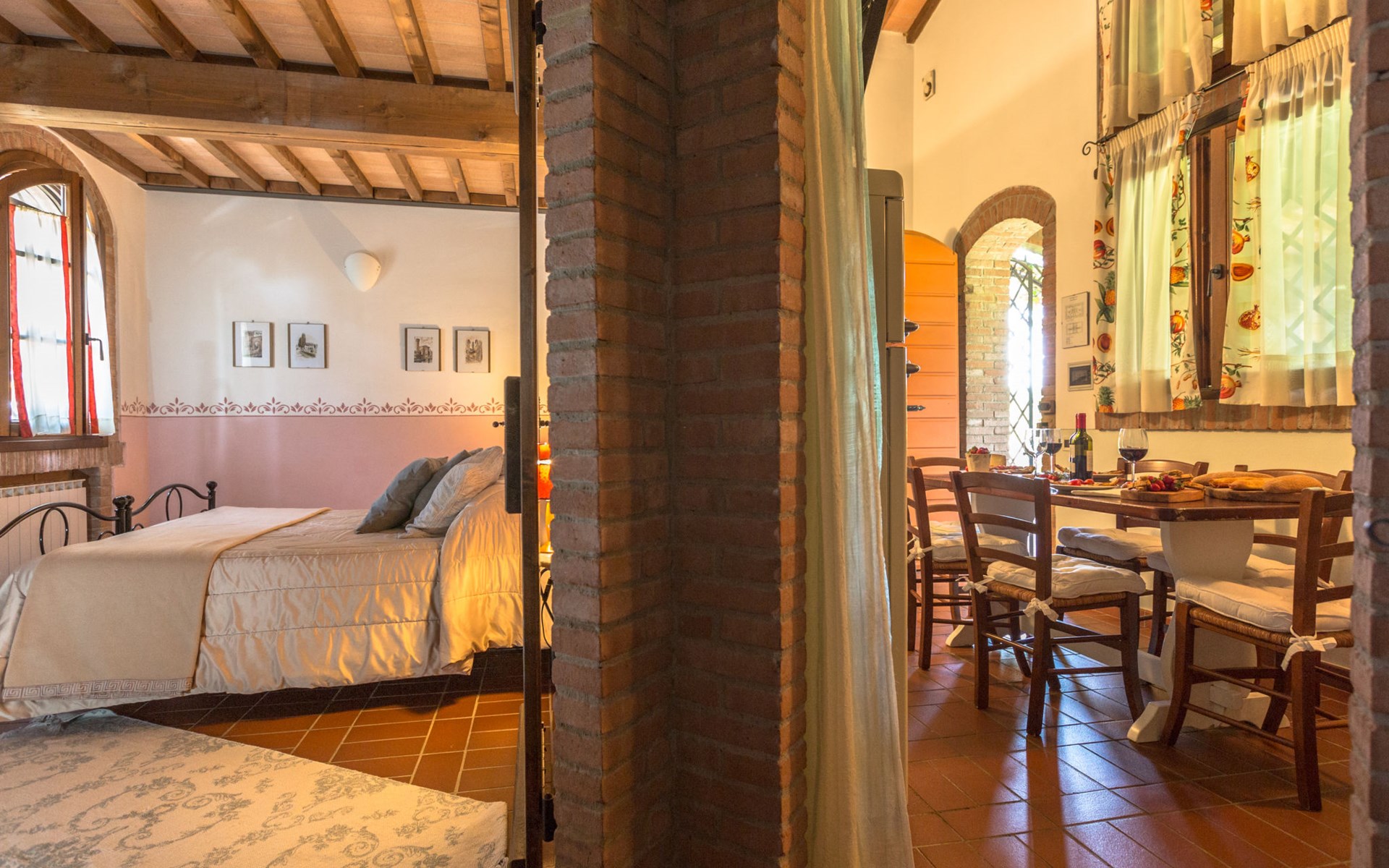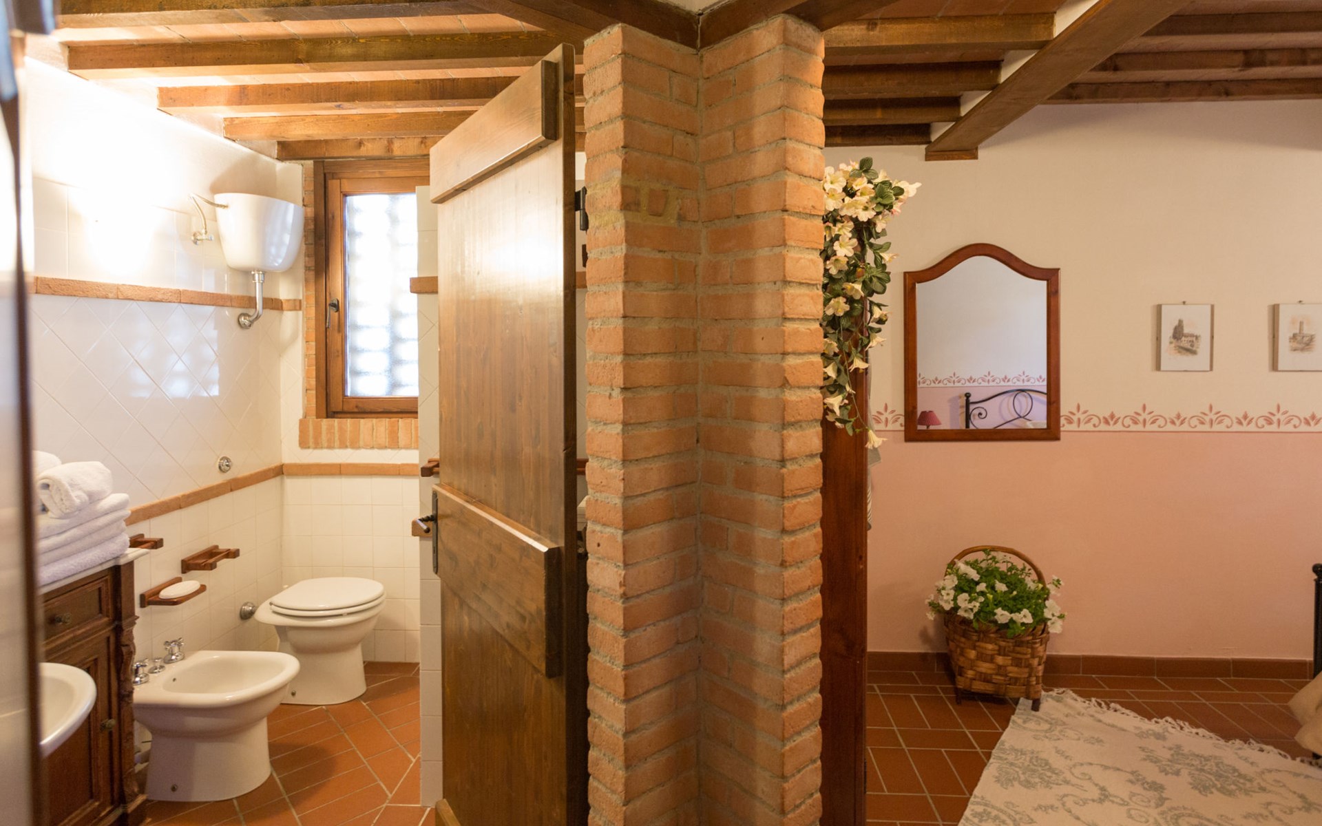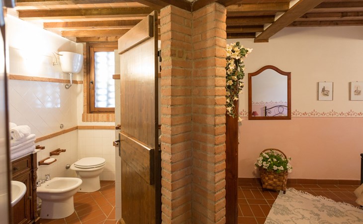 Large working farm. 8 apartments in the property. Property composed of main house and outbuilding 9.8 km from the centre of Peccioli, 24 km from the centre of Volterra, 35 km from the centre of San Gimignano, in a sunny position on top of a hill, 45 km from the sea. For shared use: garden (fenced), swimming pool (20 x 8 m, depth 140 - 300 cm, seasonal availability: 01.May. - 30.Oct.). Outdoor shower, table tennis, boccia, garden furniture, barbecue, children's playground, pool maintenance by the owner/gardener. In the house: lounge with TV, WiFi, central heating system, heating to be paid on the spot, heating available only from 01.Nov. - 07.Apr.. Breakfast possible (extra). Motor access to the house (800 m via unmade road). Parking on the premises. Grocery 3.8 km, supermarket 3.8 km, restaurant 500 m, bar 1 km, bus stop 1.5 km, sandy beach "Marina di Cecina, Vada, Tirrenia" 45 km, shingle beach "Castiglioncello" 60 km, thermal baths "Casciana Terme" 29 km. Golf course (18 hole) 13 km. Nearby attractions: Lajatico 21 km, Chianni 25 km, San Miniato 45 km, Pisa 55 km, Lucca 57 km, Bolgheri 62 km. Suitable for events.