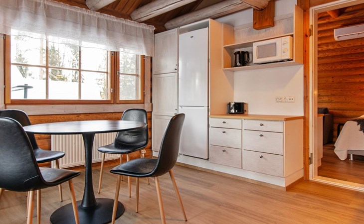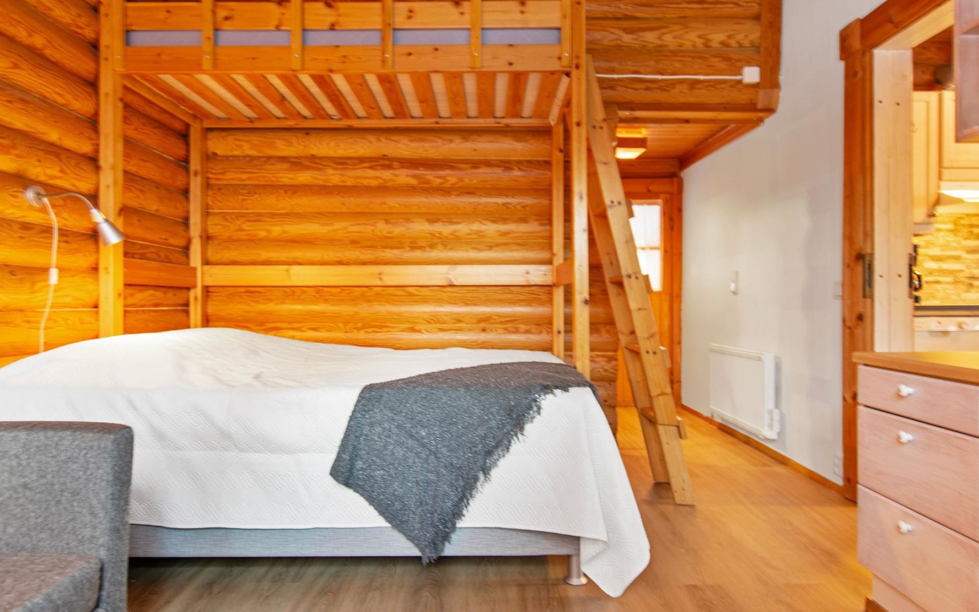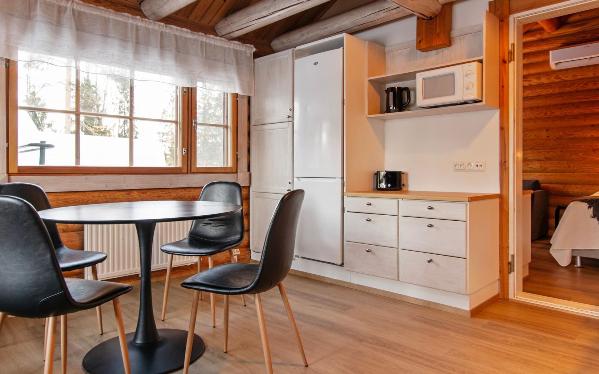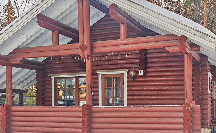 Round log cabin, built in 1986. The living room has a double bed and sofa bed (120 x 200 cm), and on the loft of the living room, there is 1 mattress (80 x 200 cm). The kitchen features a dining group, and on the loft of the kitchen, there are 2 mattresses (80 x 200 cm). However, the max. number of guests in the cabin is 5 people. The sofa bed serves as an additional sleeping option. In addition, there is a washroom, sauna (electric sauna stove), and WC equipped with washing machine. Spacious terrace with outdoor furniture. The cabin has 50 Mbps Wi-Fi.