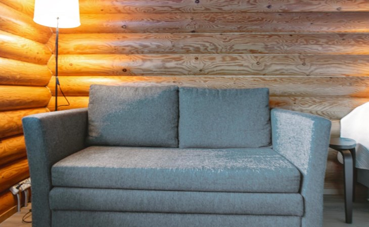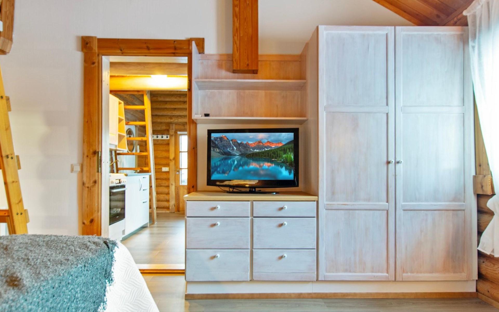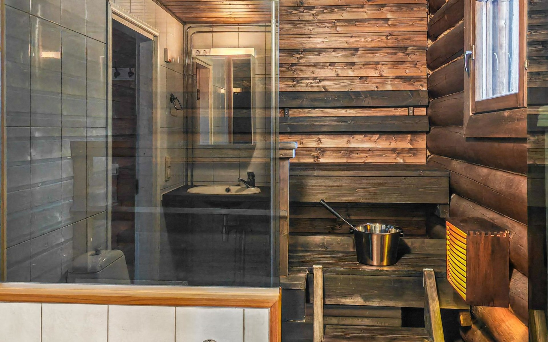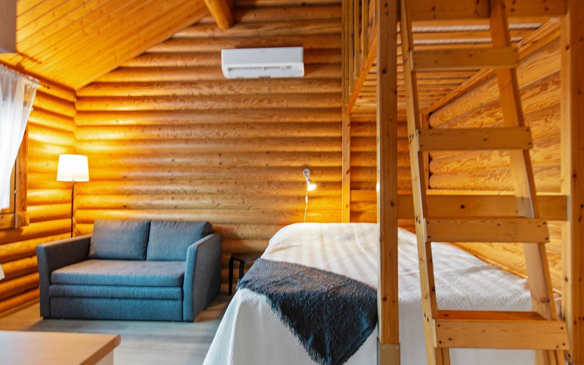 Round log cabin, built in 1986. The living room has a double bed and sofa bed (120 x 200 cm), and on the loft of the living room, there is 1 mattress (80 x 200 cm). The kitchen features a dining group, and on the loft of the kitchen, there are 2 mattresses (80 x 200 cm). However, the max. number of guests in the cabin is 5 people. The sofa bed serves as an additional sleeping option. In addition, there is a washroom, sauna (electric sauna stove), and WC equipped with washing machine. Spacious terrace with outdoor furniture. The cabin has 50 Mbps Wi-Fi.