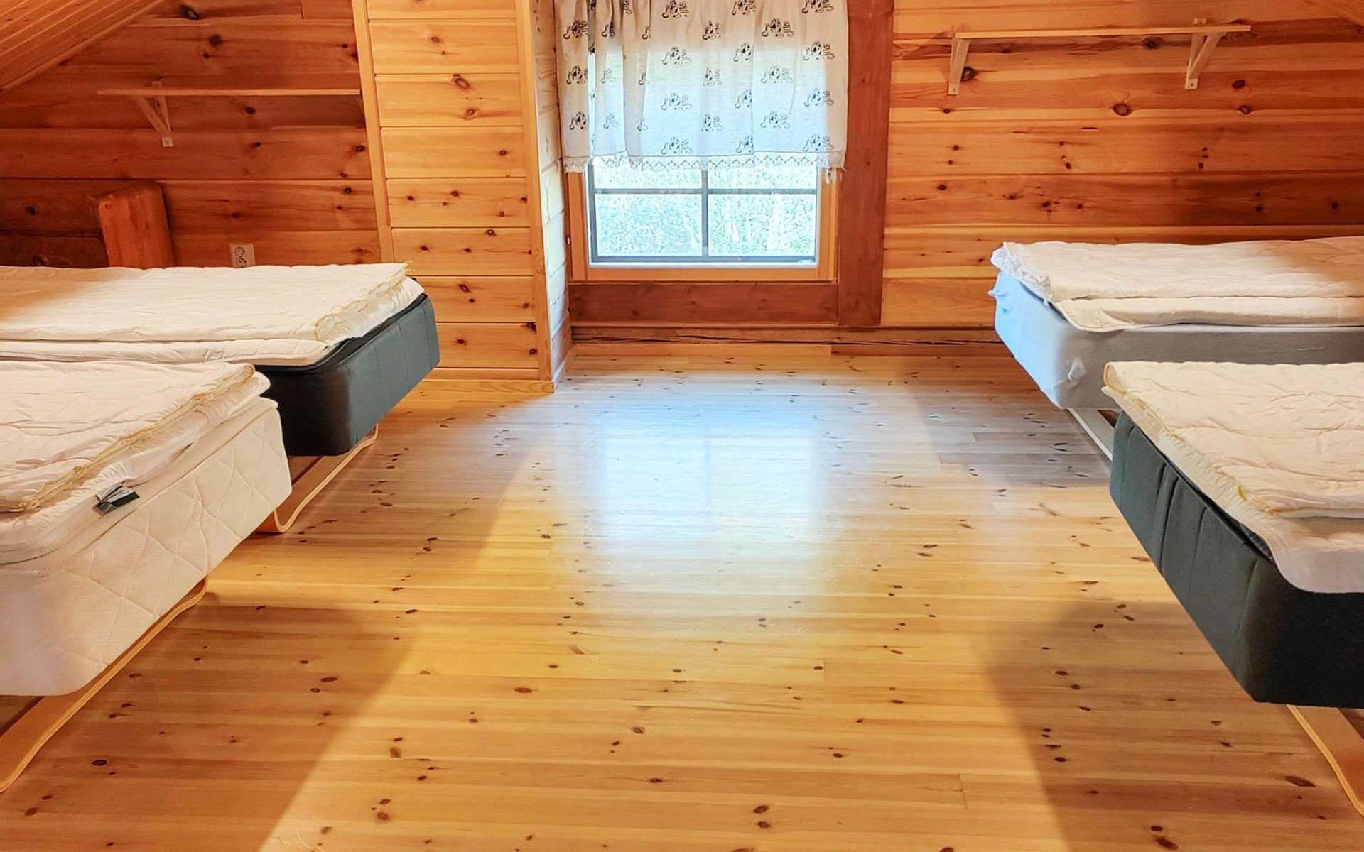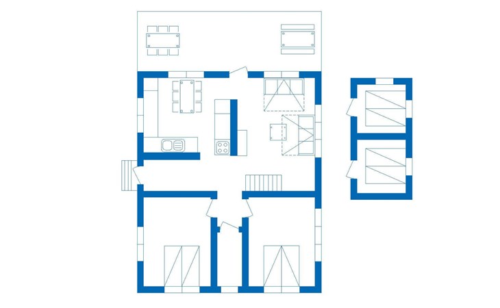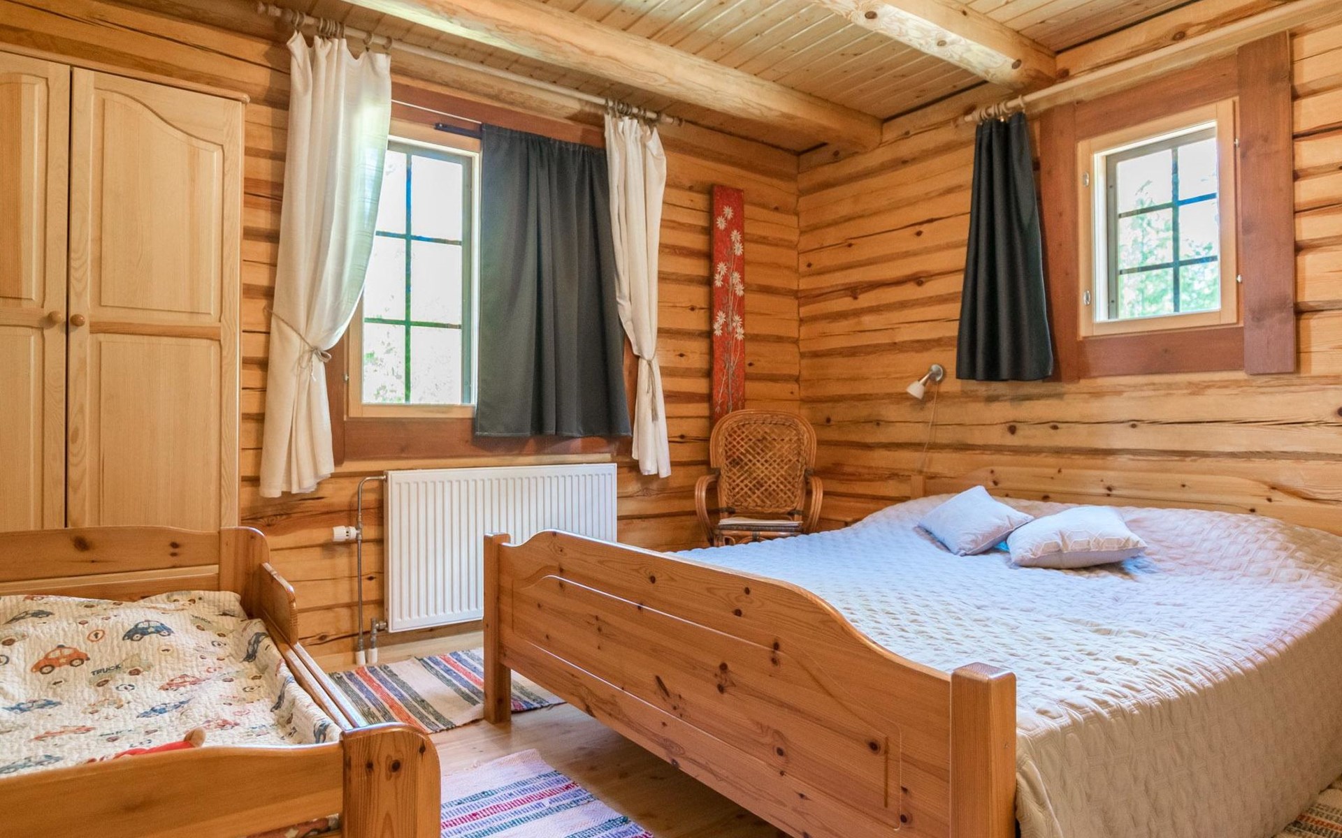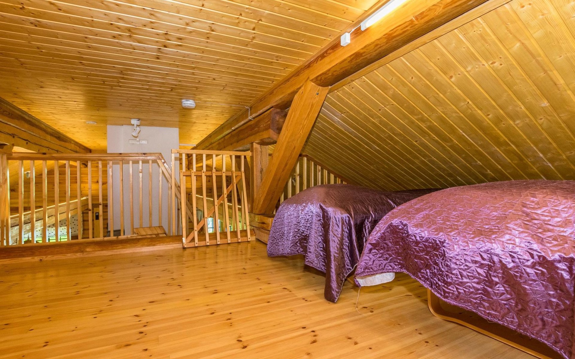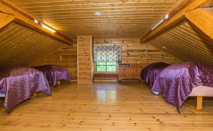 In addition, four sleeping sites in an outbuilding located in the yard. The outbuilding is not heated, beds in the outbuilding are not counted as actual beds. The maximum number of guests is 12 people.
