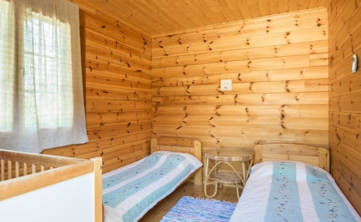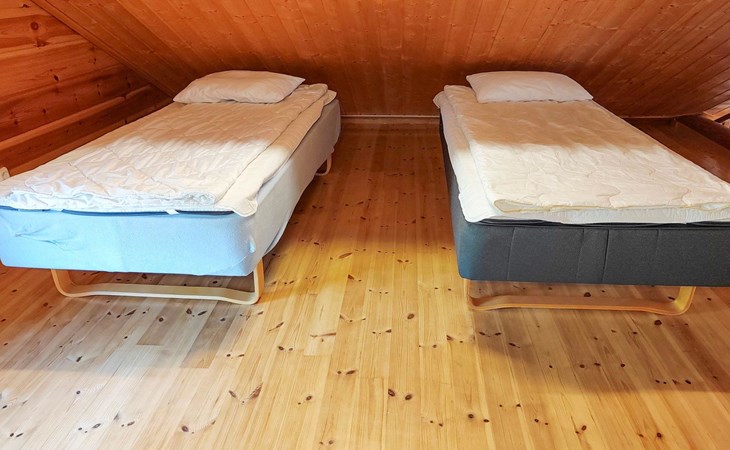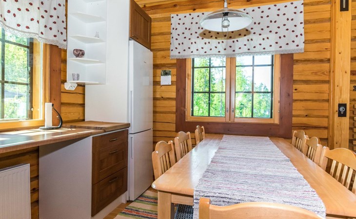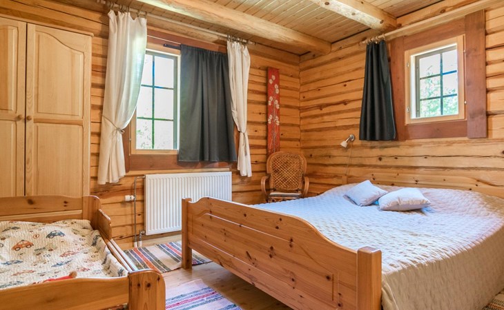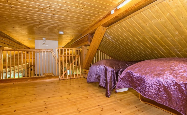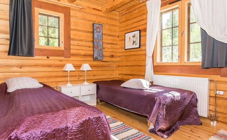 46 km from Jyväskylä, lake Kivijärvi 35 m, two piers, two rowing boats and canoe. Log cabin, built in 2012, living room with two sofa beds (bed sizes are 140 x 190 cm when opened), living room / kitchen, washroom with WC, bedroom 1: double bed and extendable cot, bedroom 2: two beds, loft with 4 beds.