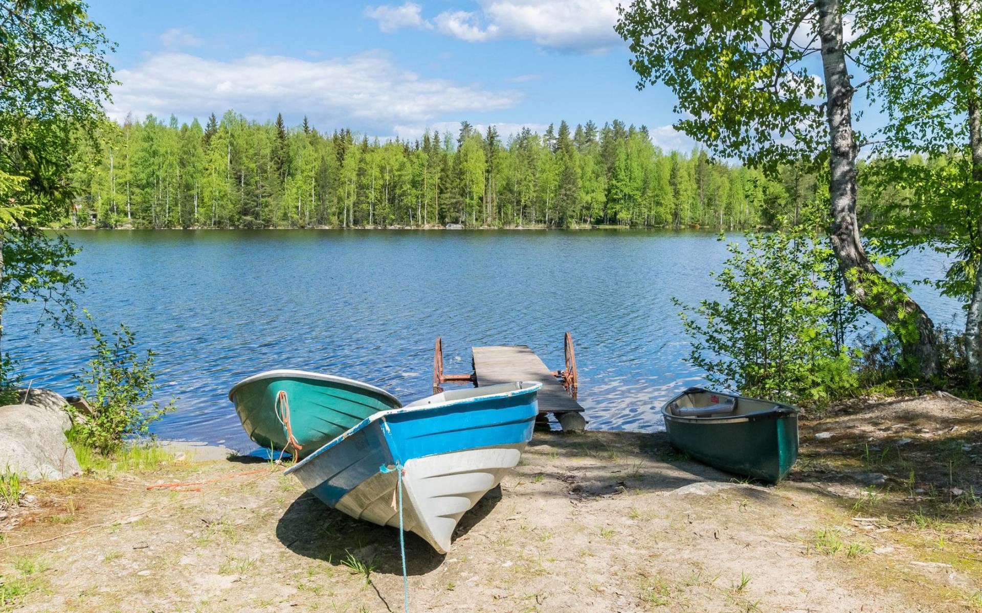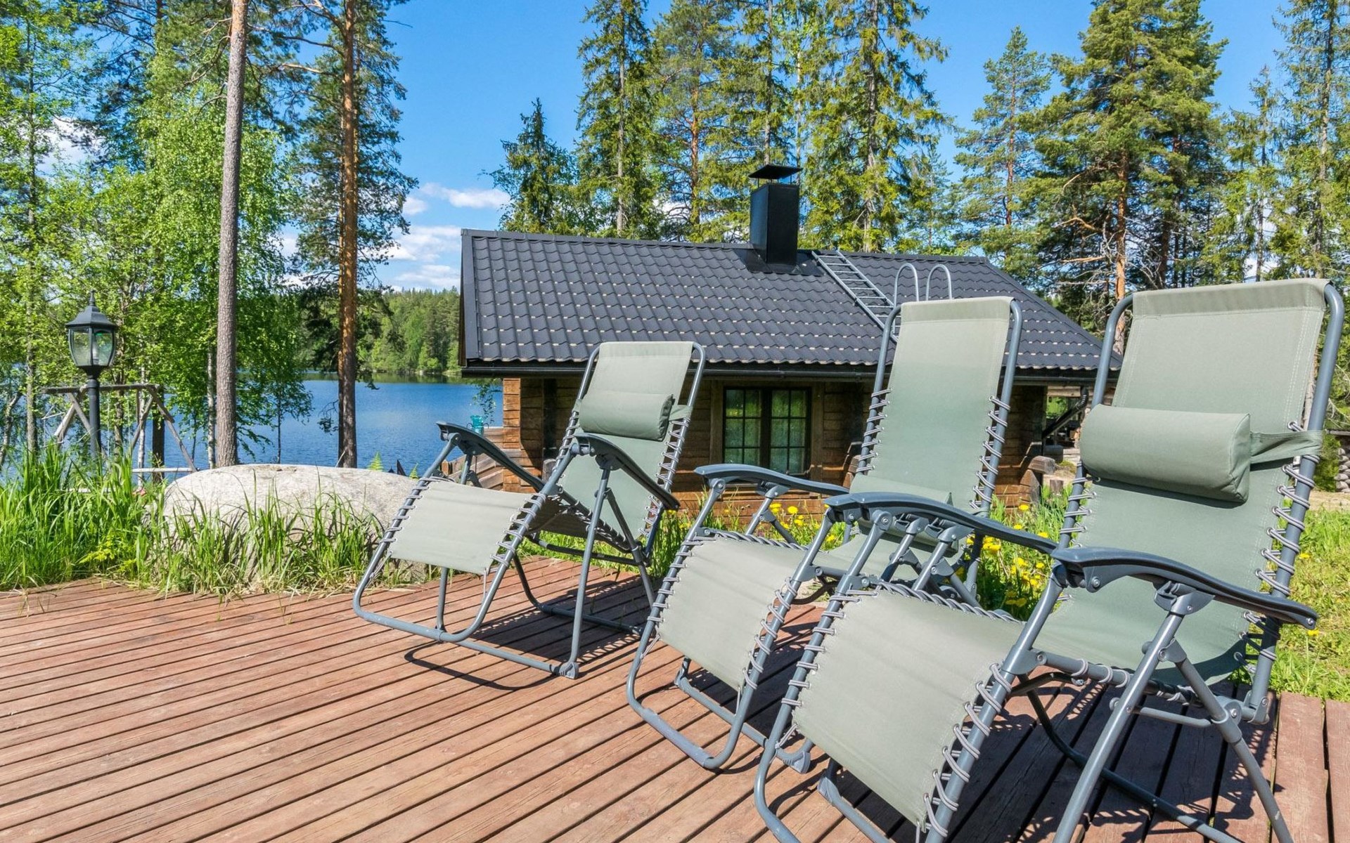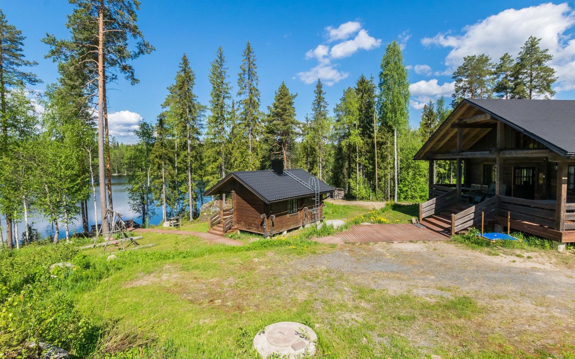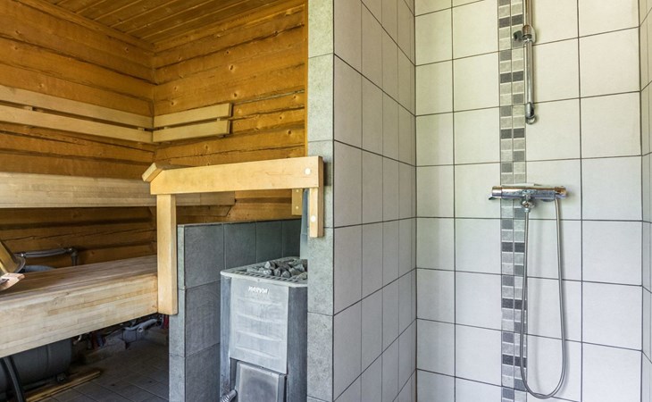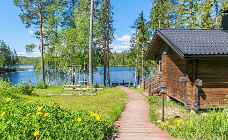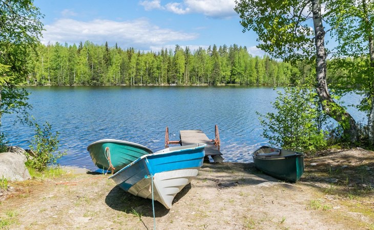 Lakeside sauna (wood-burning sauna stove), covered cooking area. Possibility for ice dipping in winter. Spacious and sunny plot. The lakeside sauna has its own pier and at the other end of the plot there is a shallow sand beach and separate pier. In the yard there is a lot of space for outdoor games and pleasant pastime.
