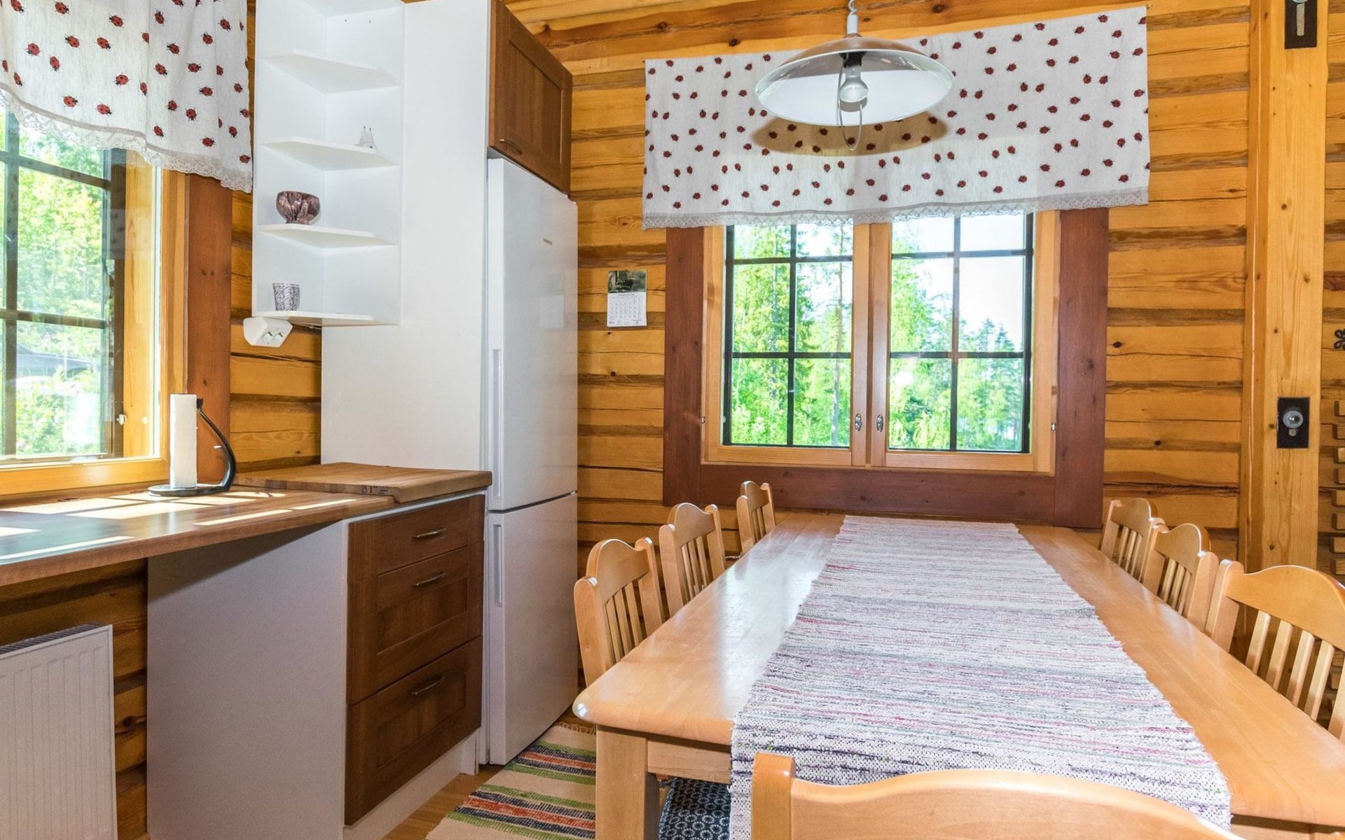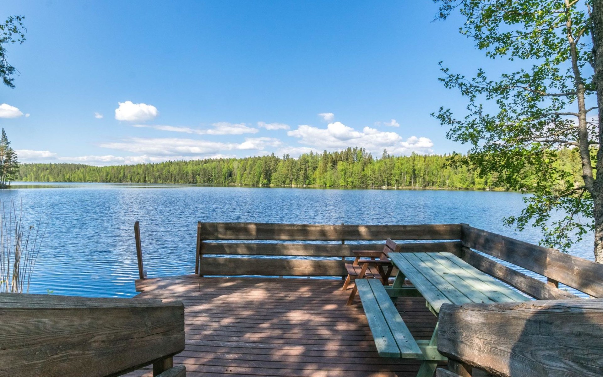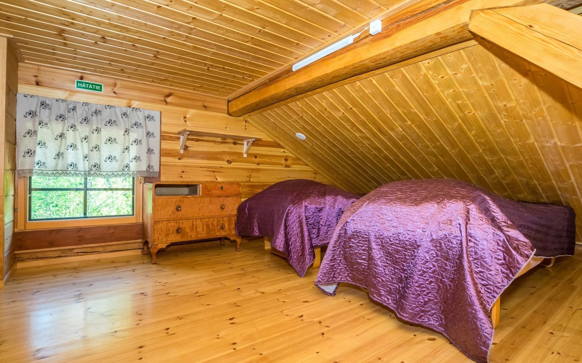 Lakeside sauna (wood-burning sauna stove), covered cooking area. Possibility for ice dipping in winter. Spacious and sunny plot. The lakeside sauna has its own pier and at the other end of the plot there is a shallow sand beach and separate pier. In the yard there is a lot of space for outdoor games and pleasant pastime.