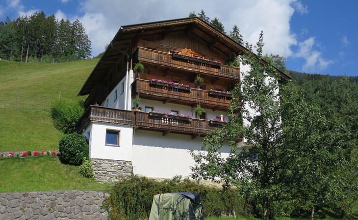 House "Baggenhof". In the district of Laimach 5 km from the centre of Mayrhofen, 2 km from the centre of Hippach, 2 km from the centre of Zell im Zillertal, on a slope. In the house: storage room for skis, ski boot dryer. Bread roll service. Parking on the premises. Shop 2 km, supermarket 3 km, bus stop "Laimach Talbach" 600 m, railway station "Zell a.Z. Bahnhof" 2.6 km, indoor swimming pool 8 km. Mountain railway 3 km, ski bus stop 400 m. The owner does not accept any youth groups. Please note: the owner lives in the same residence.