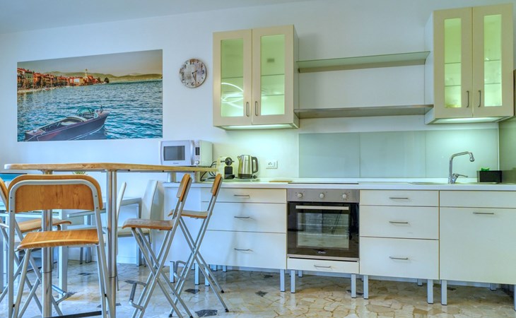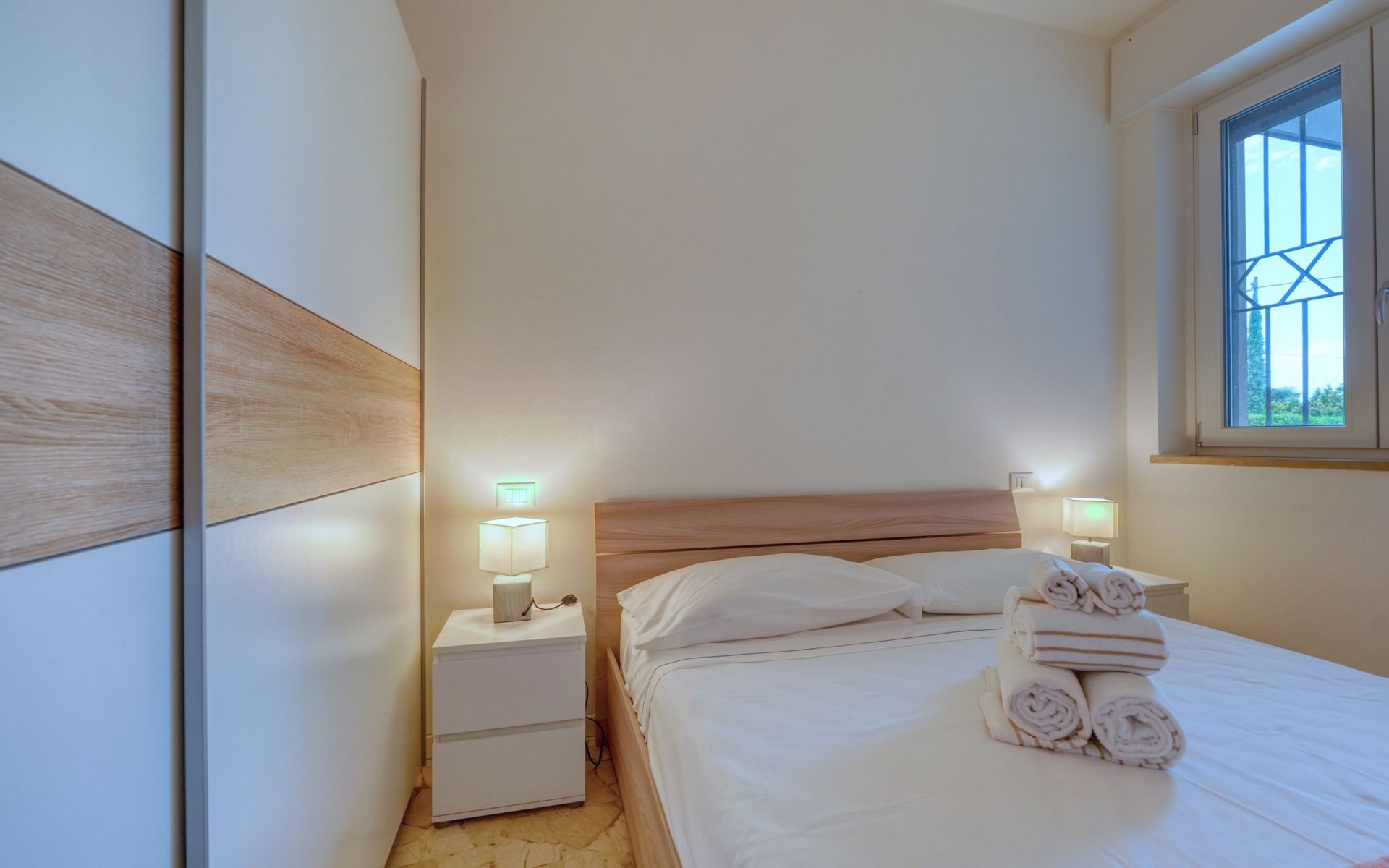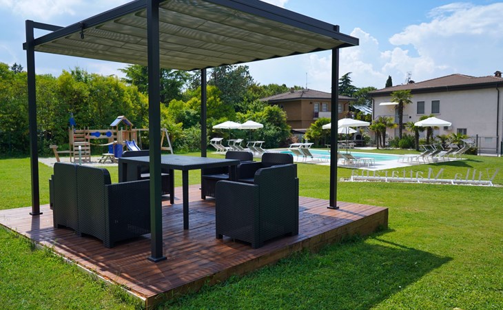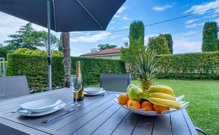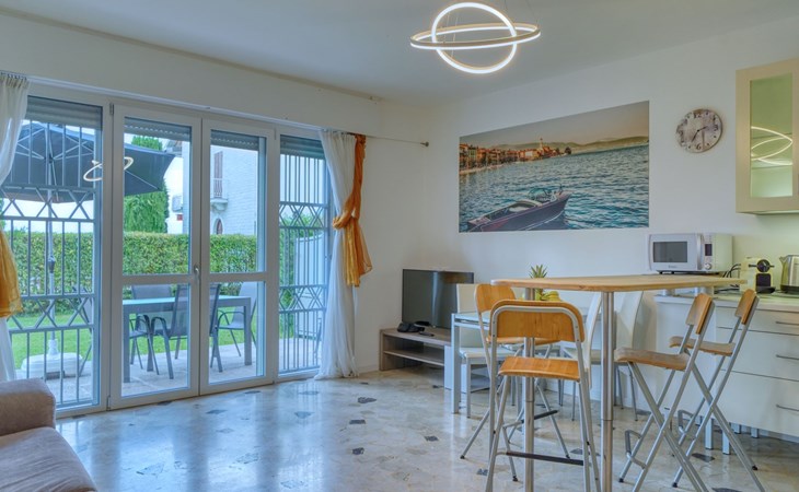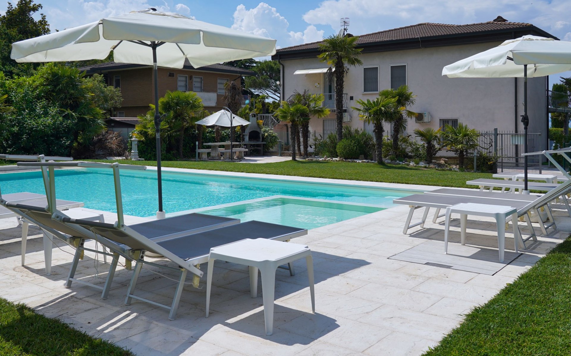 Very beautiful 3-family house "Villa Mattarana", detached. 3 apartments in the property. In the district of Pacengo 1.8 km from the centre of Pacengo, 5 km from the centre of Lazise, 100 m from the lake, 100 m from the beach, direct access to the beach. For shared use: property 1'000 m2 (fenced), beautiful, well-kept garden, swimming pool (11 x 5 m, seasonal availability: 01.Jun. - 30.Sep.). Pergola (20 m2), garden furniture, barbecue, children's playground, bathing jetty. Private: garden 60 m2. In the house: WiFi. Parking at the house. Supermarket 500 m, bar, railway station "Peschiera" 5 km. Nearby attractions: Gardaland 2 km. Guarded residence. Video surveillance cameras in common outdoor areas.