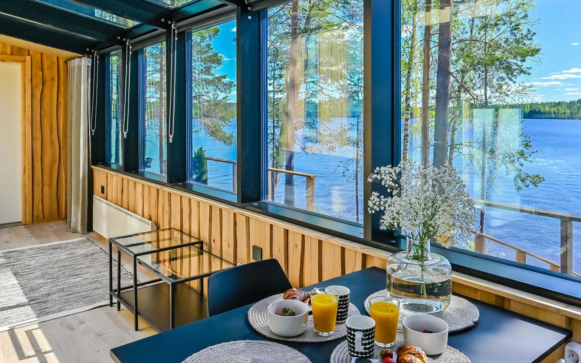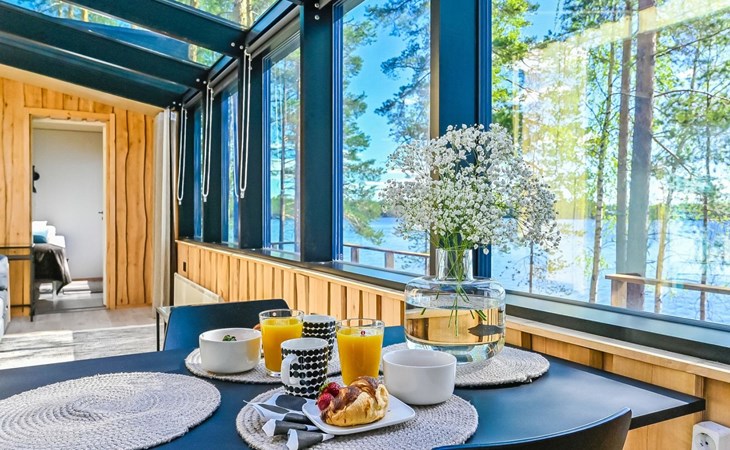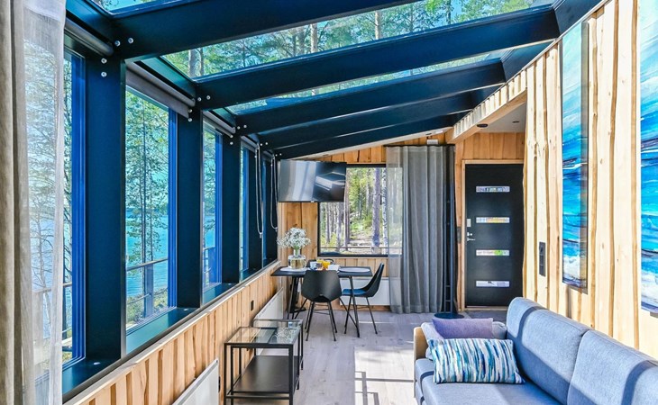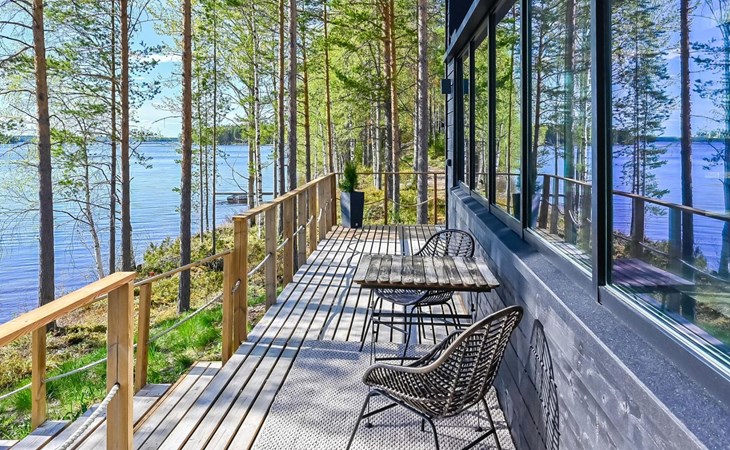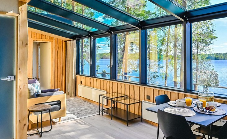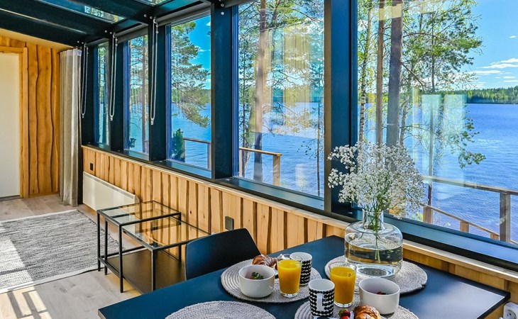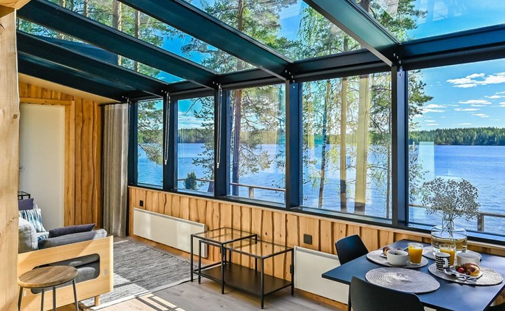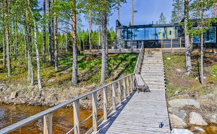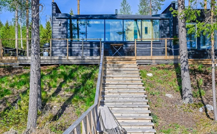 The destination is built in 2018 and expanded in June 2020. The extension provided one additional bedroom with two motorized beds. There is a sofa bed made in Finland in the sophisticated living room; two separate beds while spread. The kitchen is fully equipped. View over the lake from sauna.