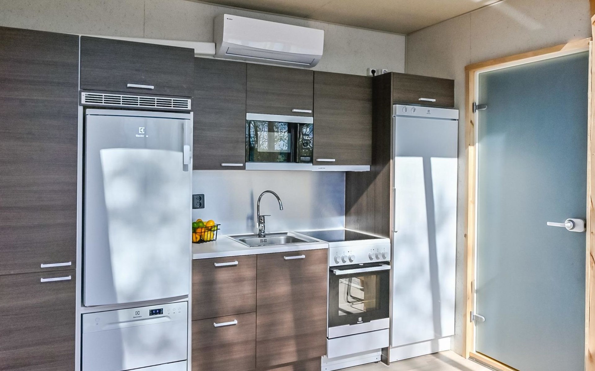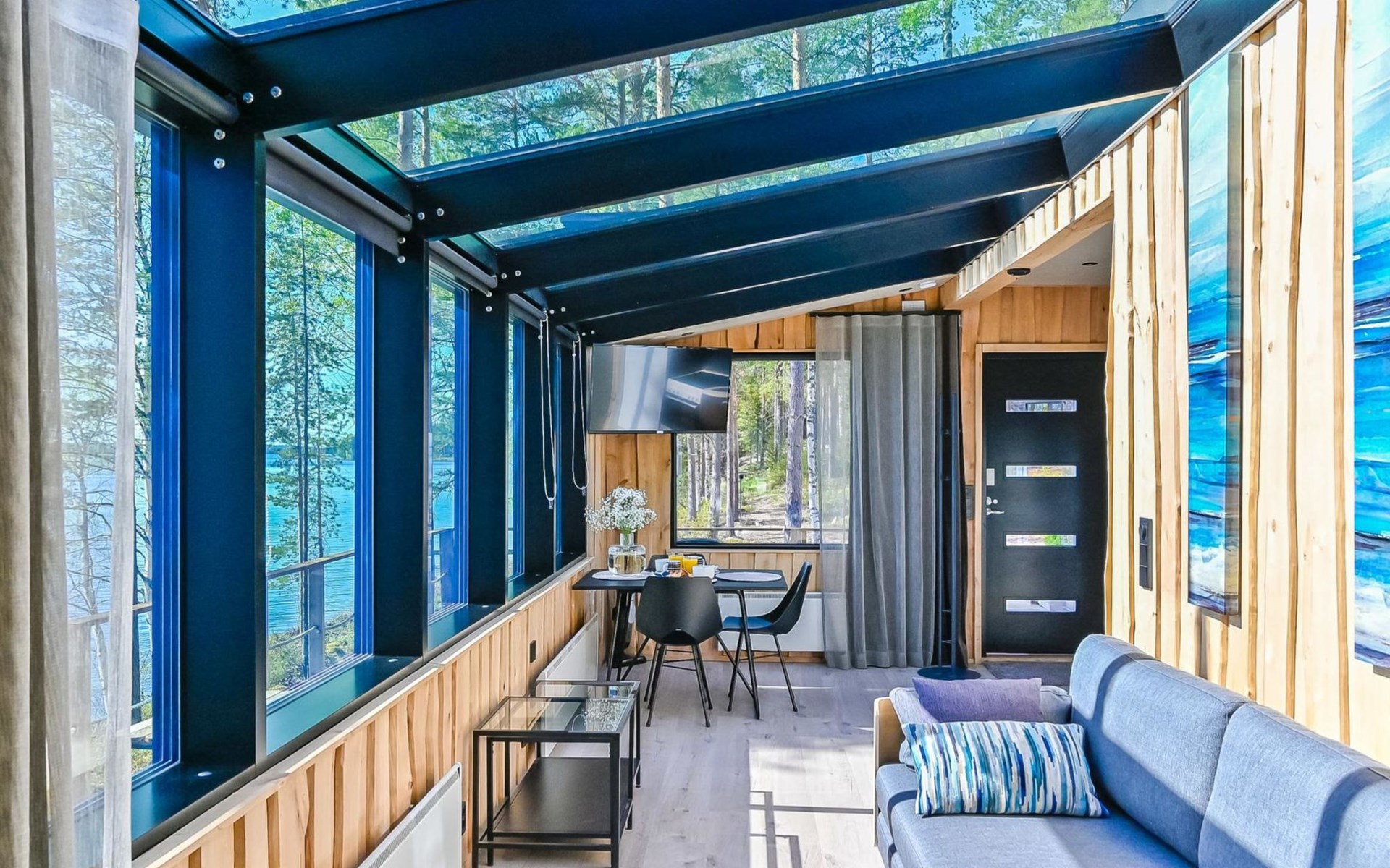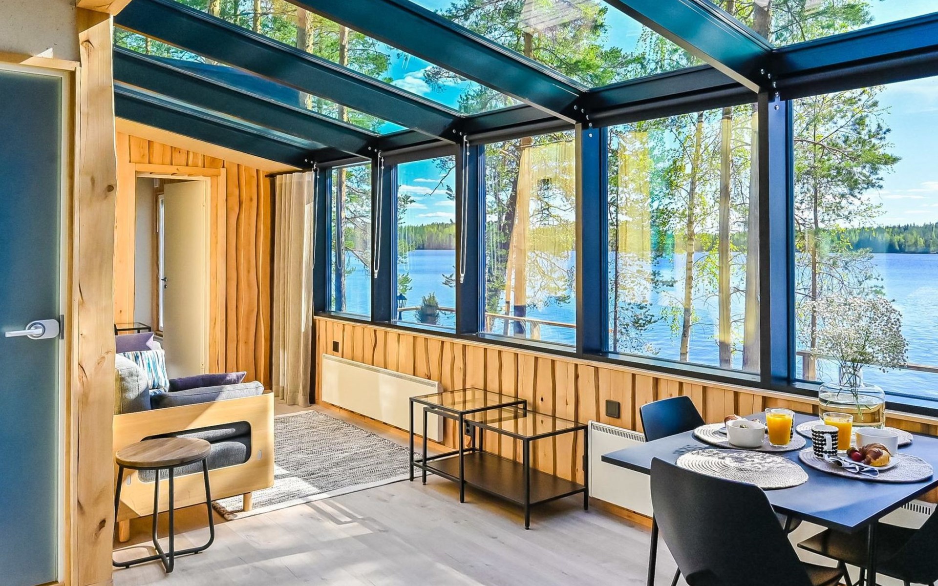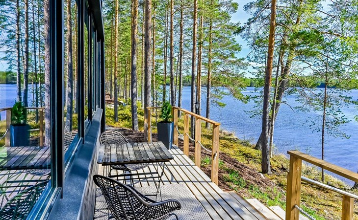 The destination is built in 2018 and expanded in June 2020. The extension provided one additional bedroom with two motorized beds. There is a sofa bed made in Finland in the sophisticated living room; two separate beds while spread. The kitchen is fully equipped. View over the lake from sauna.