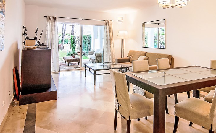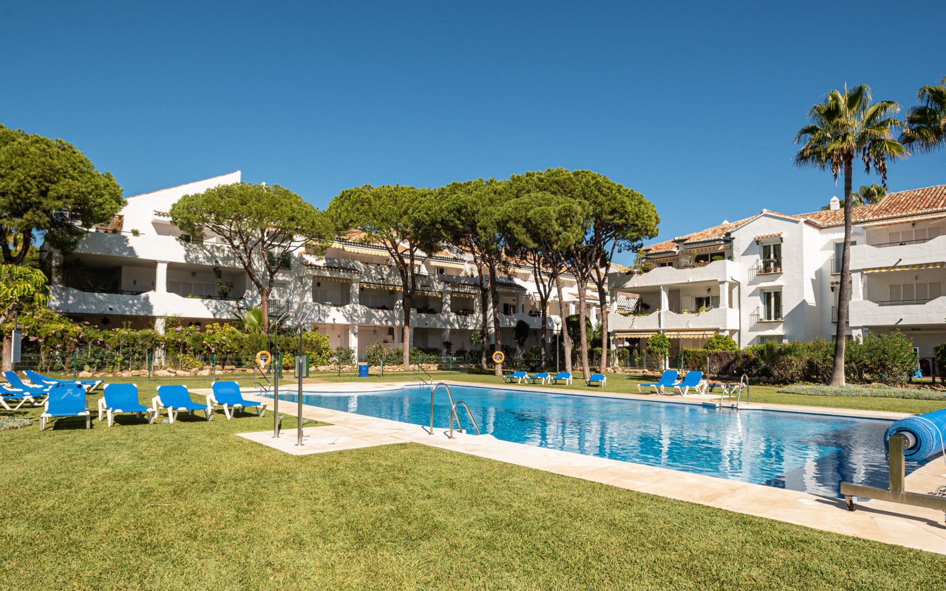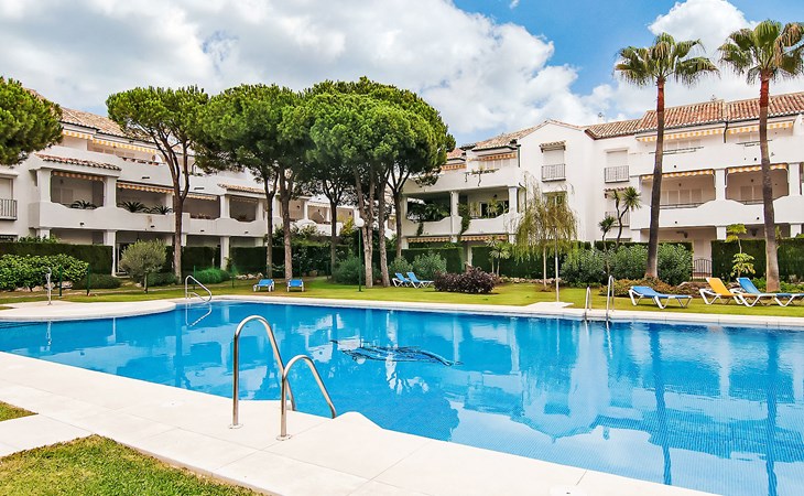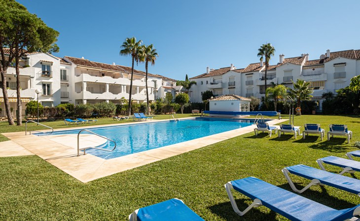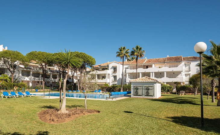 Apartment block "El Presidente". 12 km from the centre of Estepona, 6 km from the centre of Puerto BanĂºs, 400 m from the sea, 500 m from the beach, south facing position. For shared use: park, garden with lawn, 5 swimming pools (seasonal availability: 01.Jan. - 31.Dec.). Shower/WC in the pool area, children's pool, tennis, floodlit, children's playground, public parking on the road. Supermarket 800 m, restaurant, bus stop 300 m, sandy beach 500 m. Sports harbour 6 km, golf course (18 hole) 3 km. Object suitable for 4 adults. The owner does not accept any groups. The owner does not accept any youth groups. Neighbourhood highly sensitive to noise. Quietness and good behaviour expected. One of the swimming pools is heated in winter.