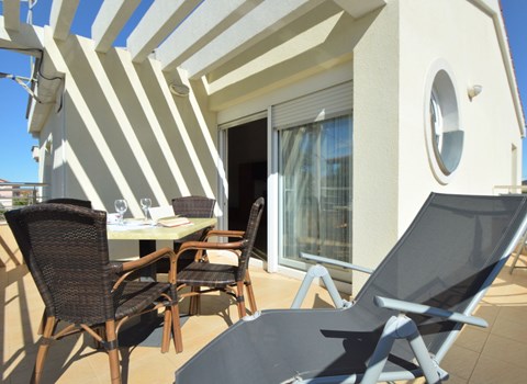 The fully air-conditioned (heating and cooling) 70m² apartment on the ground floor of the three-storey apartment building consists of a living room, a fully-equipped kitchen, two bedrooms and a daylight bathroom. Th living room provides a generous corner sofa suite, a wide flatscreen TV with a satellite receiver and a radio. An elegant breakfast bar with four stools separates the living room from the cream and anthracite built-in kitchen, equipped with the latest appliances: dishwasher, two-zone gas stove, oven, microwave, fridge with freezer compartment and coffee machine. The two bedrooms are each furnished with a double bed (160 x 200cm), bedside tables with reading lamps and cupboards with ample storage space for your clothing and luggage. The bathroom is fitted with a shower cubicle, a washbasin with a cupboard underneath and a wall mirror, a hairdryer, a toilet and a washing machine. A highchair is available and plenty of bed linen and towels are provided. There is free wireless Internet access.
