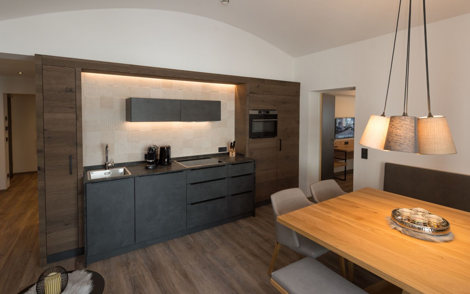 The location is particularly advantageous for winter sports enthusiasts, as the ski slope, a mountain/cable car and a ski school are just 300 metres away. A ski bus even stops just 10 metres from the flat, making it easier to access more distant ski areas. The nearest village centre and shopping facilities for daily needs are just 3000 metres away.