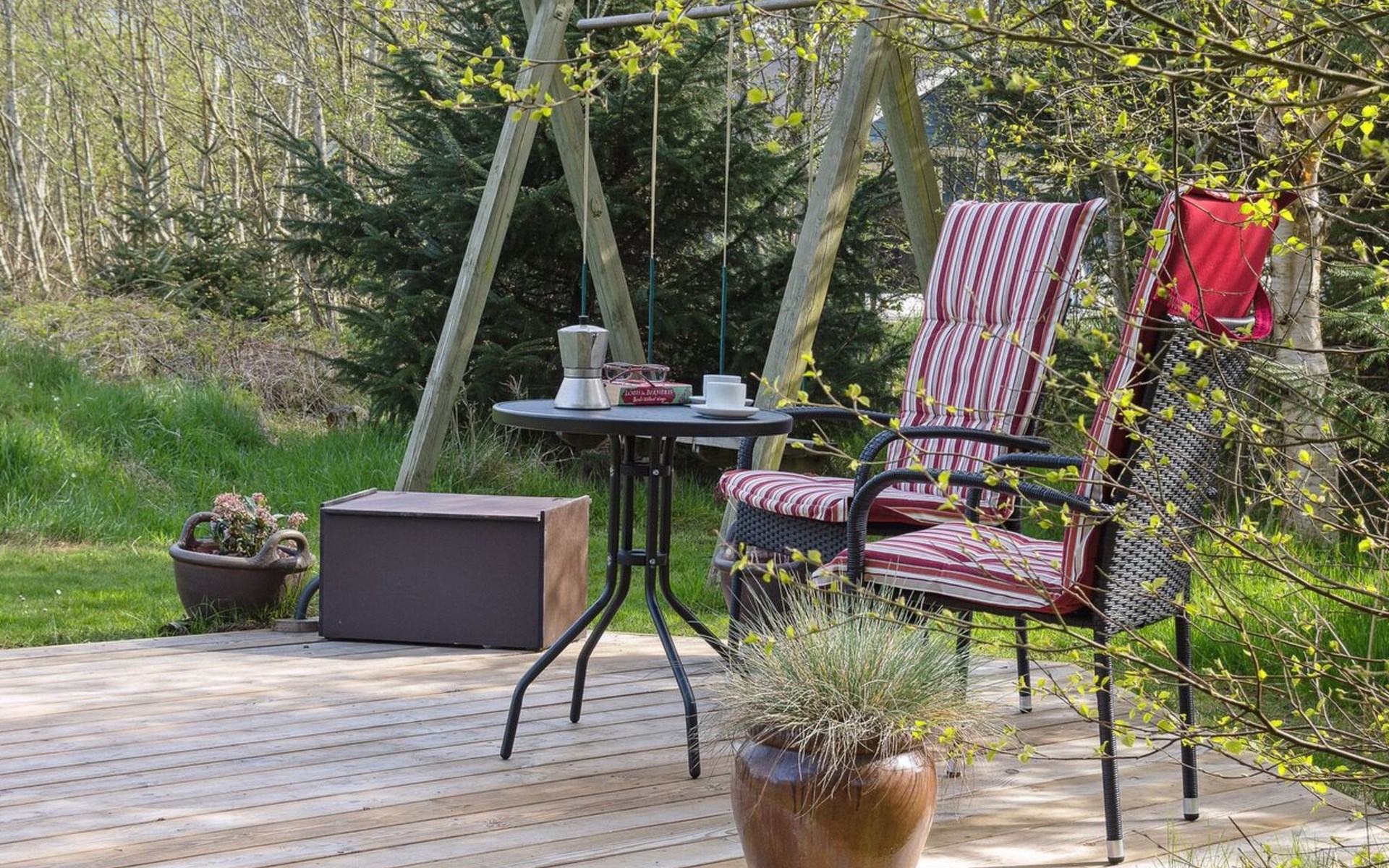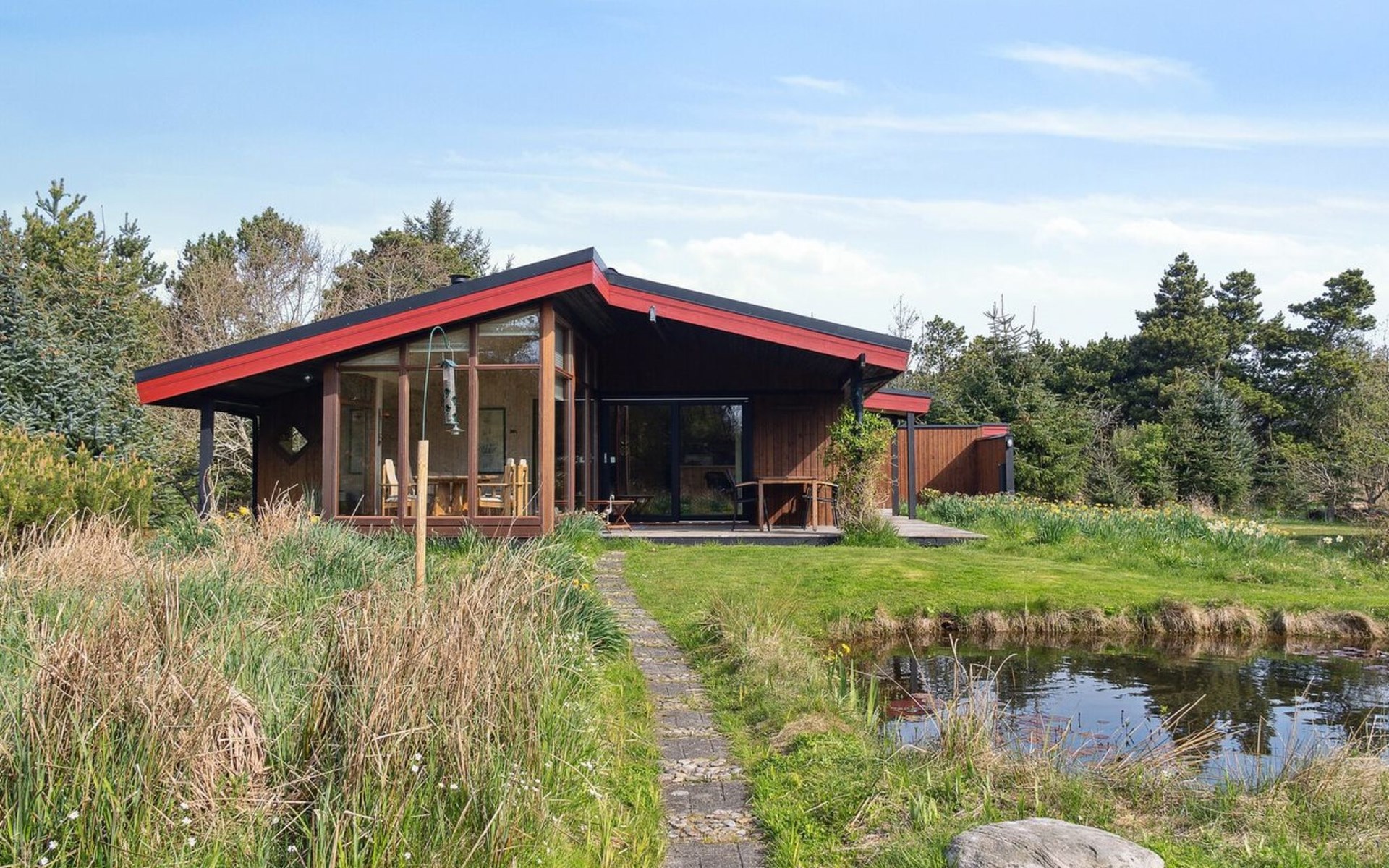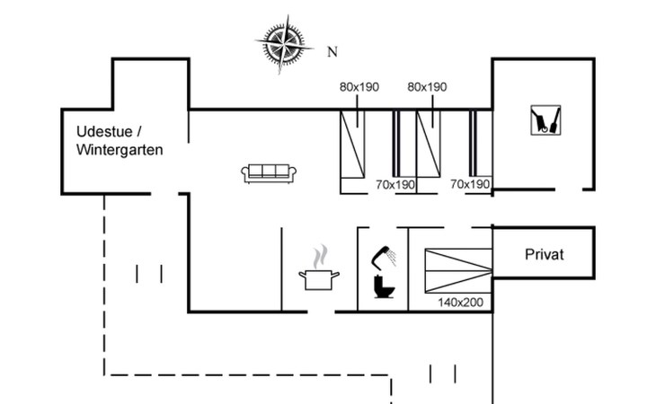 Single-family house, built in 1976. 500 m from the sea. Private: natural state property 2'300 m2. Terrace (40 m2), children's playground (swing). In the house: washing machine, tumble dryer. Parking at the house. Carport. Grocery 600 m. The owner does not accept any youth groups.