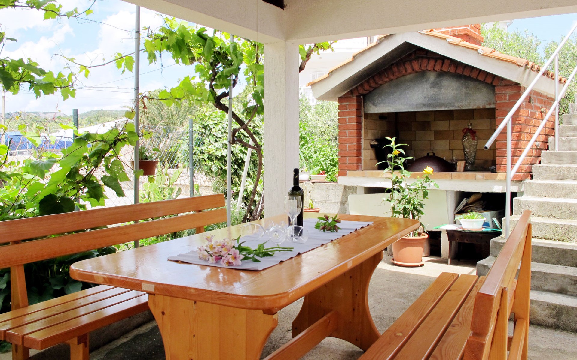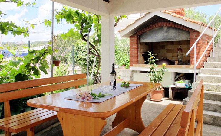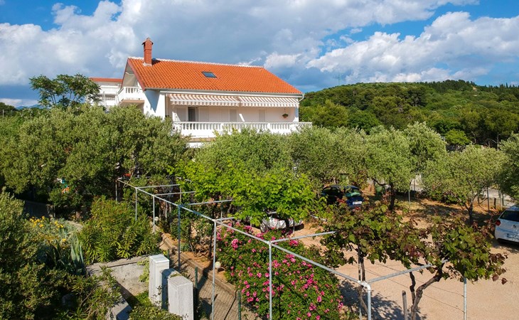 Apartment house "Matius". 3 apartments in the property. 7 km from the centre of Rab, on the outskirts, 2.3 km from the centre of Barbat, 17 km from the centre of Lopar, 500 m from the sea, 500 m from the beach. For shared use: property 900 m2 (fenced), garden flowers and trees. Garden furniture, barbecue. In the house: WiFi. Shop 500 m, supermarket 5.7 km, restaurant 800 m, bus stop 350 m, ferry "Misnjak" 5 km, sandy beach, pebble beach 500 m. Please note: the owner lives in the same residence.