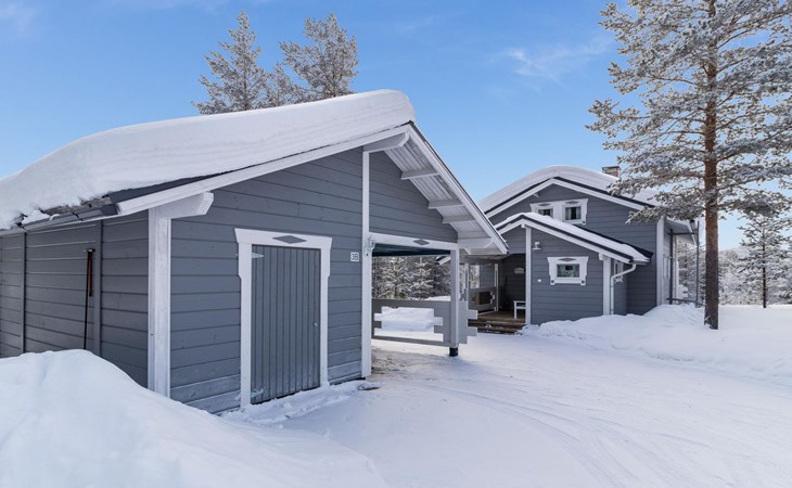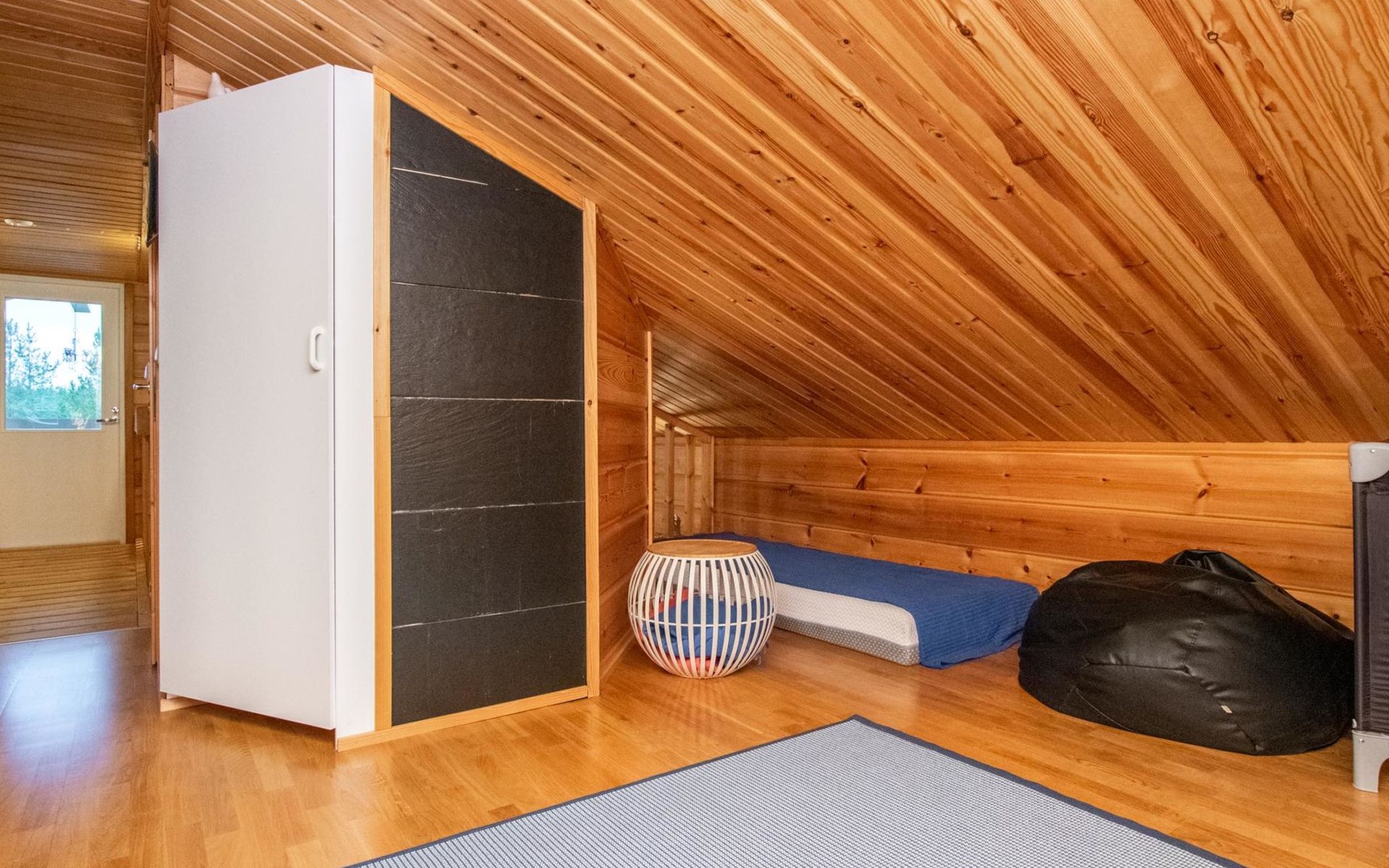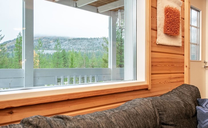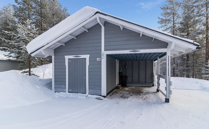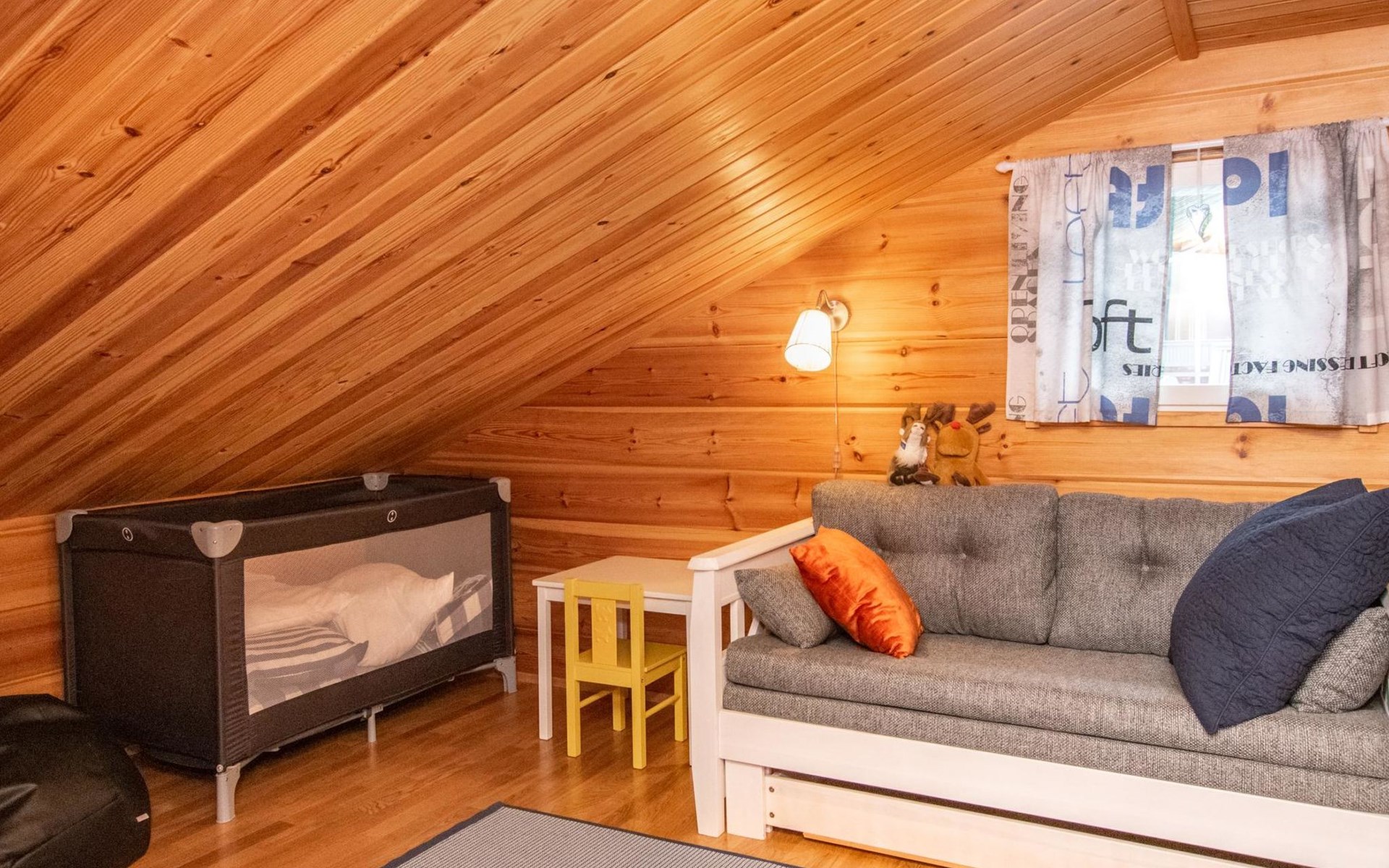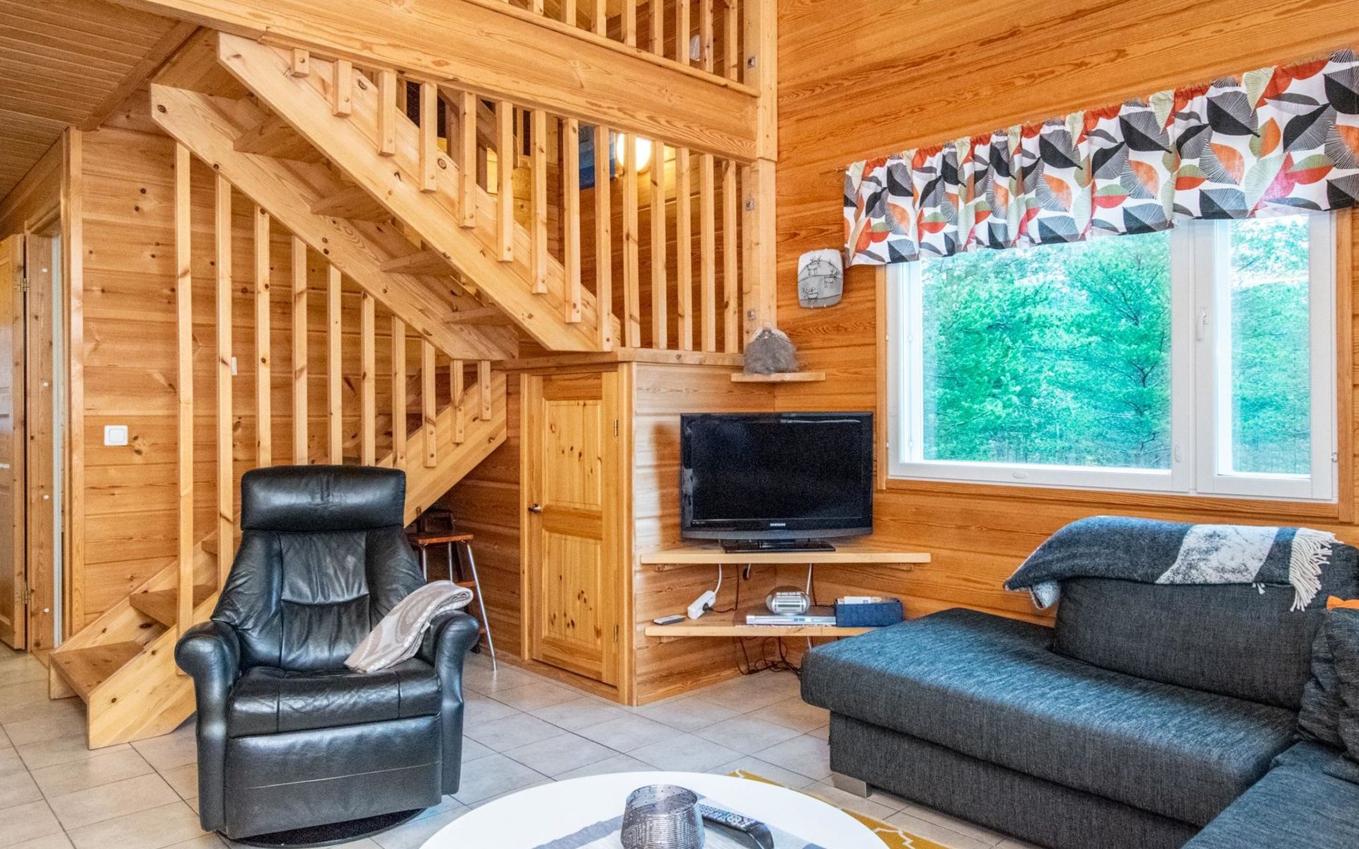 Cabin built in 2012. Downstairs kitchen, living room, bedroom with double bed (140*200cm), bedroom with bed (120*200cm), sauna (wooden stove), washroom, toilet and terrace. Upstairs bed 80*200cm, bed 140*200cm, mattress 80*200cm and toilet. Maintenance room for skies in the warehouse and carport.