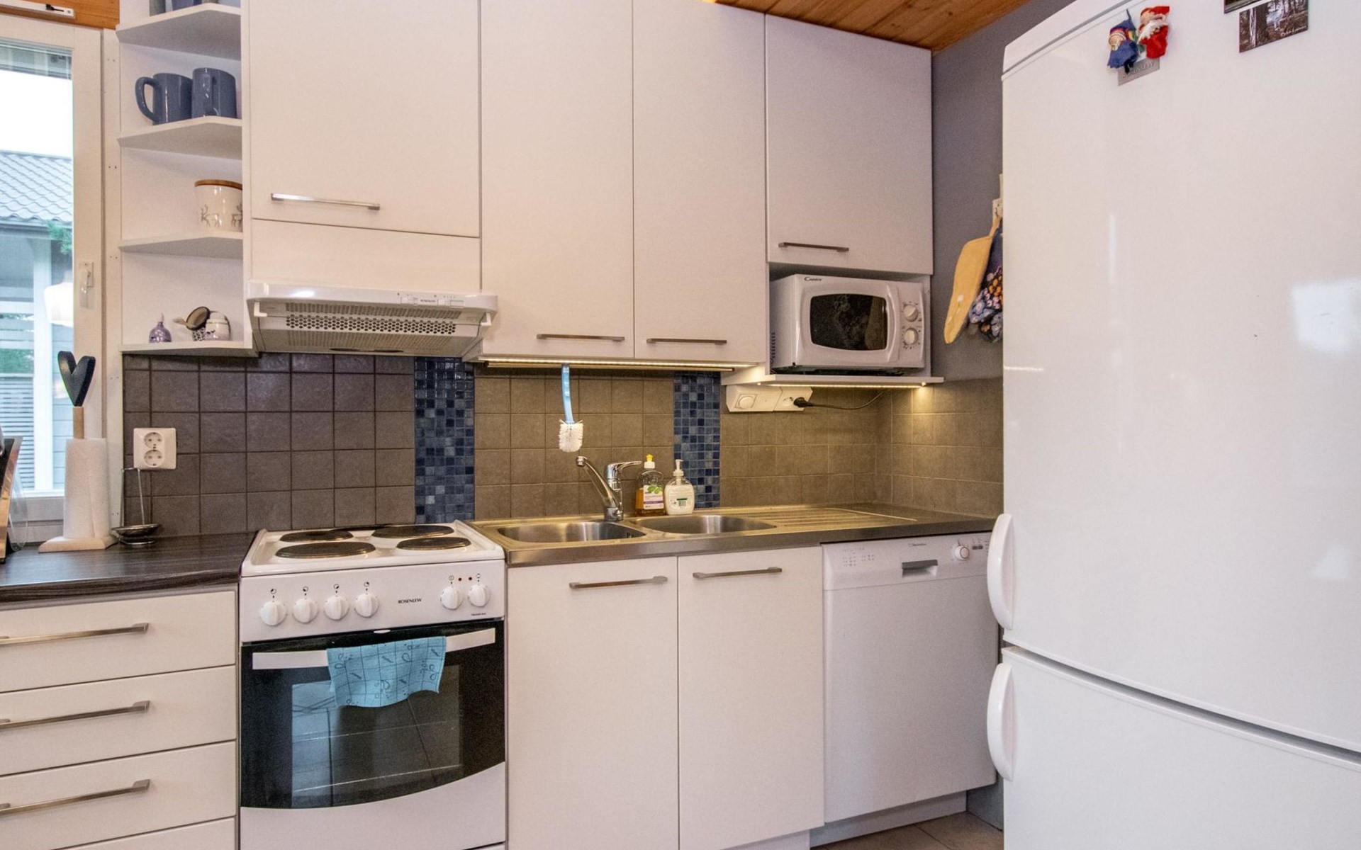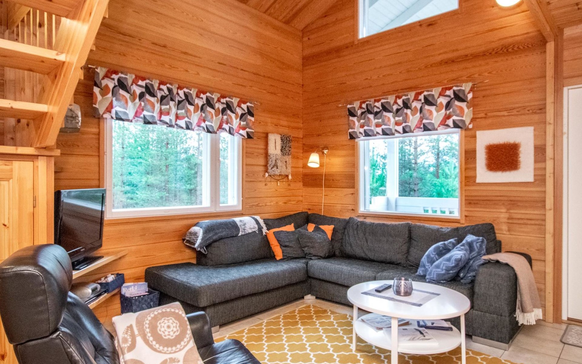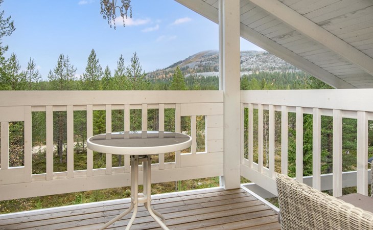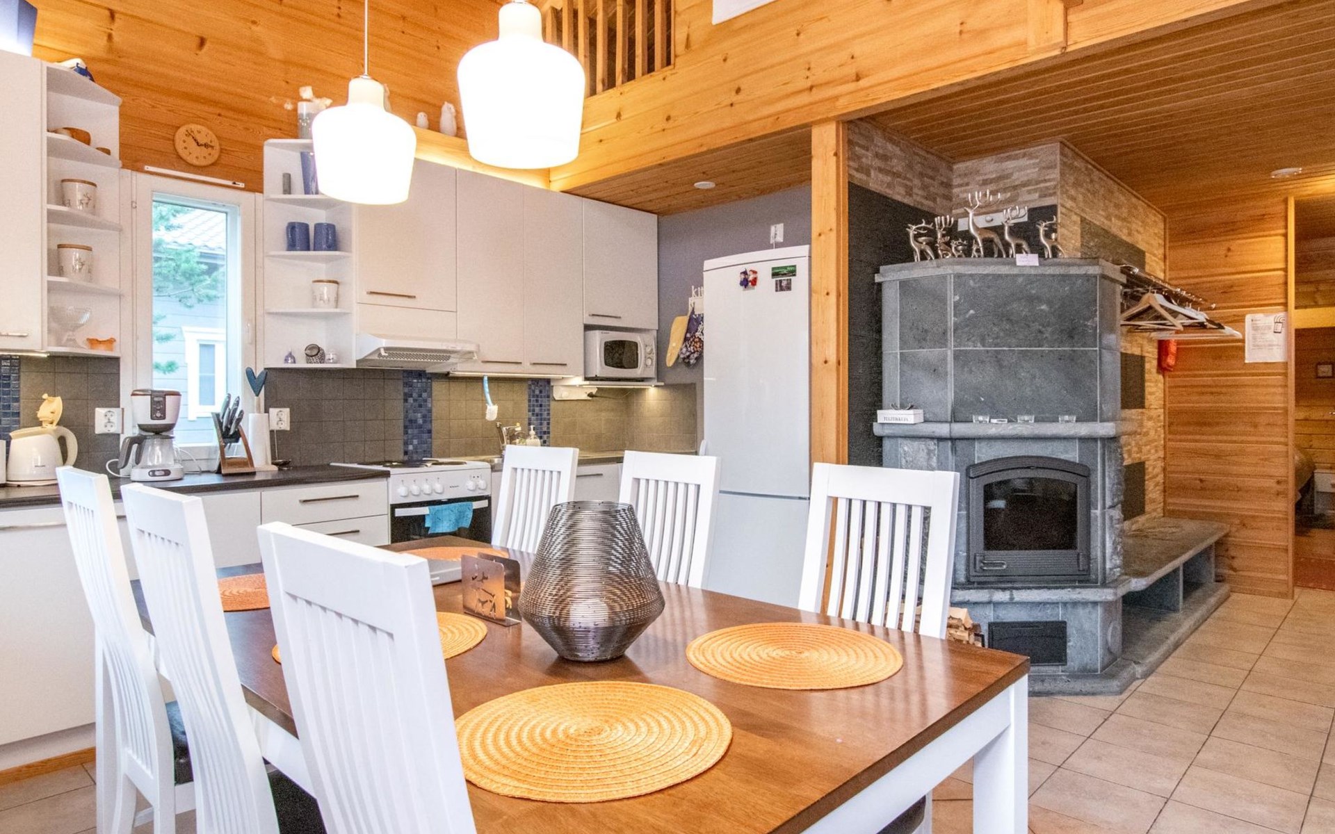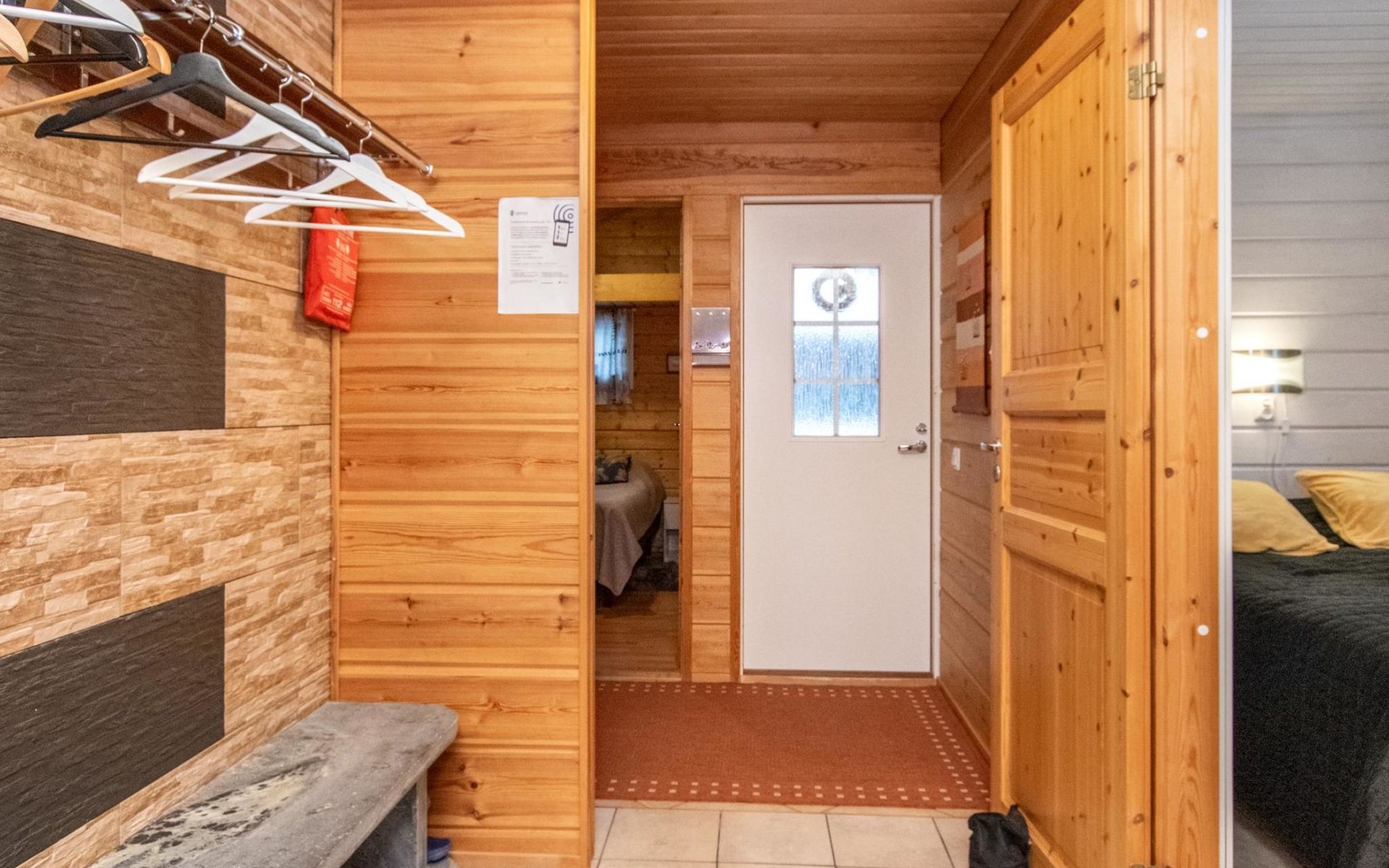 Cabin built in 2012. Downstairs kitchen, living room, bedroom with double bed (140*200cm), bedroom with bed (120*200cm), sauna (wooden stove), washroom, toilet and terrace. Upstairs bed 80*200cm, bed 140*200cm, mattress 80*200cm and toilet. Maintenance room for skies in the warehouse and carport.