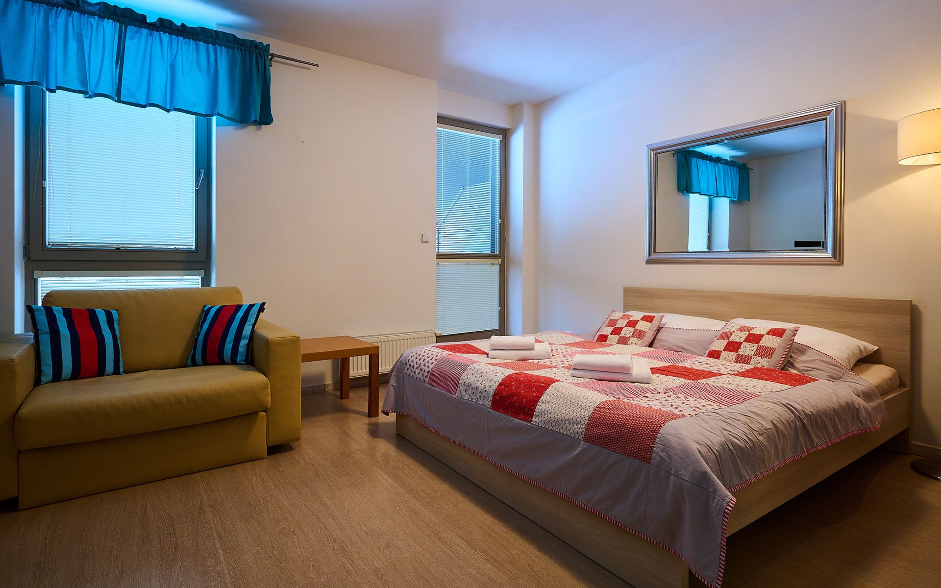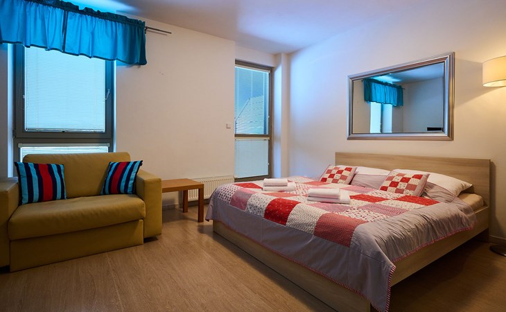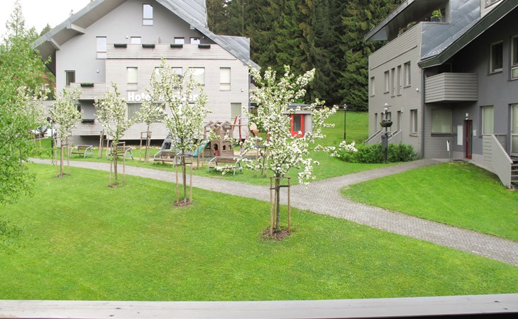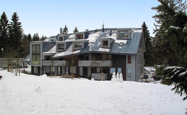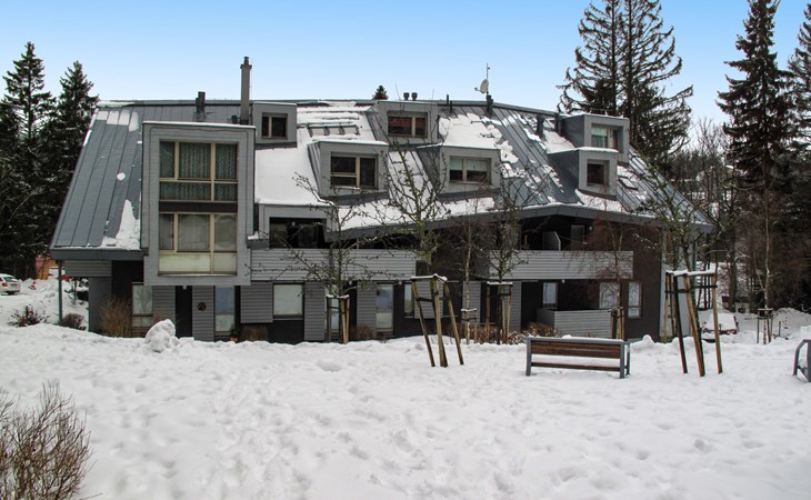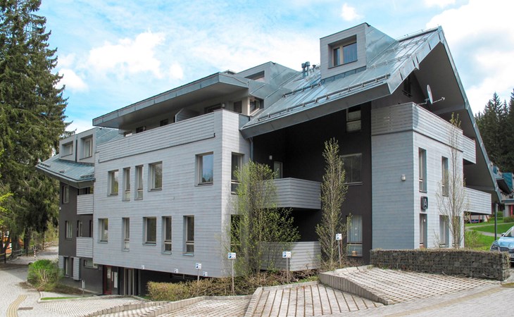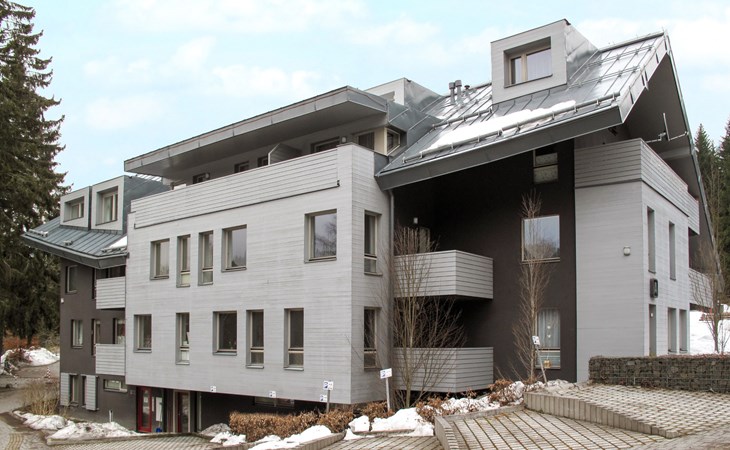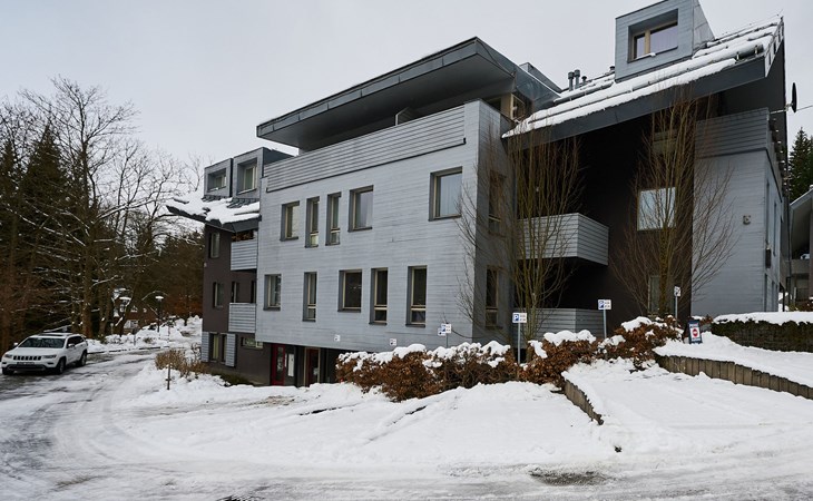 Modern residence 650 m a.s.l., built in 2013. 5 houses in the residence. 500 m from the centre of Harrachov, 28 km from the centre of Jablonec nad Nisou, 50 m from the edge of the forest, 700 m from the skiing area. For shared use: property 200 m2. Children's playground (slide, swing). In the complex: sauna, massage, steam room, hot tub (all extra), storage room for skis. Parking on the premises. Shop 300 m, supermarket 500 m, restaurant 300 m, bus stop "Harrachov, U Motejlků" 500 m, railway station "Harrachov, Mýtiny" 2 km, outdoor swimming pool, indoor swimming pool 700 m. Tennis 2 km, indoor tennis centre 2 km, ski lift 50 m, chair lift, slopes 700 m, ski rental 700 m, ski bus stop 50 m, ski school, children's ski school 700 m. Nearby attractions: Mumlava vodopád 2.5 km, Kořenov 8 km, Jizerka 15 km, Jablonec nad Nisou 29 km, Liberec, Ještěd 40 km. Well-known ski regions can easily be reached: Harrachov 700 m, Příchovice 10 km, Rokytnice nad Jizerou 15 km. Please note: Loading and unloading of baggage is possible at the holiday house.