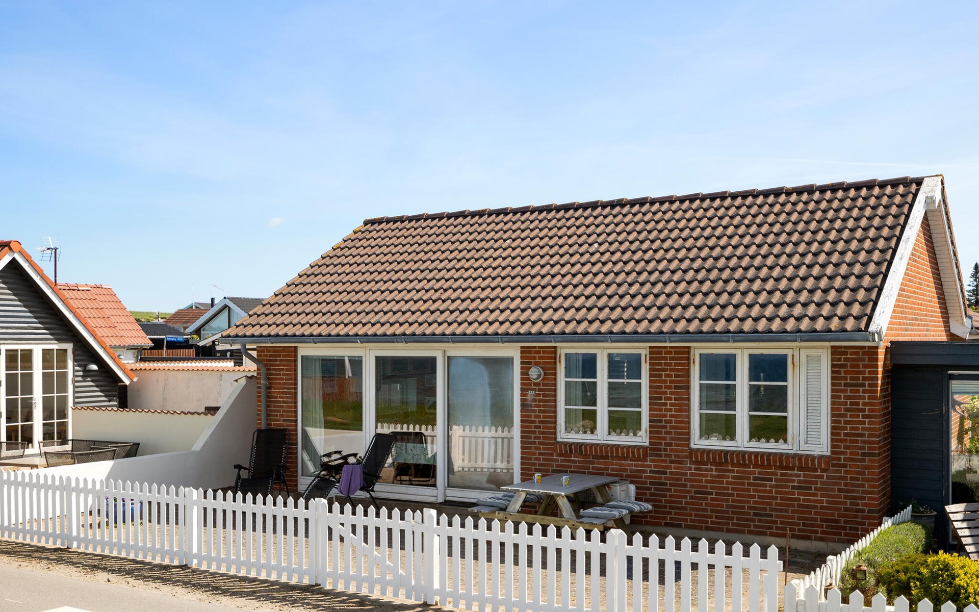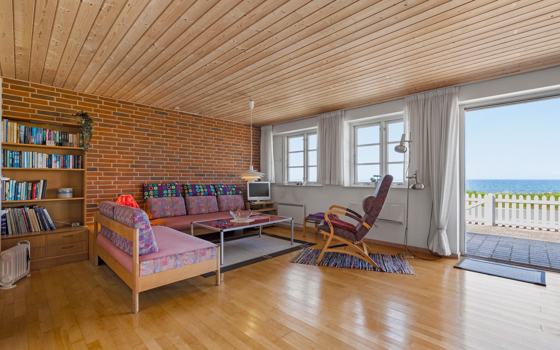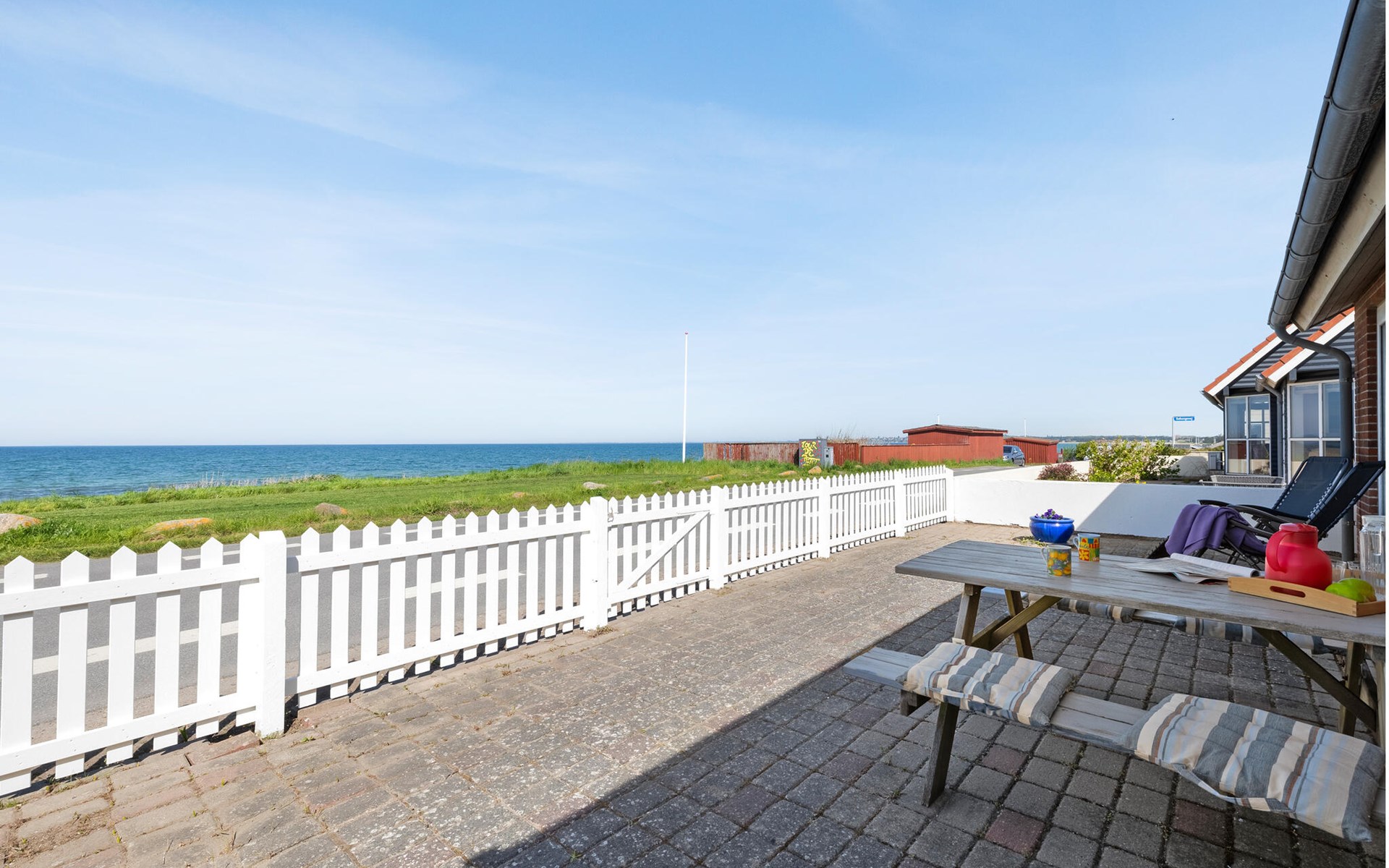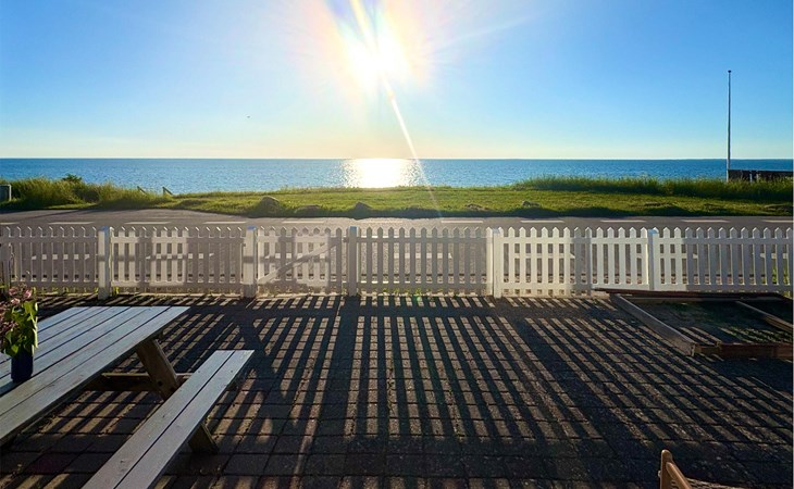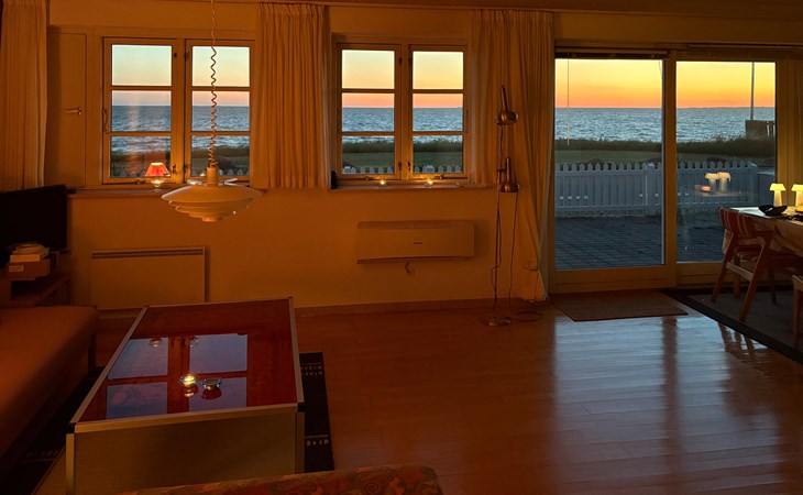 In this charming holiday home, you have a 180-degree view of the sea just a few steps away. Look forward to delicious meals at the dining table with a view of the glittering blue sea and cosy game nights on the sofa.
