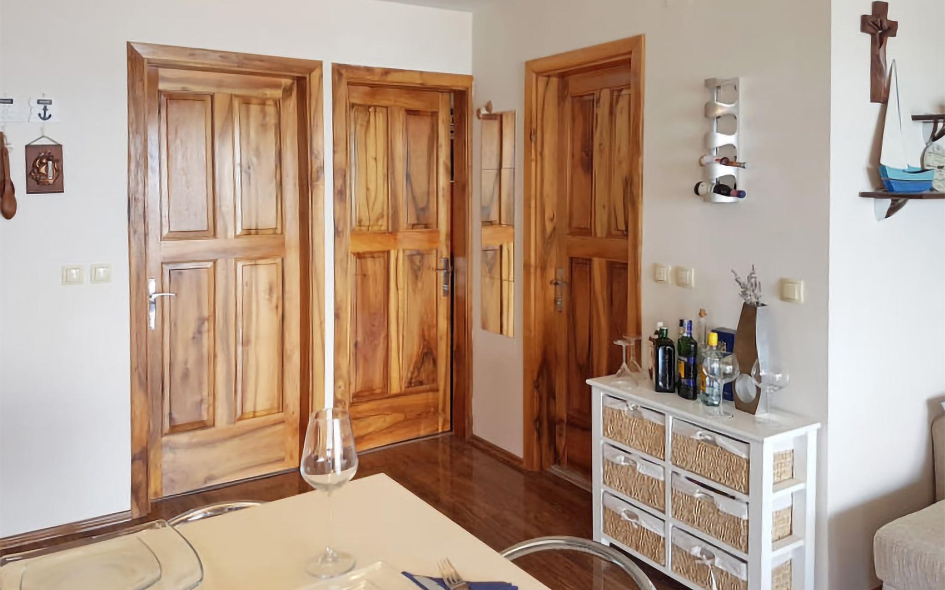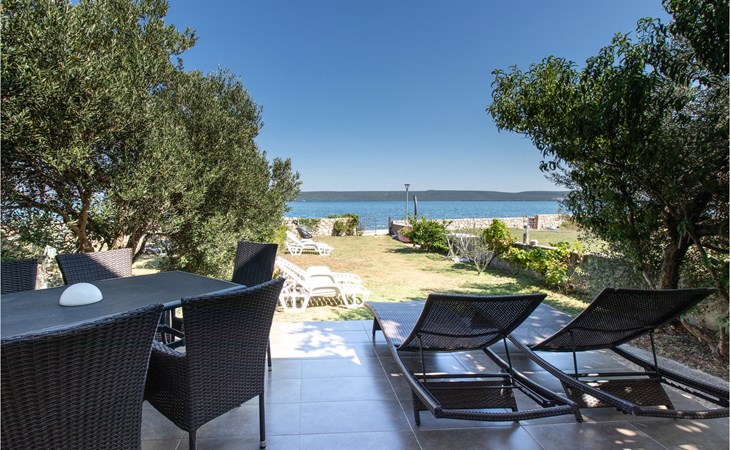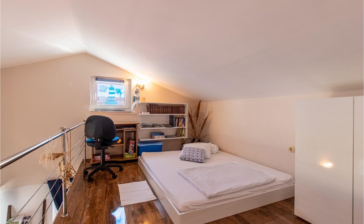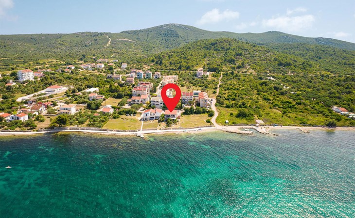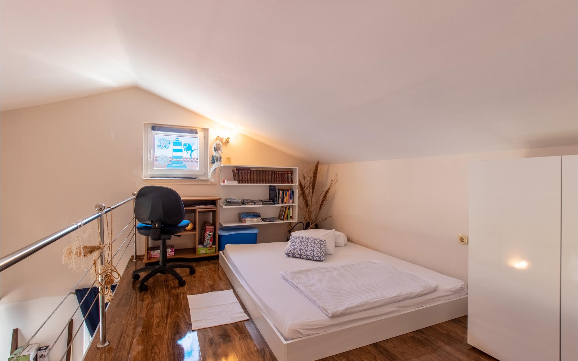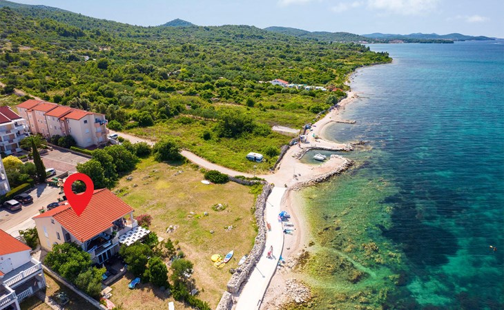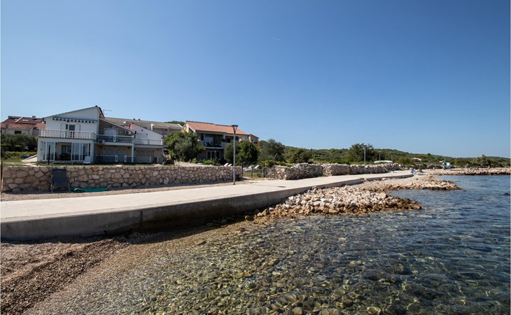Spend a wonderful holiday right on the beach on the island of Paman, also known as the "Gateway to the Kornati Islands". With its exceptional location by the sea, this holiday apartment stands out from the crowd. You can access the pebble beach directly from the garden, where you can enjoy the beautiful sunrise. The sea is crystal clear and suitable for swimming and diving. This holiday apartment is located on the first floor, is air-conditioned and consists of a small kitchenette with living room, two bedrooms, bathroom, gallery and terrace with fantastic views of the sea, the surroundings of Zadar and Velebit, which is breathtaking. Here you can start the day with a cup of coffee or end it with a glass of wine.