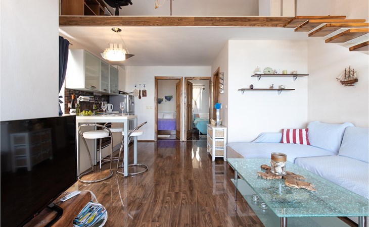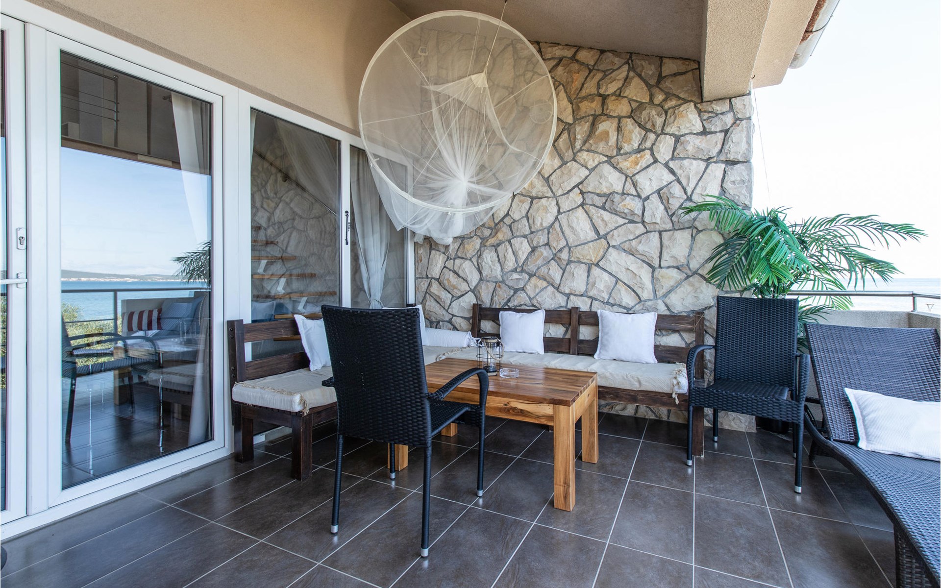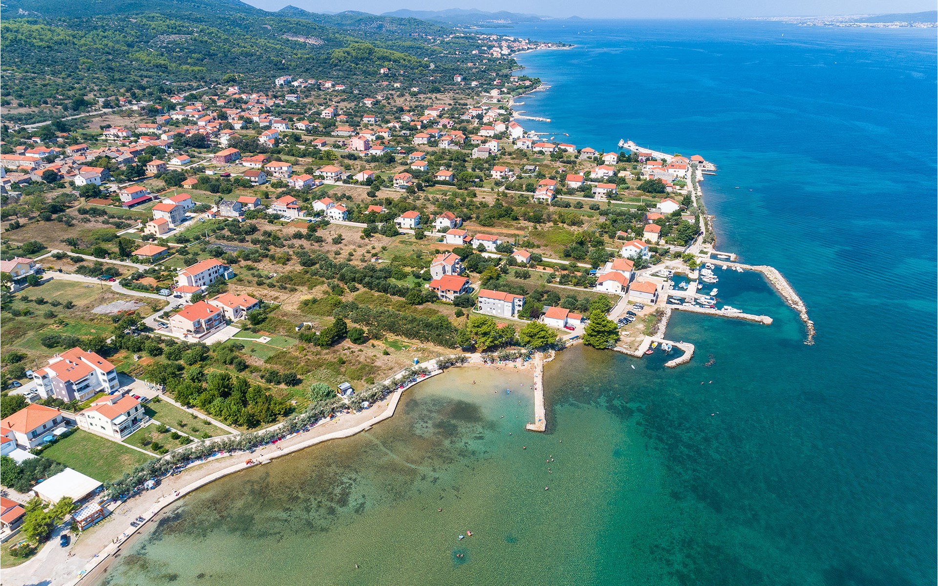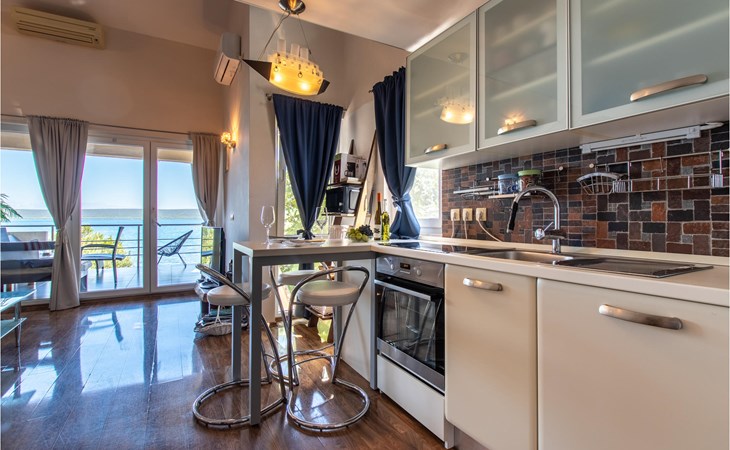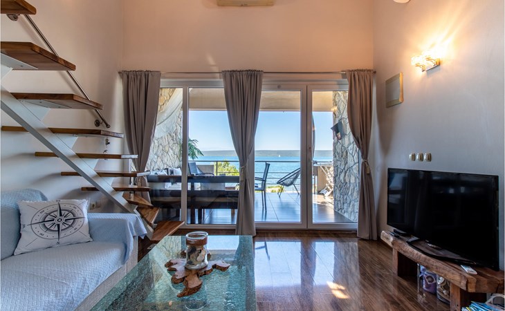Spend a wonderful holiday right on the beach on the island of Paman, also known as the "Gateway to the Kornati Islands". With its exceptional location by the sea, this holiday apartment stands out from the crowd. You can access the pebble beach directly from the garden, where you can enjoy the beautiful sunrise. The sea is crystal clear and suitable for swimming and diving. This holiday apartment is located on the first floor, is air-conditioned and consists of a small kitchenette with living room, two bedrooms, bathroom, gallery and terrace with fantastic views of the sea, the surroundings of Zadar and Velebit, which is breathtaking. Here you can start the day with a cup of coffee or end it with a glass of wine.