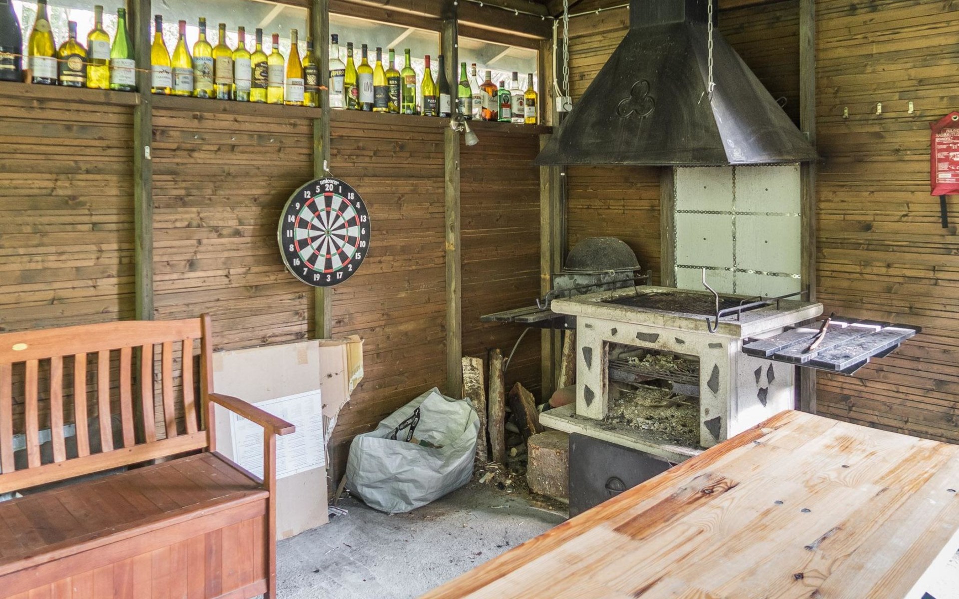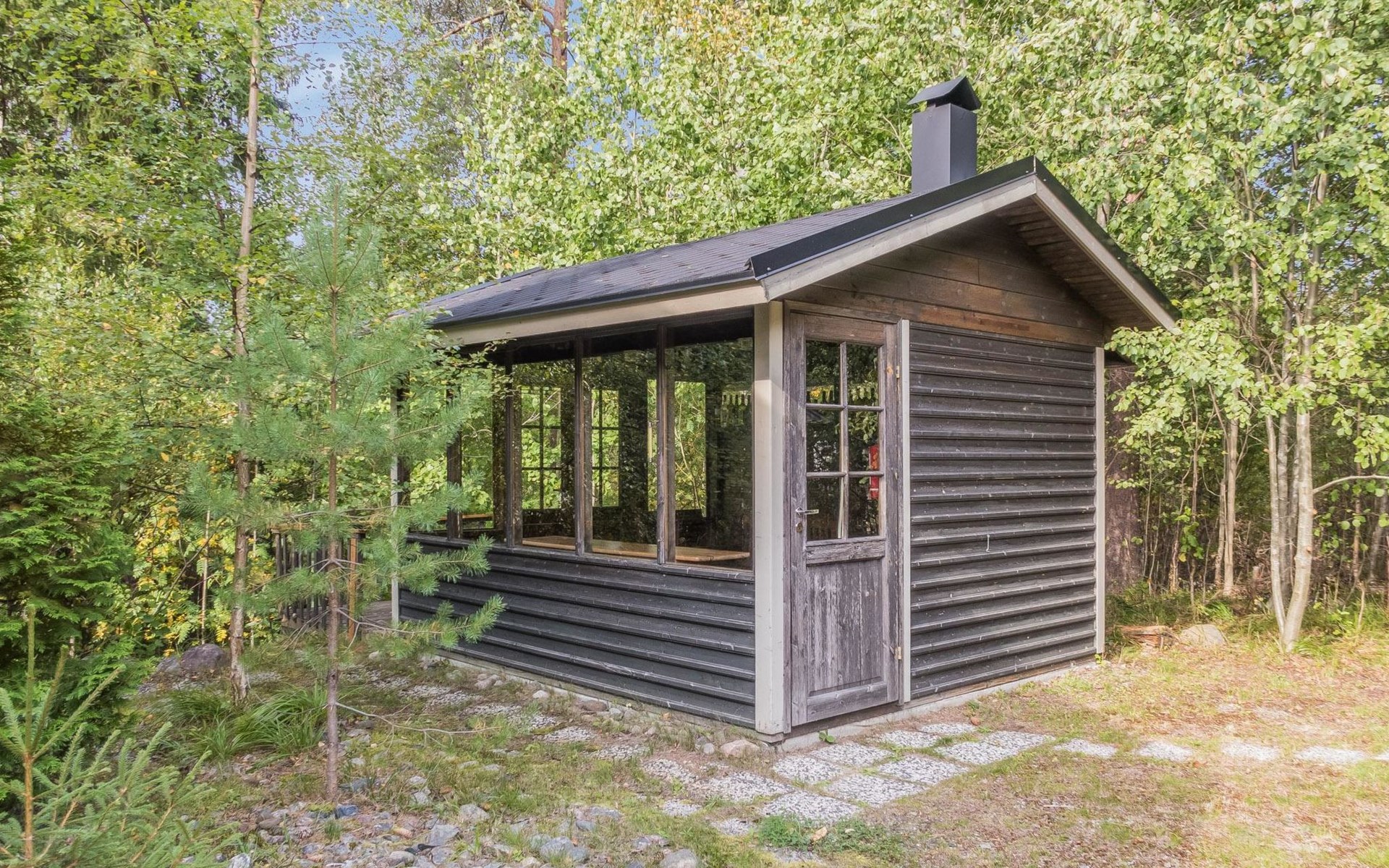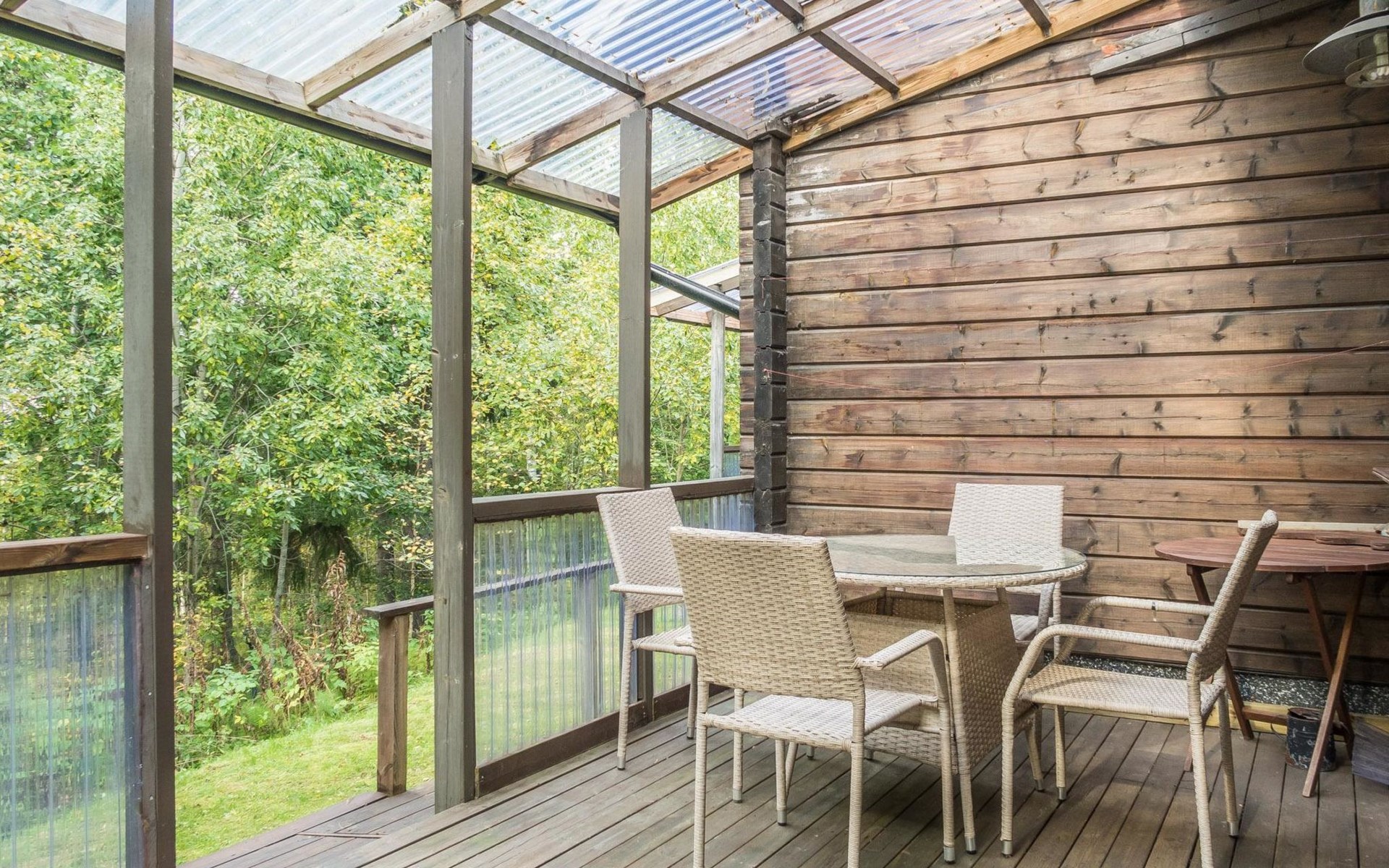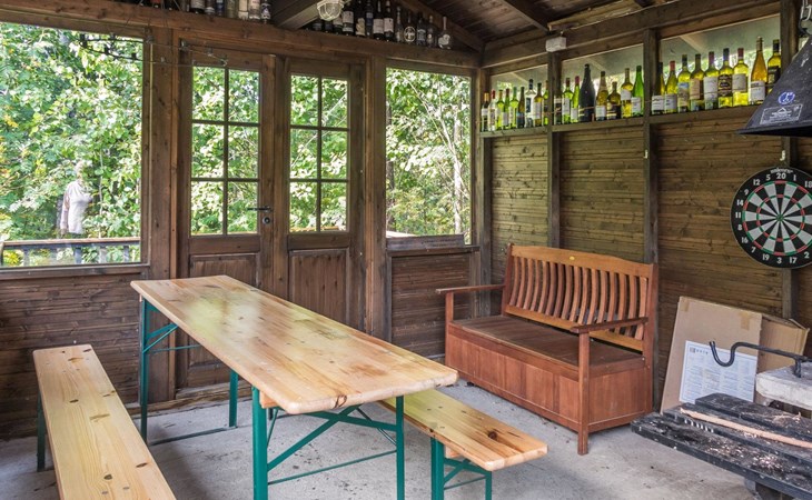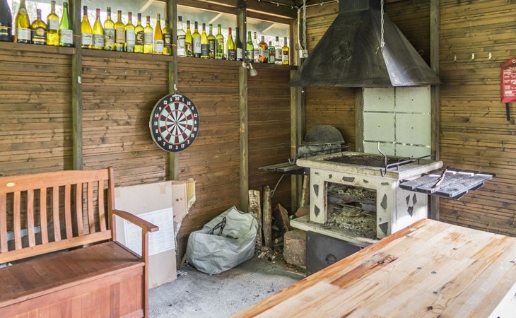 Guests can enjoy the perfect forest view from the back terrace and use shared fireplace for barbeque.