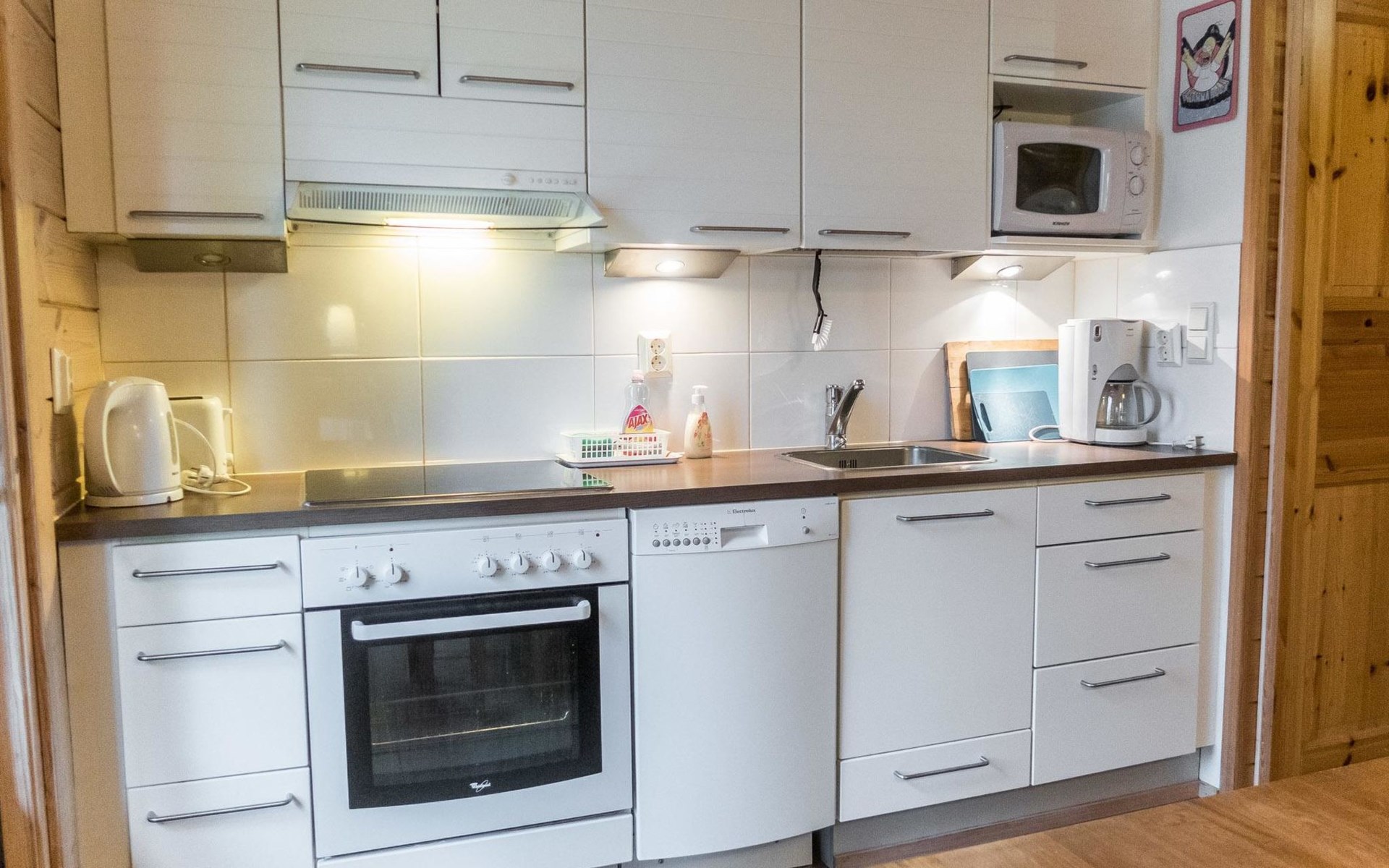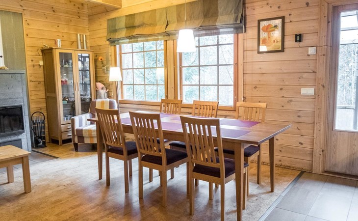 Comfortable and cozy apartment Villa Koira welcomes you to spend your winter or summer holidays in Finland. The house is fully equipped with all necessary appliances, satellite TV with Russian channels, perfectly designed kitchen with a dishwasher, big living room with chimney and a bathroom with shower and sauna. There are 3 bedrooms which can easily accommodate 6 guests on first and second floor of the house.