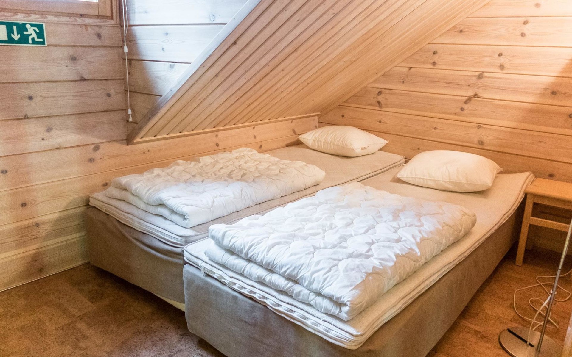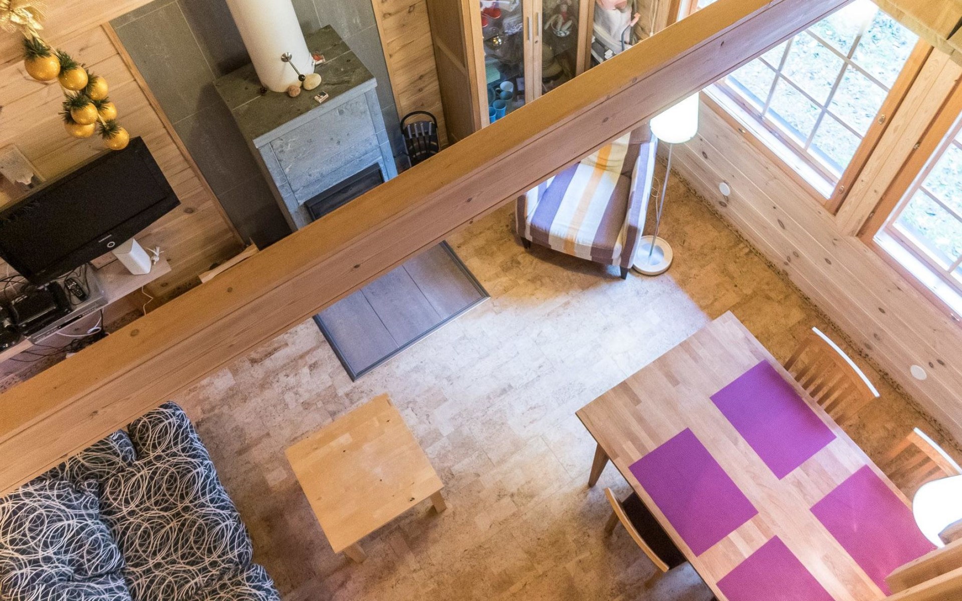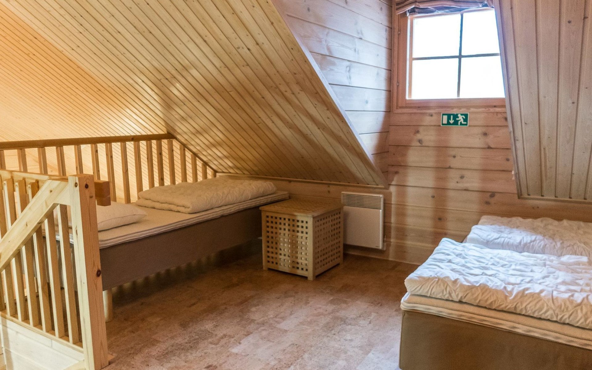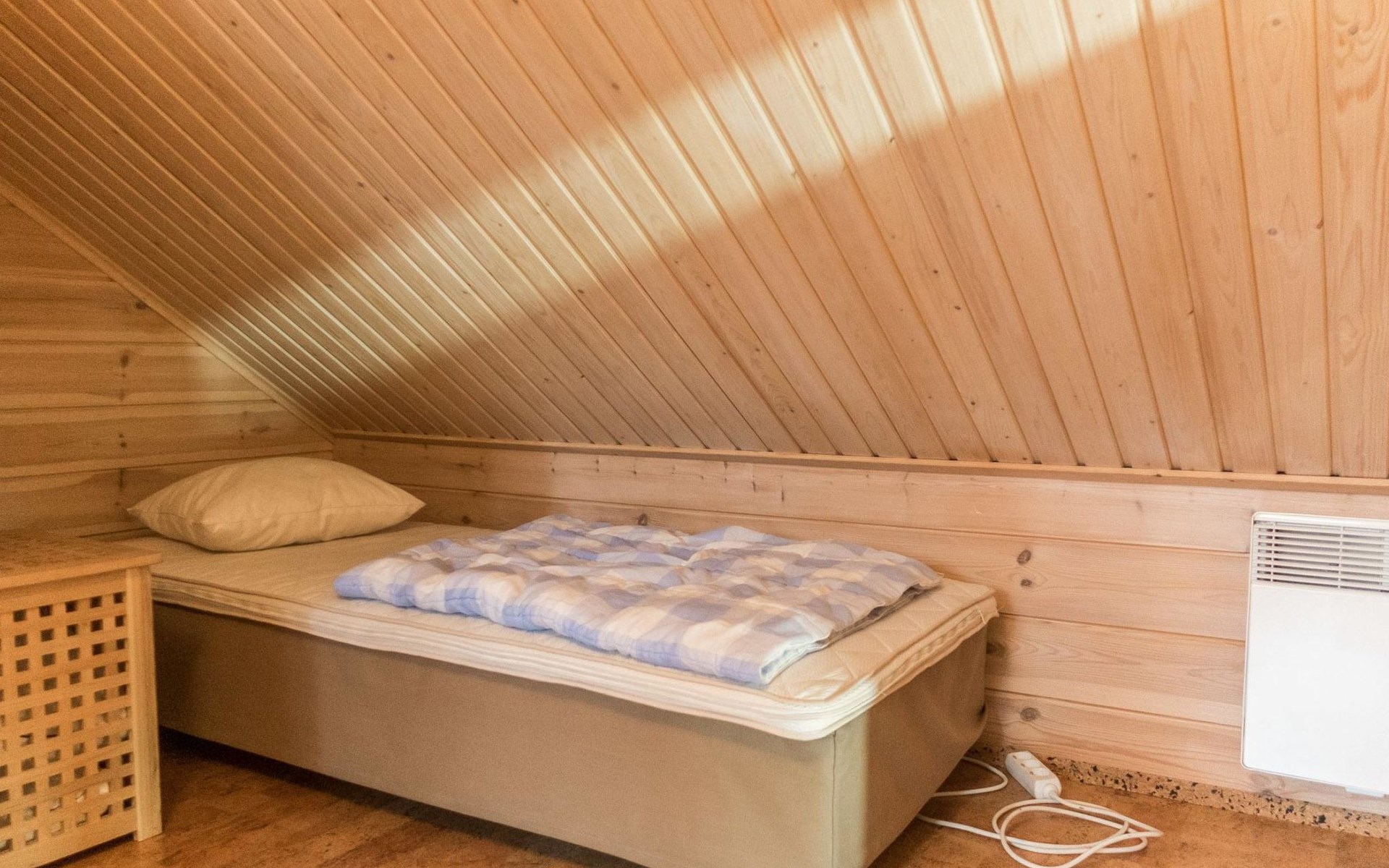 Living area 85 m², including loft (15 m²). Kitchen/livingroom with dinning table for 6-8 persons. Two bedrooms, 1st with twin bed (get separate if needed), 2nd with 120 cm bed for 1-2 persons. Sauna (electric), shower/wc. Loft with bed for 4 persons + wc. Terrace. Wifi / internet access.