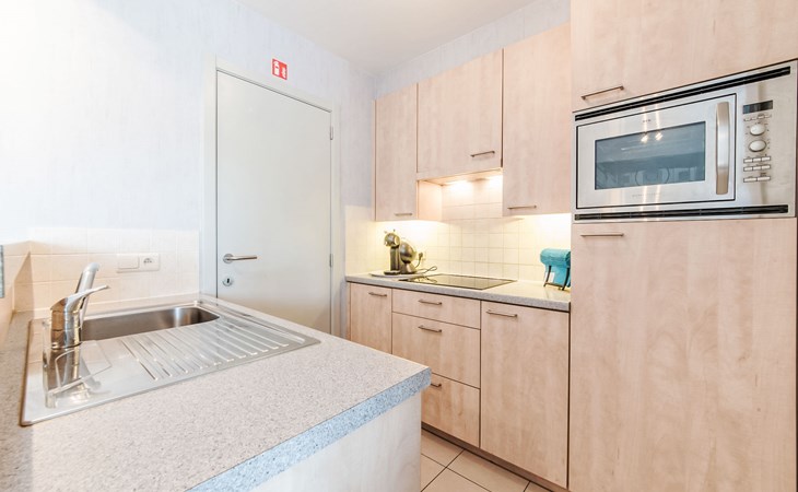 Bredene: Residence "Queen Mary". In the centre of Bredene, 150 m from the sea, 100 m from the beach, road to cross. In the house: lift. Public parking 50 m extra. Shop 50 m, supermarket, restaurant, bakery, bicycle rental, tram 100 m, railway station "Oostende" 4 km, indoor swimming pool 4 km. Golf course (18 hole) 9 km, surf school 200 m, tennis 2 km, minigolf 100 m. Nearby attractions: Fort Napoleon 3 km, De Haan 5 km, Brugge 30 km, Sea Life Blankenberge 14 km, familiepark De Sierk 3 km, Plopsaland De Panne 43 km. Hiking paths: Landerijenpad 12 km, Spuikompad 10 km, Duinpanpad 6 km. The owner does not accept any youth groups. The keys‘ handover takes place by the agency Interhome in Bredene. Group of youngsters not allowed.