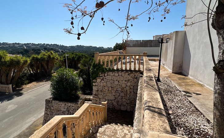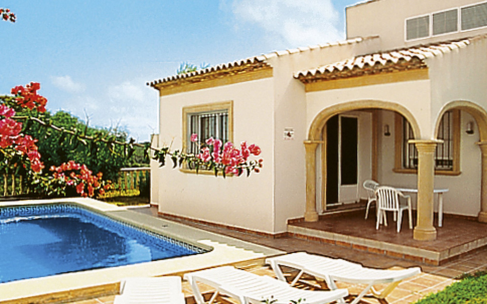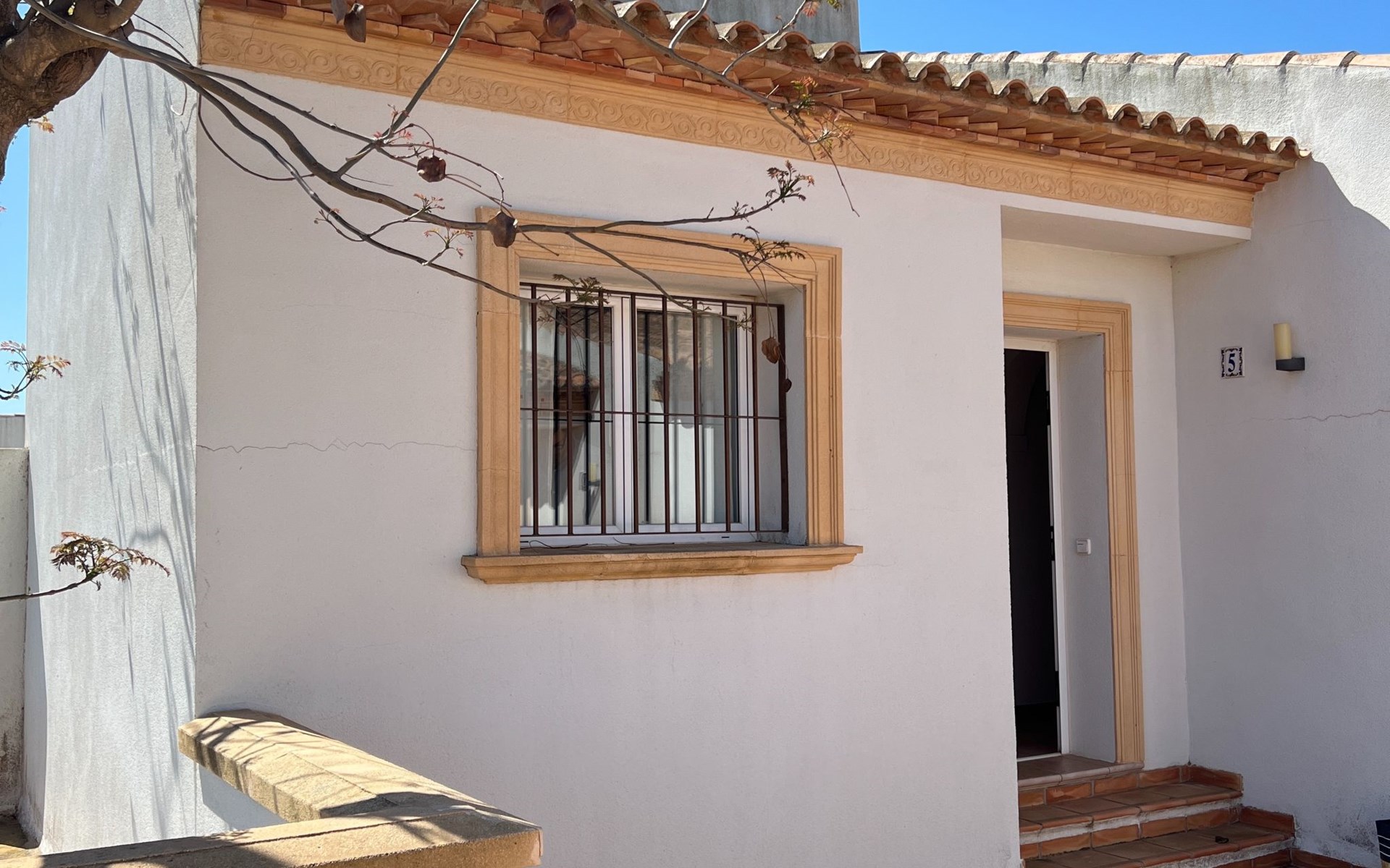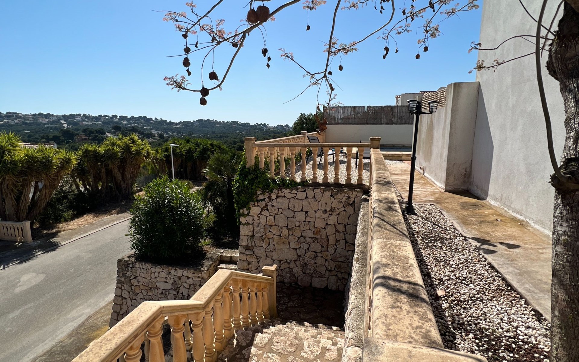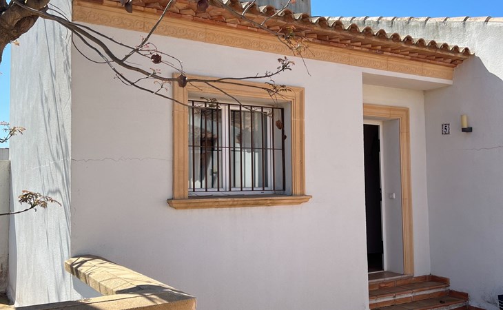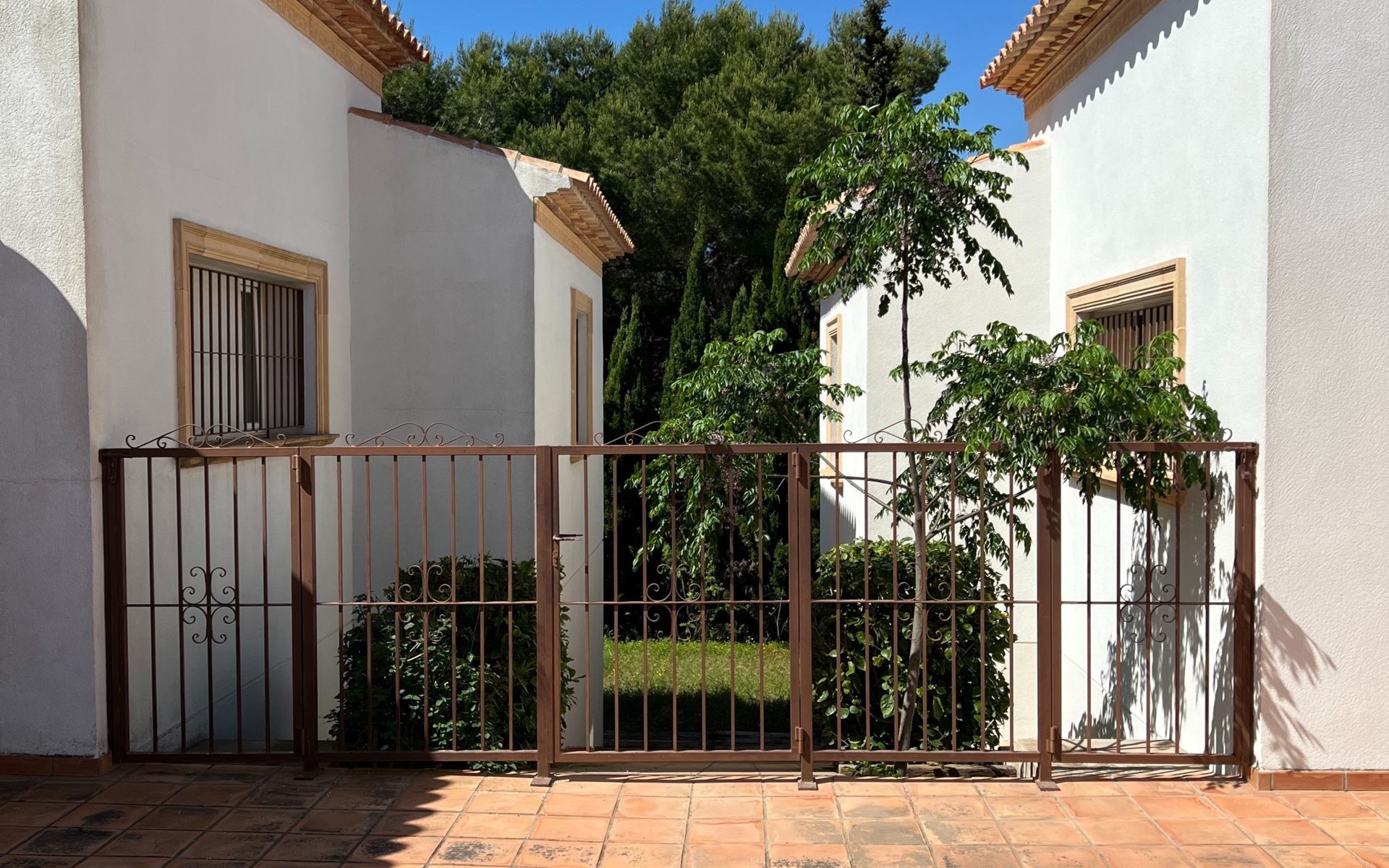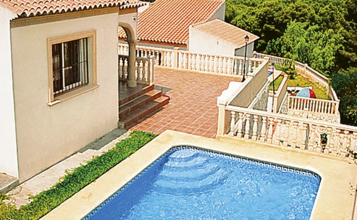 House. 24 houses in the residence. In the district of Monte Javea 5 km from the centre of Jávea-Arenal, on a slope, 3 km from the sea. Private: property (fenced) with wildlife garden and trees, swimming pool (8 x 4 m, depth 120 - 220 cm, seasonal availability: 01.Jan. - 31.Dec.). Public parking on the road. Shop 2.5 km, restaurant 1 km, bus stop "Calablanca" 3.6 km, sandy beach "Arenal" 5 km pebble beach "Granadella" 3 km. Tennis 1 km.