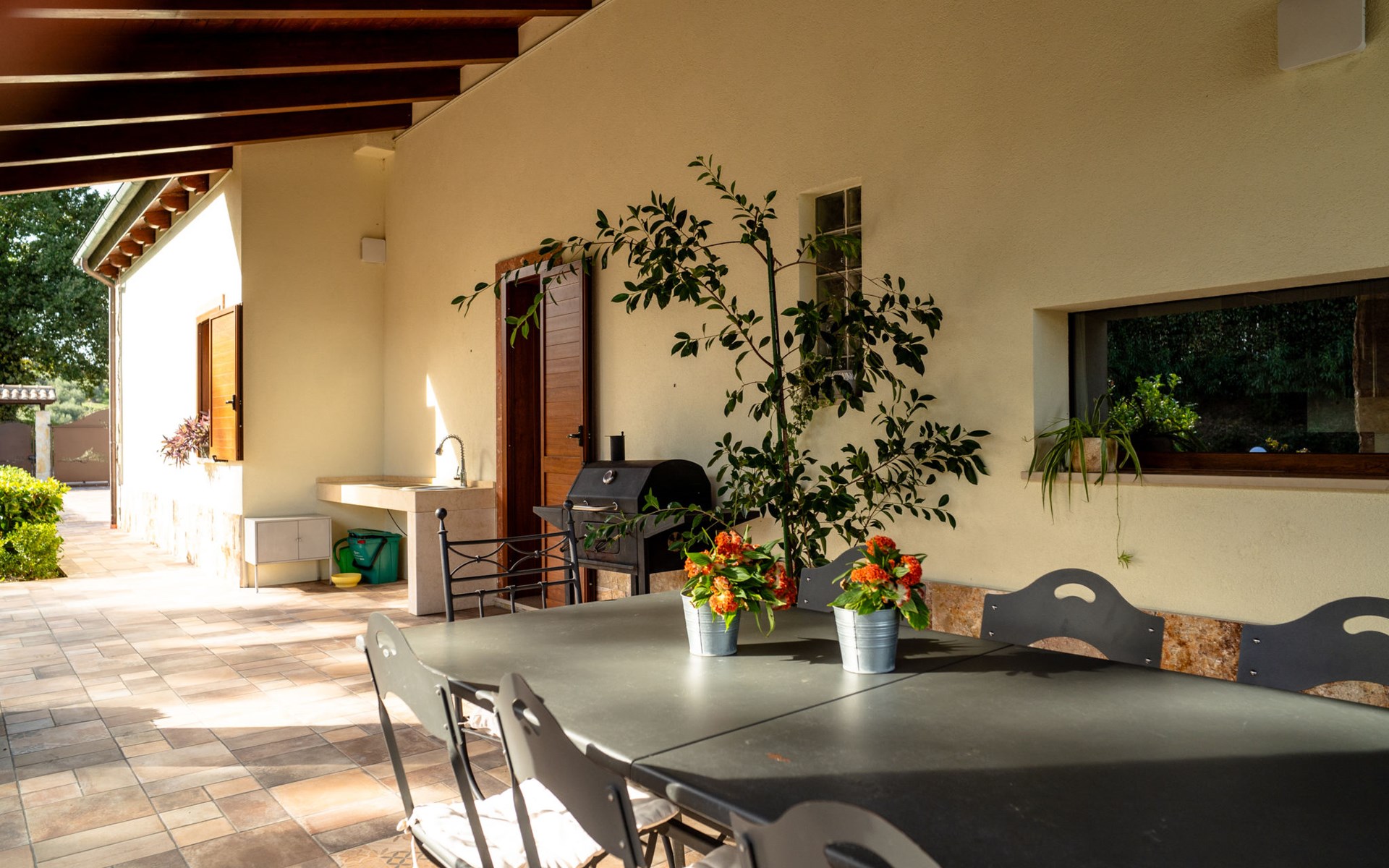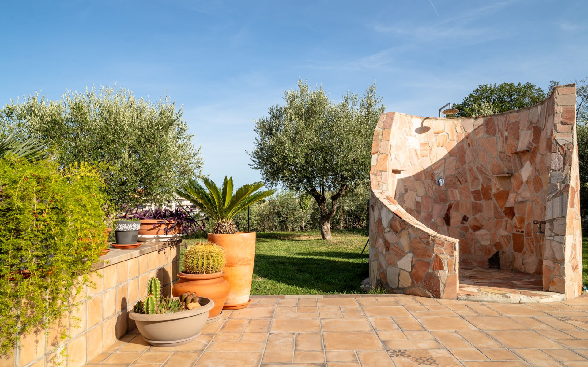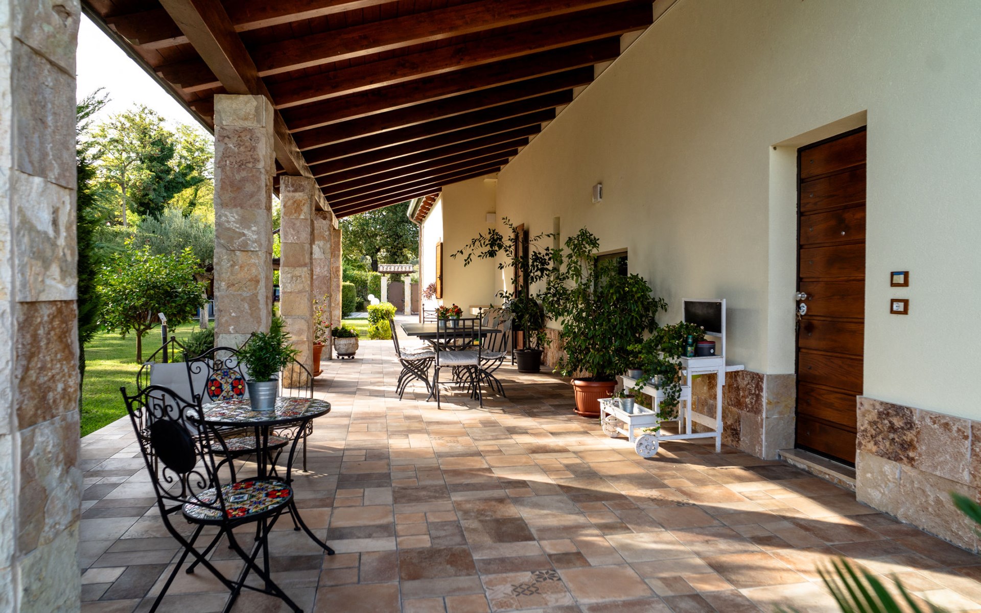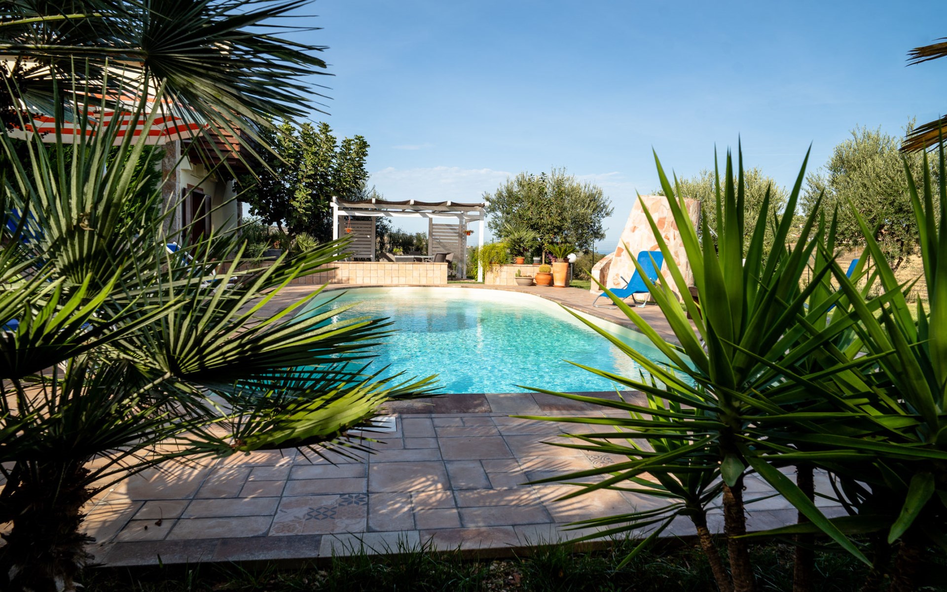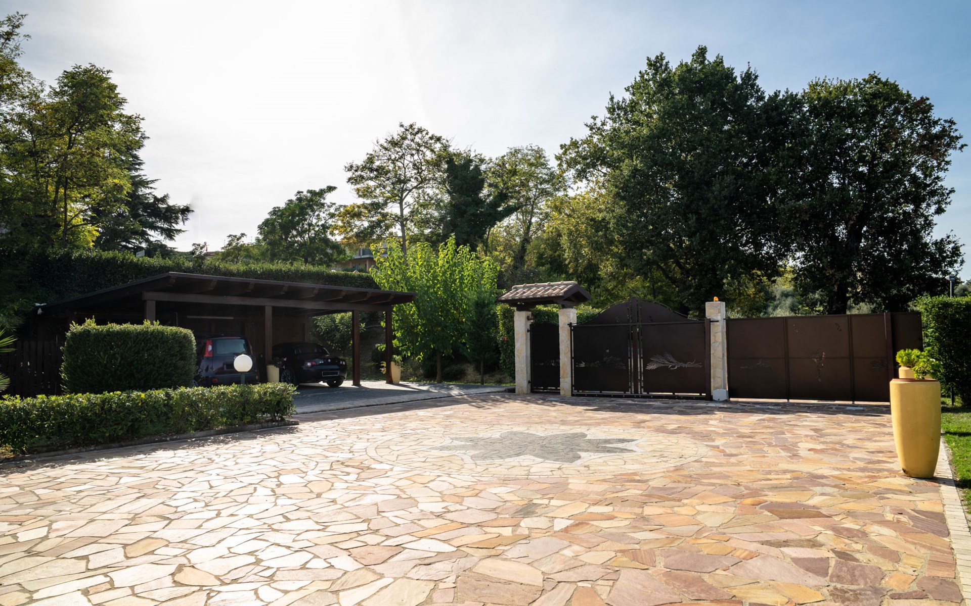 2-family house "Rêve d'Or", 300 m a.s.l.. Property composed of main house and outbuilding, in the district of Madonna della Pace 2 km from the centre of Città Sant' Angelo, 10 km from the centre of Pescara, 6 km from the centre of Montesilvano, in an elevated position on a slope, 6 km from the sea, on a main road. For shared use: property 3'000 m2 (fenced), well-kept garden lawn and plants, swimming pool (10 x 5 m, depth 120 - 220 cm, seasonal availability: 01.May. - 15.Oct.) with salt water. Outdoor shower, pergola, terrace, garden furniture, barbecue. In the house: washing machine (for shared use, extra). Roofed, parking on the premises. E-charging station. Shop 100 m, bus stop 300 m, railway station "Pescara" 12 km, sandy beach 6 km. Nearby attractions: Città Sant'Angelo Borgo tra i più belli, Collegiata di San Michele 2 km. Please note: the owner lives in the same residence. The owner has a dog. Motorway 10 km from the property. Main road 20 m from the property.
