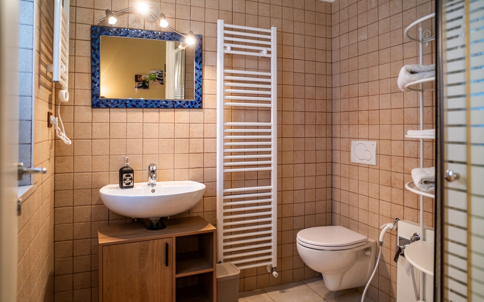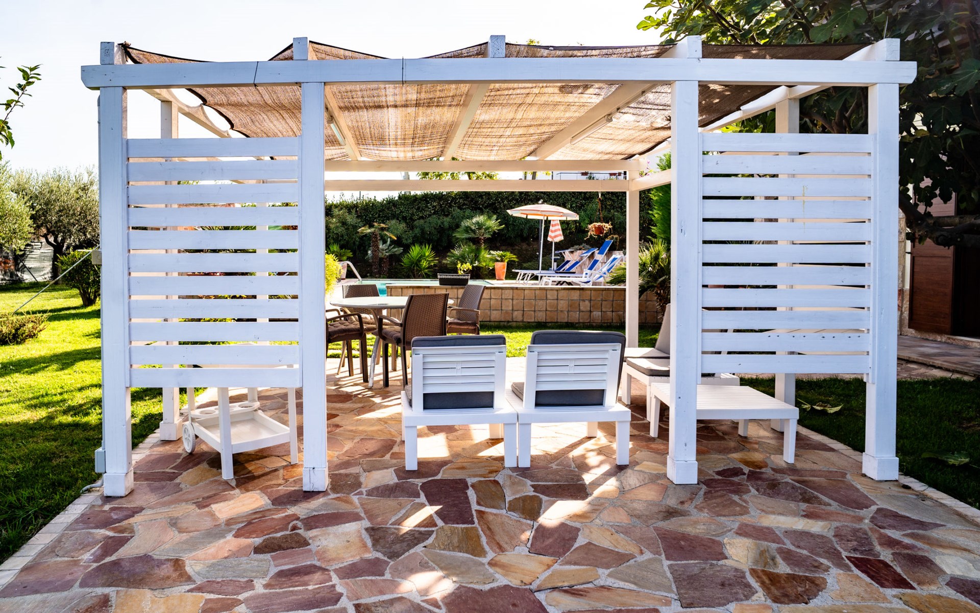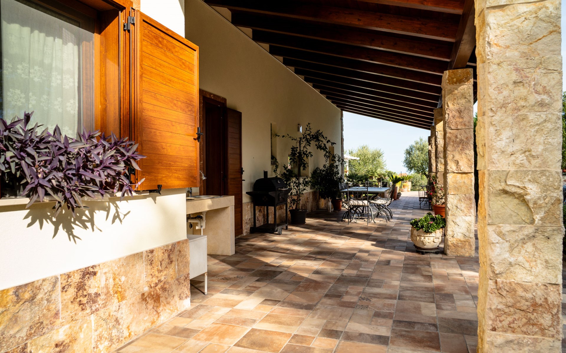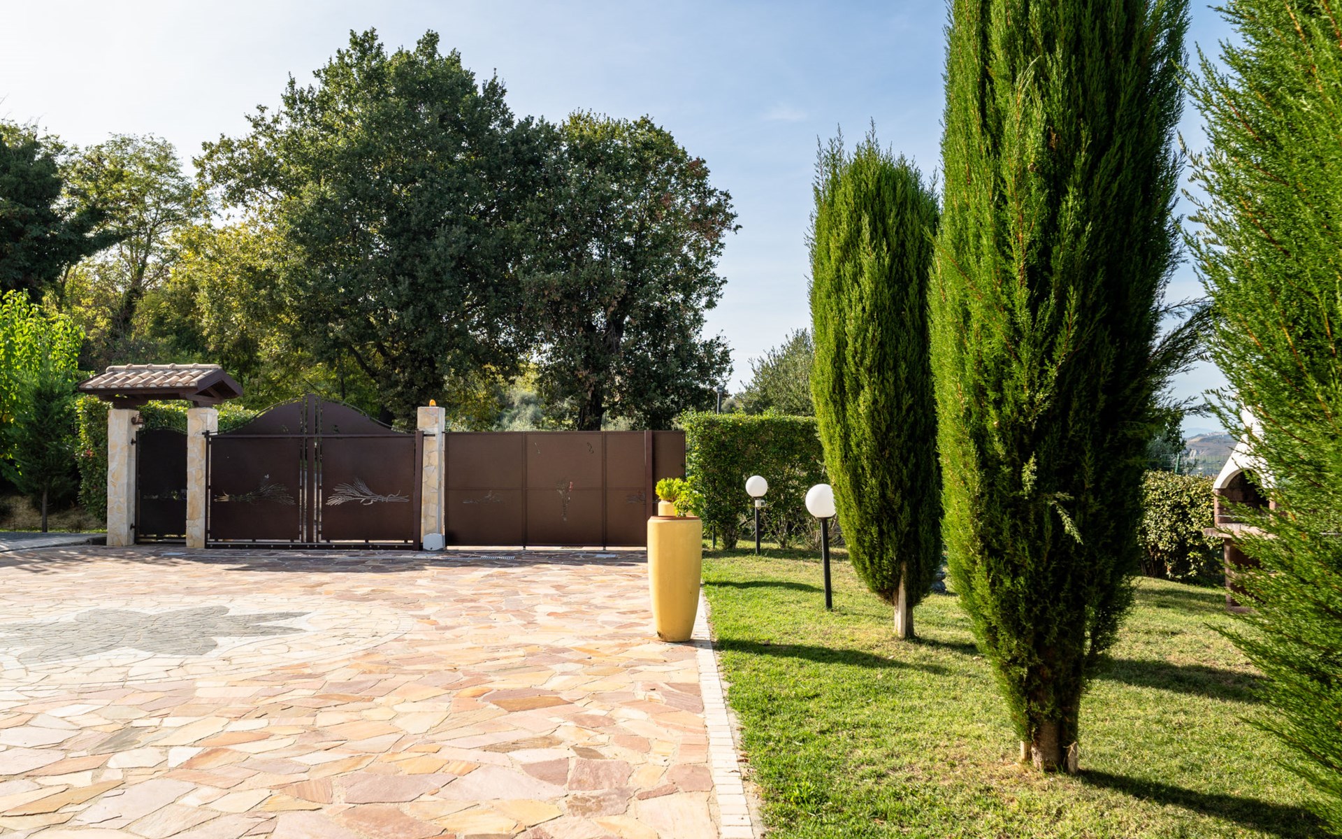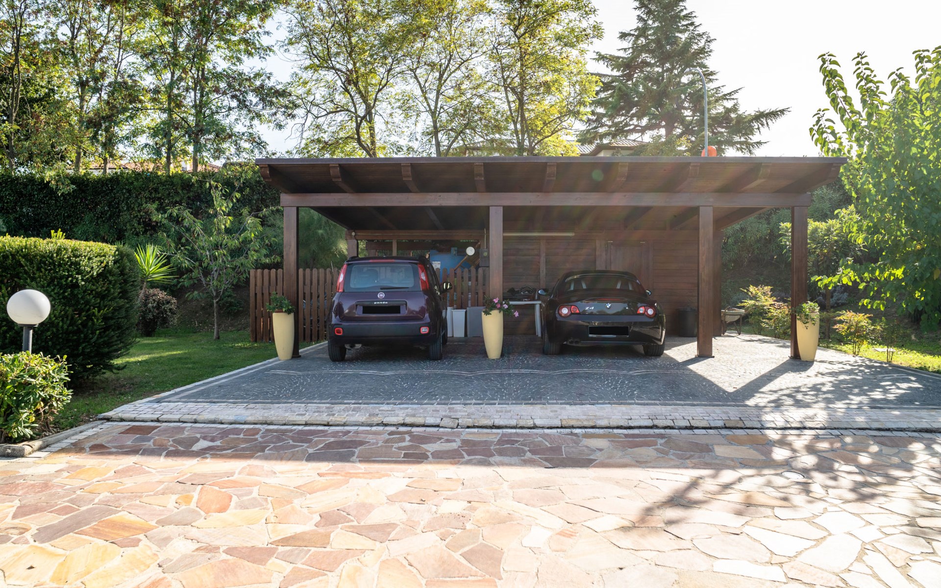 2-family house "Rêve d'Or", 300 m a.s.l.. Property composed of main house and outbuilding, in the district of Madonna della Pace 2 km from the centre of Città Sant' Angelo, 10 km from the centre of Pescara, 6 km from the centre of Montesilvano, in an elevated position on a slope, 6 km from the sea, on a main road. For shared use: property 3'000 m2 (fenced), well-kept garden lawn and plants, swimming pool (10 x 5 m, depth 120 - 220 cm, seasonal availability: 01.May. - 15.Oct.) with salt water. Outdoor shower, pergola, terrace, garden furniture, barbecue. In the house: washing machine (for shared use, extra). Roofed, parking on the premises. E-charging station. Shop 100 m, bus stop 300 m, railway station "Pescara" 12 km, sandy beach 6 km. Nearby attractions: Città Sant'Angelo Borgo tra i più belli, Collegiata di San Michele 2 km. Please note: the owner lives in the same residence. The owner has a dog. Motorway 10 km from the property. Main road 20 m from the property.