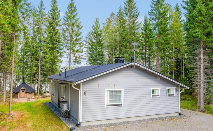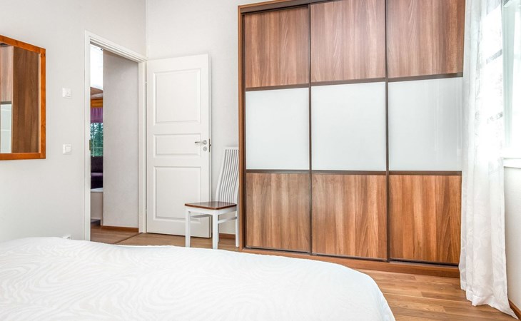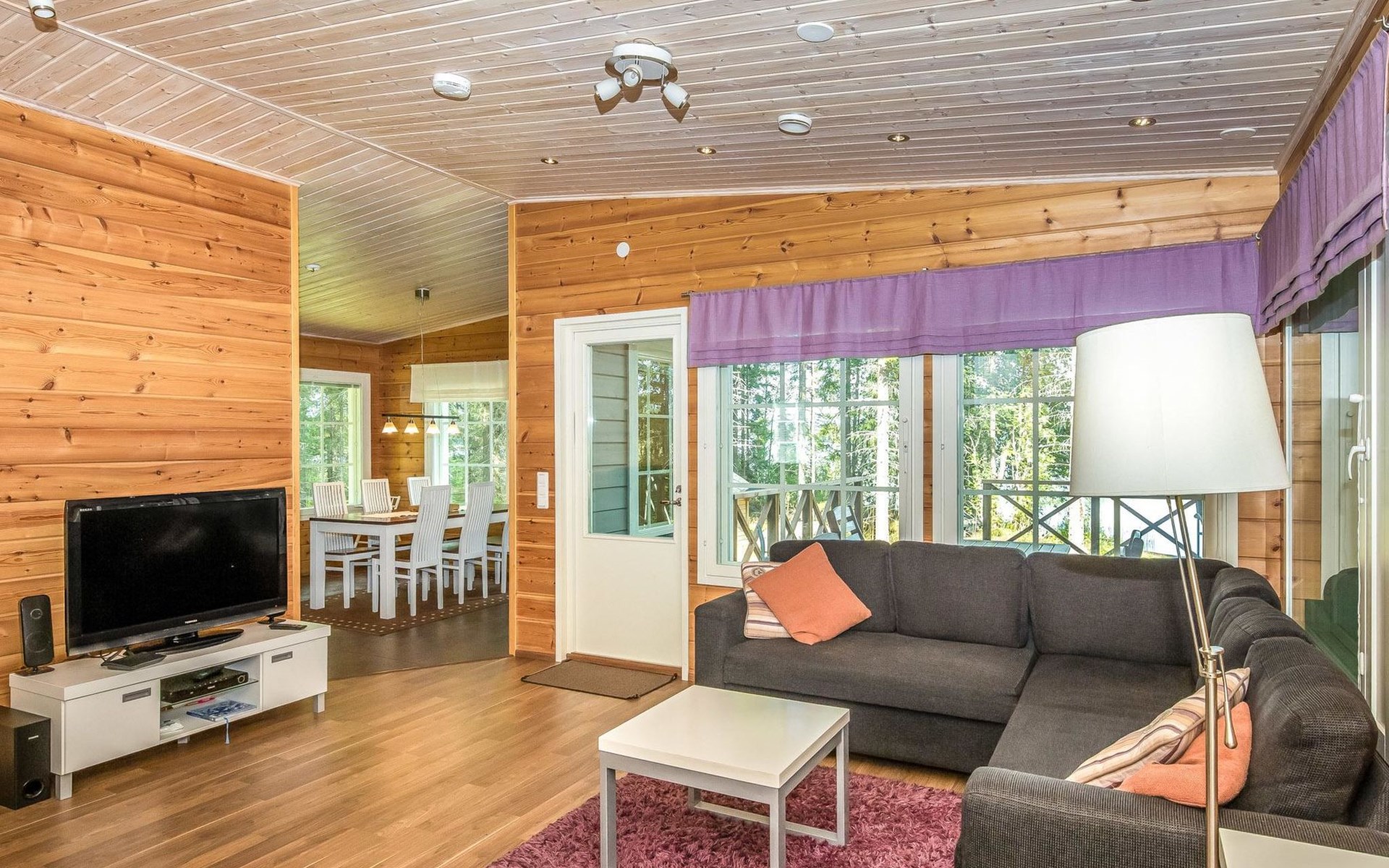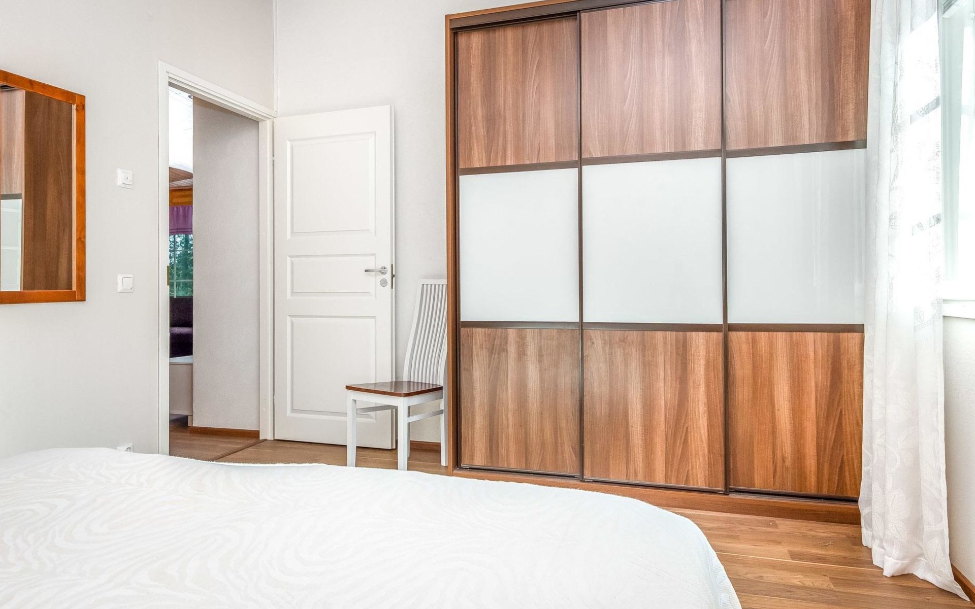 Wooden cabin 2011, living room/kitchen with convertible sofa for 2, bedroom (14 m²) two beds, bedroom (10 m²) two beds, washroom, sauna, separate WC.