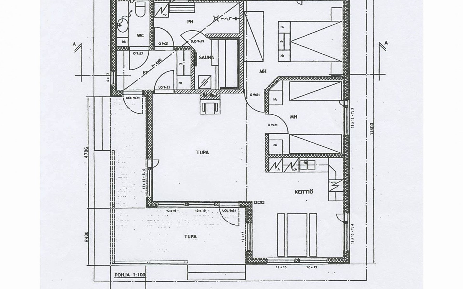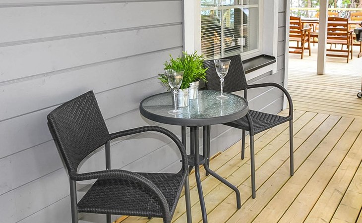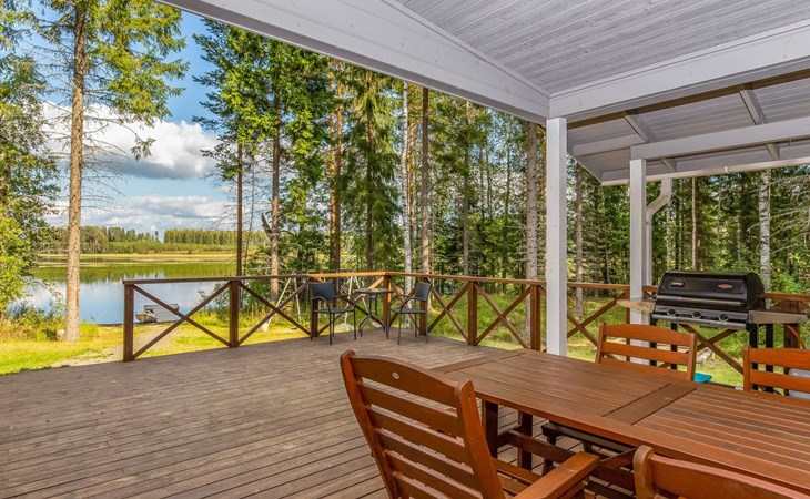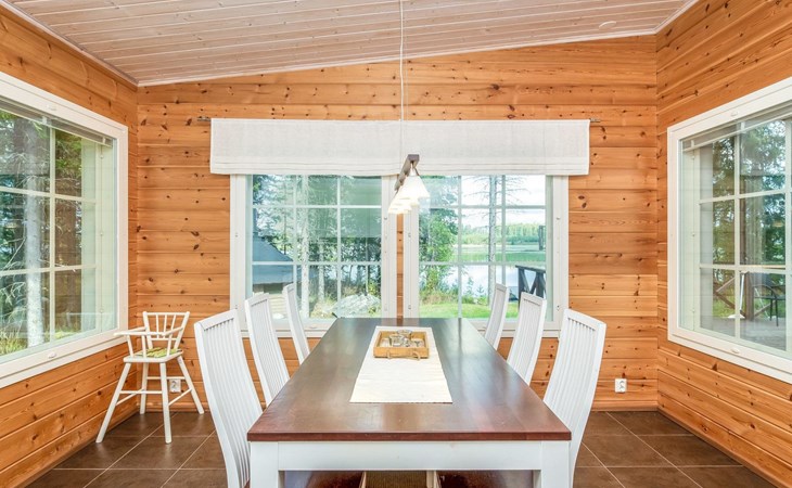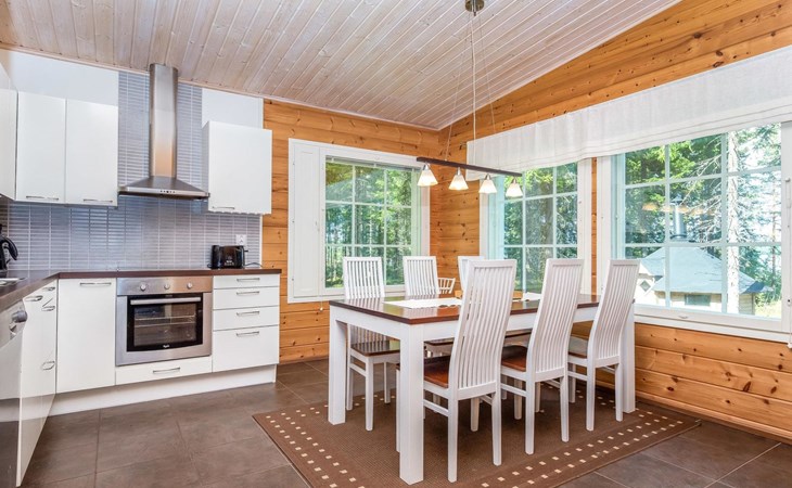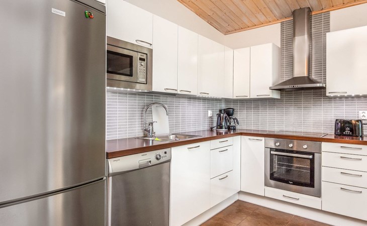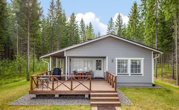 Wooden cabin 2011, living room/kitchen with convertible sofa for 2, bedroom (14 m²) two beds, bedroom (10 m²) two beds, washroom, sauna, separate WC.