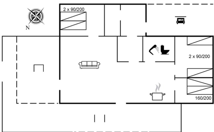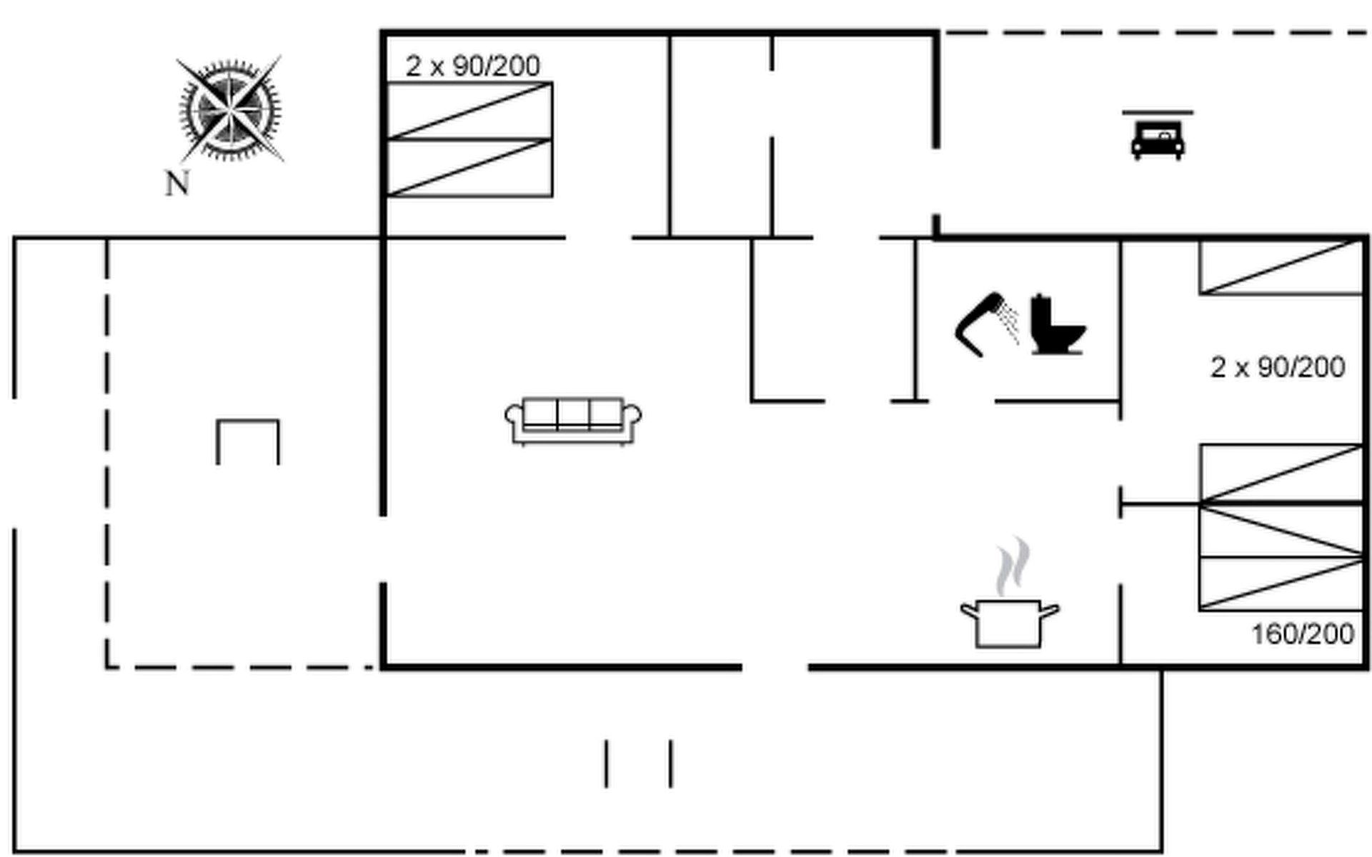 Single-family house, built in 1971. 400 m from the sea. Private: natural state property 850 m2, well-kept garden. Outdoor shower, terrace (50 m2), barbecue, parking at the house. Carport. Grocery 8 km. The owner does not accept any youth groups.
