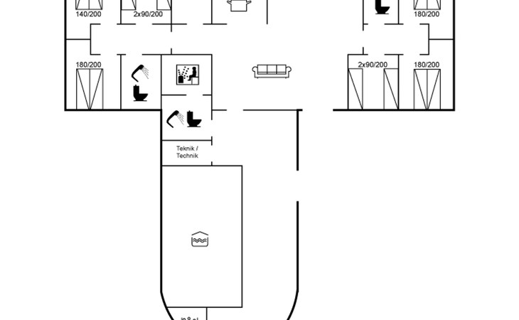 House, built in 1996. Private: natural state property 2'500 m2, indoor pool (3 x 5 m, 1'8.2 m2, depth 130 - 130 cm). Terrace (120 m2), barbecue, children's playground (swing). In the house: sauna, washing machine, tumble dryer. Parking at the house. Grocery 2 km. The owner does not accept any youth groups.