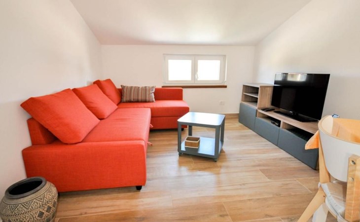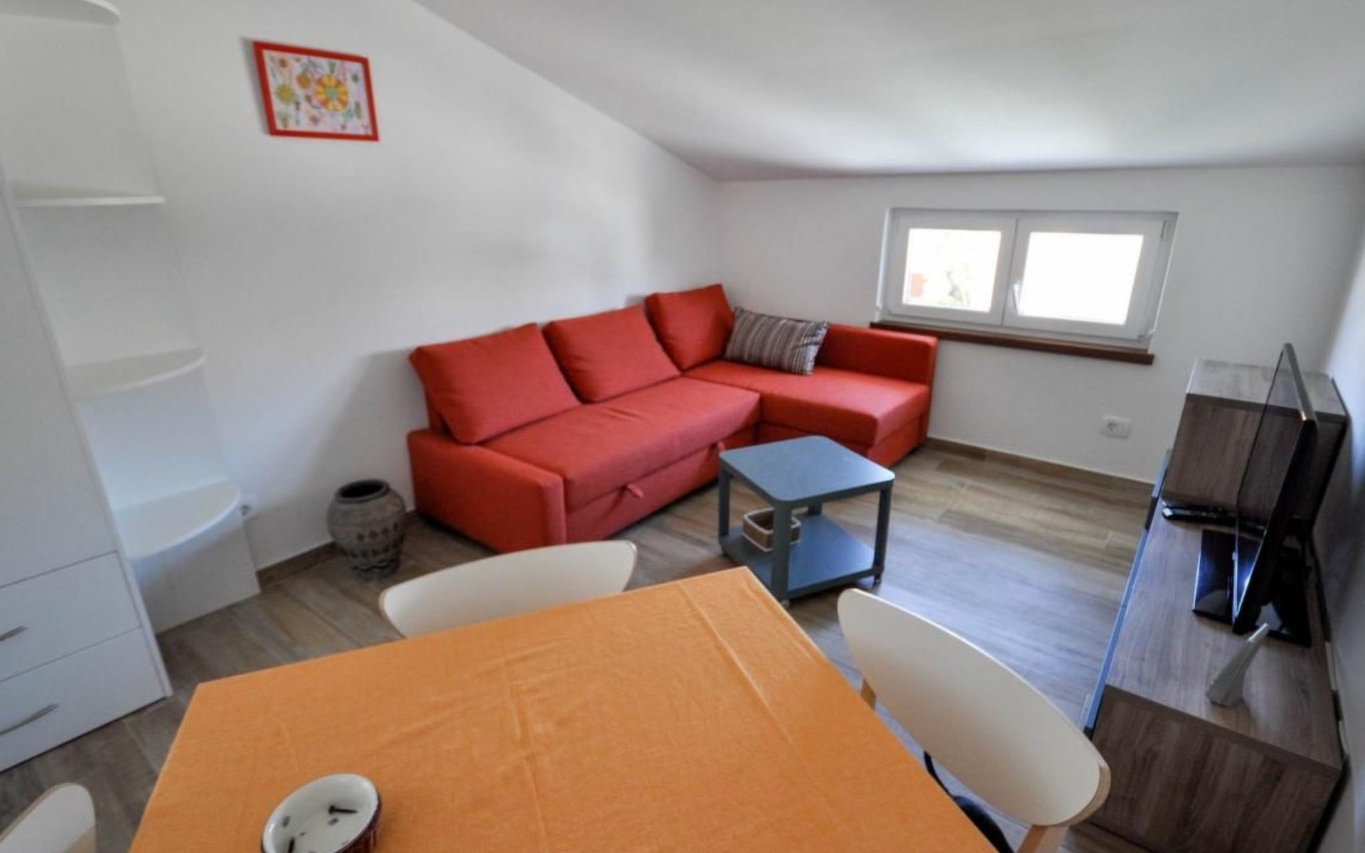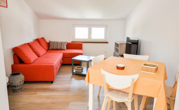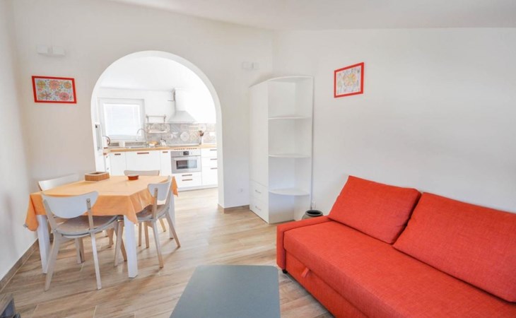 Inside, the apartment presents a cozy setup, designed to cater to your every need. It features a welcoming bedroom offering a peaceful night's sleep, complemented by a convenient sofa bed for an extra guest. The well-appointed bathroom includes a shower, ensuring refreshment after a day under the sun. For your convenience, bed linen is also provided, allowing you to pack light and embrace the ease of vacation living.