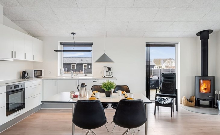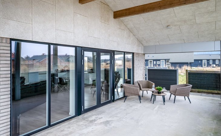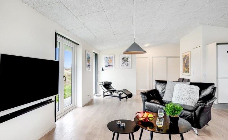 Single-family house, built in 2020. 1.2 km from the sea. Private: natural state property 1'485 m2. In the house: sauna. Parking at the house. E-charging station. Grocery 4 km. Golf course 5 km.