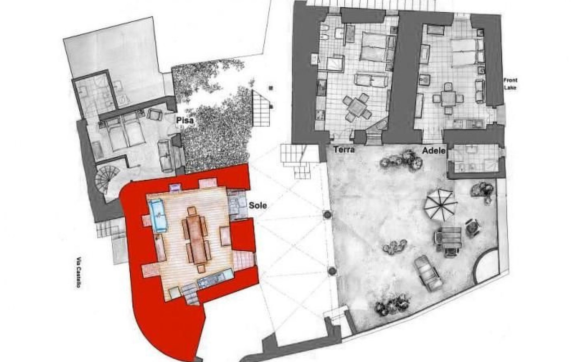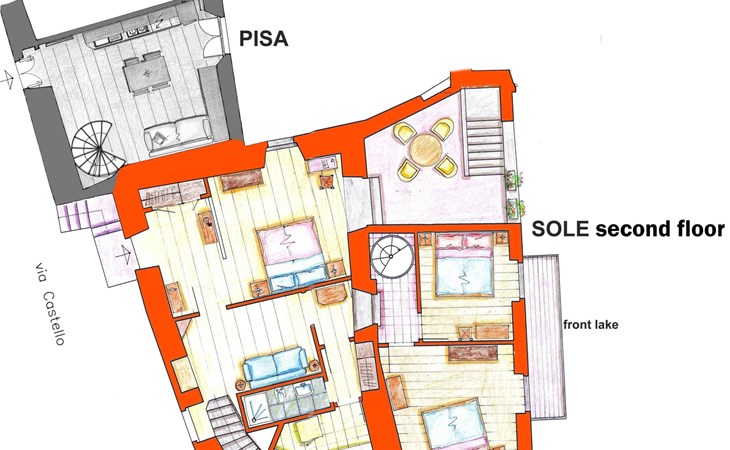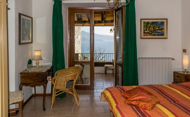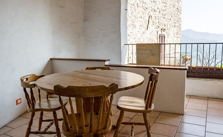 From one of the bedrooms you have access to the veranda on the first floor furnished with a round table and wooden chairs which enjoys a splendid view of the lake; via the steep and ancient staircase you have exclusive access to the common areas such as the courtyard and garden