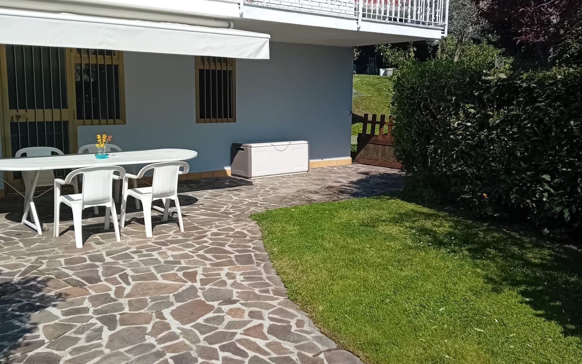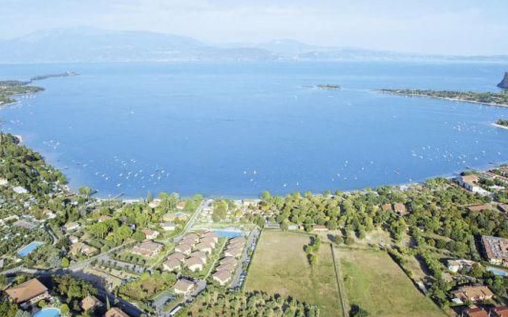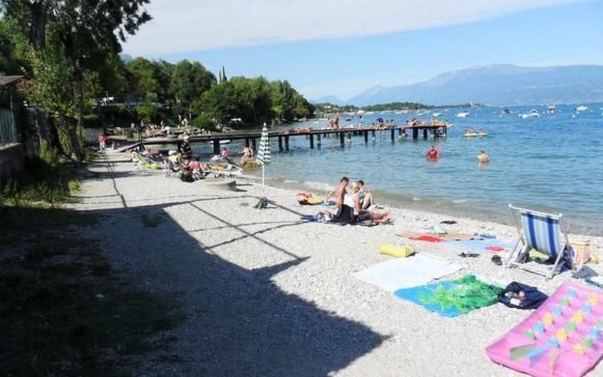 The lake with direct access is only a five-minute walk away. The lakeside bay is one of the most beautiful on Lake Garda with the Conigli and Isola del Garda, which can be reached by boat. Just a few kilometres away are the towns of Salò and Desenzano. The mountains can also be reached quickly.
