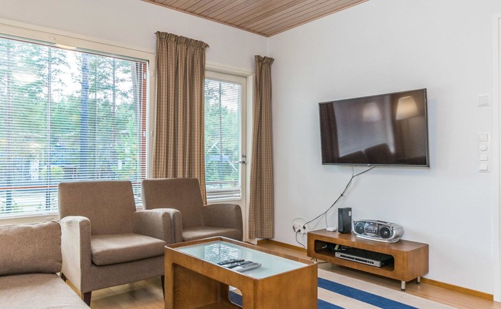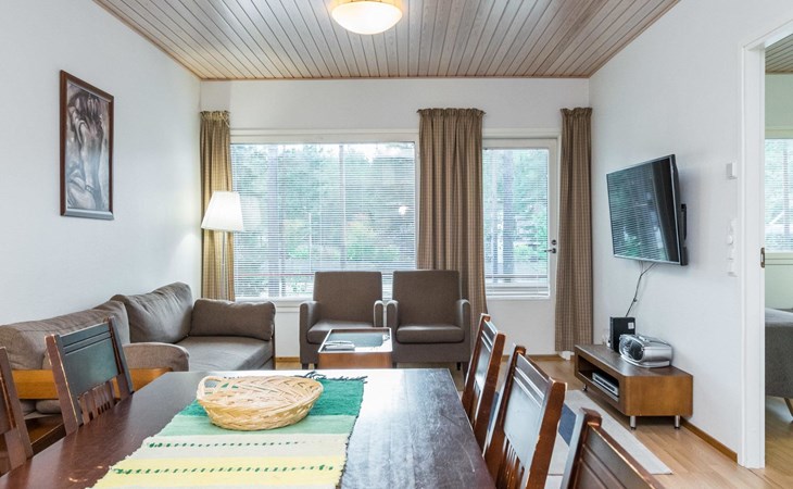 ElinanSydän Elvi apartment floor area is 67,5 m². There is combined living room & kitchen. 3 bedrooms, each with separate beds for 2 persons. Living room with sofa-bed for 1-2 persons. Toilet, washroom/toilet, sauna (electric heating).