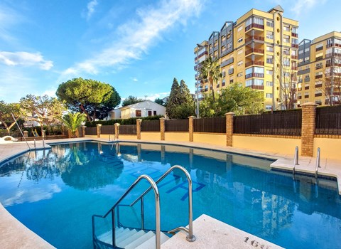 The outdoor area features a typical Spanish patio with a small ornamental fountain and inviting shady spots to linger. The sun terrace stretches the entire length of the house and has direct access to both the living room and the bedrooms. Equipped with a large wicker lounger for two, sun loungers and a dining area for six, it is the perfect place for relaxing under the sun. The communal pool area with heated swimming pool (8mx8m) opens up views of the tropical garden down to the sea.