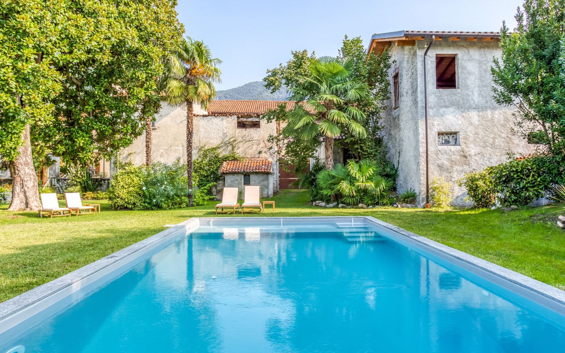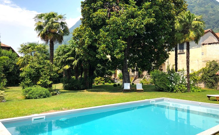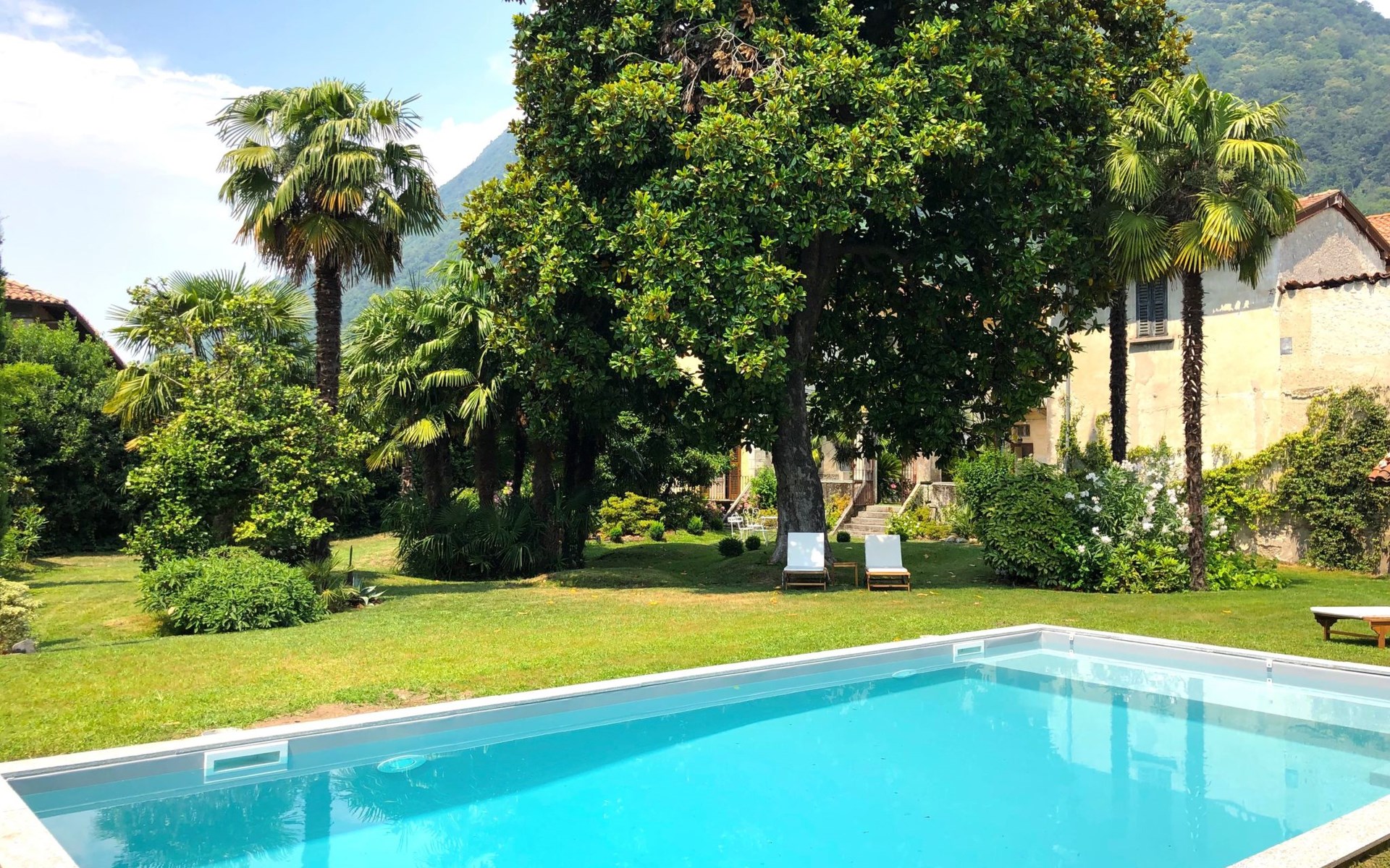 Grand Villa Lombardy is a family-owned estate, preserved and classified as a 17th Century Historic Monument located in the heights, overlooking Lake Maggiore. The Villa has retained the charm of its era: Frescos, Fountains, Chimneys, Reception Area and original furnishings. A magnificent “Lombardy style” estate spanning 3000 m2 complete with tropical plants, ponds and a vast swimming pool, which is heated year round. The home is ideally situated for those who want to explore the Italian lakes region, 5 minutes by car when coming from the shores of Lake Maggiore (and less than one hour by boat from the Borromean and Stresa Islands), 45 minutes from the shores of Lake Lugano and less than 90 minutes from Lake Como. Our house is located in the heights of the idyllic village of Cittiglio, at the foot of the mountains, 45 minutes from Milan Malpensa Airport and 60 minutes from the center of Milan. THE VILLA House: - 14 rooms encompassing 450 m2 - 7 bedrooms (13 beds) Many modern amenities including - Lovely Swimming Pool (heating pump, security cover) - Gourmet fully-equipped kitchen (oven, dishwasher, washer machine - Garden includes Lounge chairs, Garden Tables, Barbecue - Modern bathrooms - Central Heating - Linens, Dishes - Bicycles (plenty of bicycle paths in the area) - Games: Pétanque, Molkky, VolleyBall, Ping-Pong - Piano (Instructor available upon request) - Security: Yard and Gardens entirely enclosed, alarm services and safe available - Cleaning services available upon request during your stay - Italian Chef available upon request during your stay