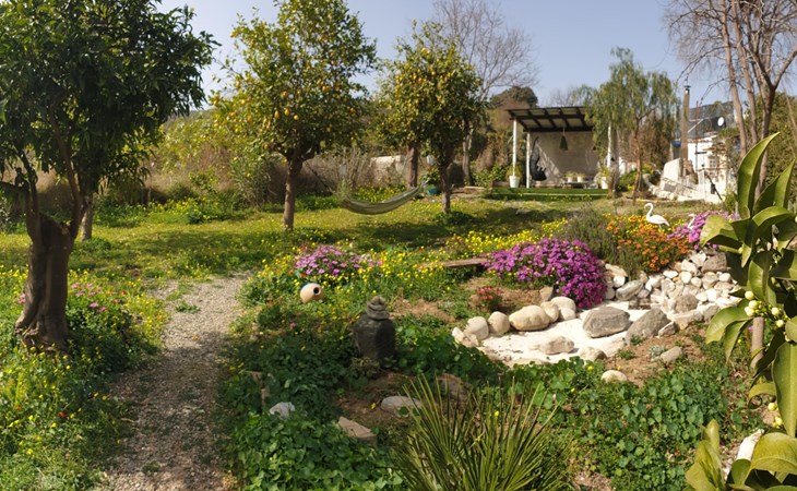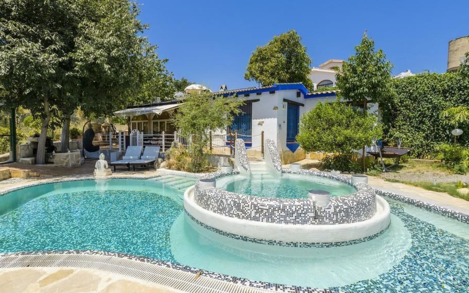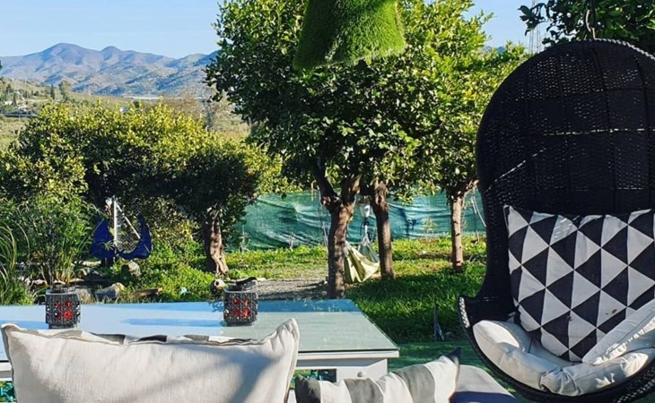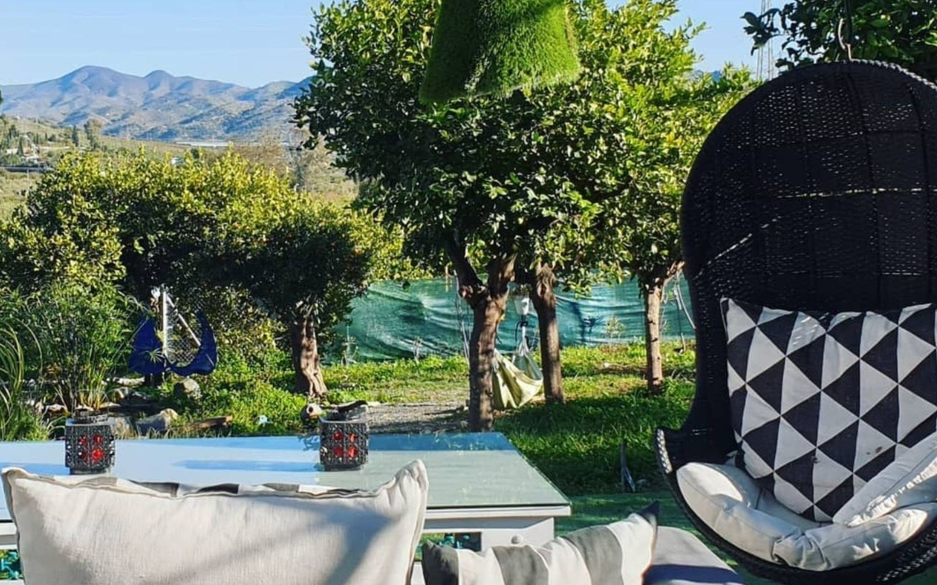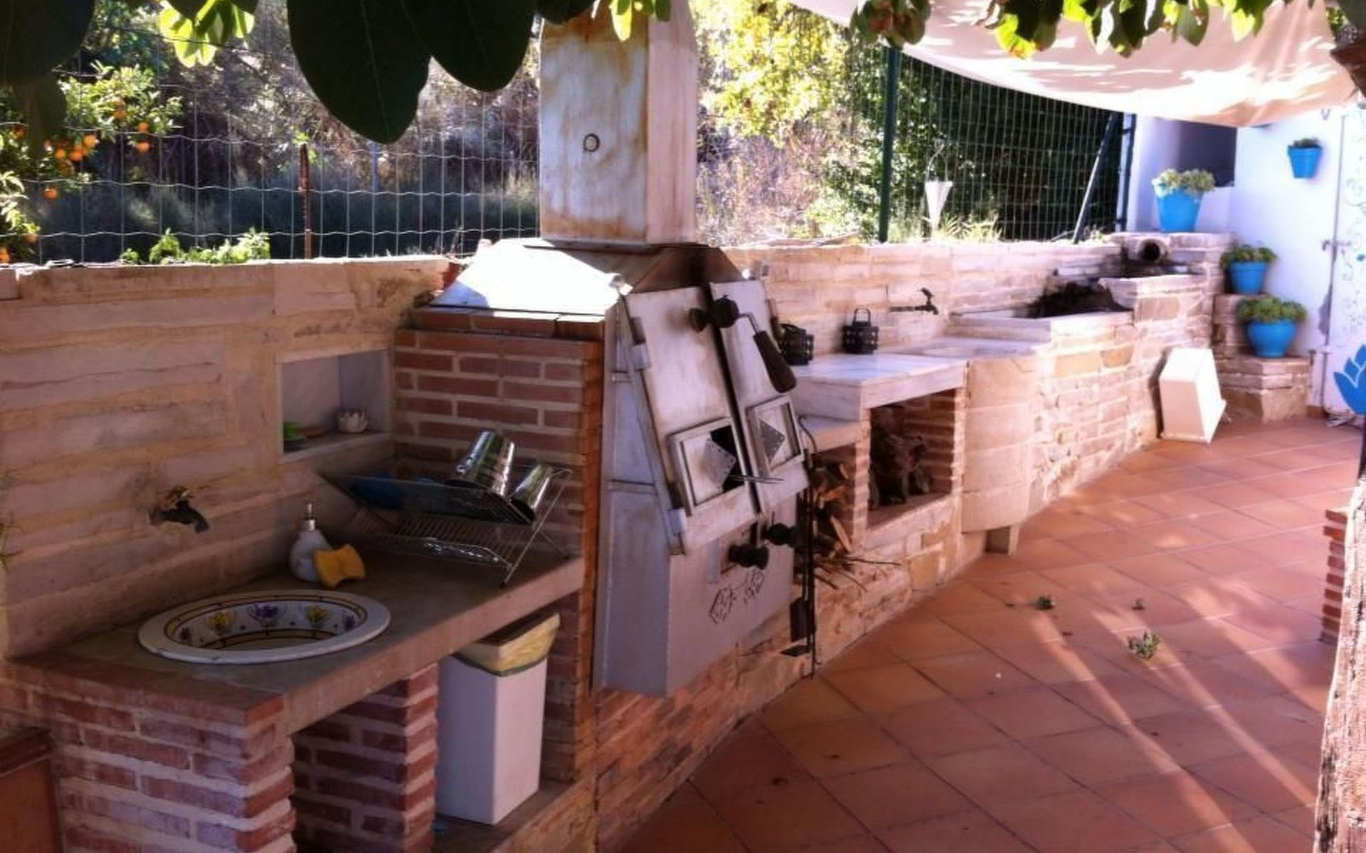 From the house you can see the pool area with terrace and sun loungers. The jacuzzi is integrated in the pool. There is also a barbecue area. The property is surrounded by citrus trees. The Guadalhorce flows only 100 metres from the house.